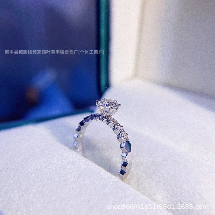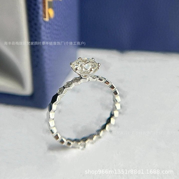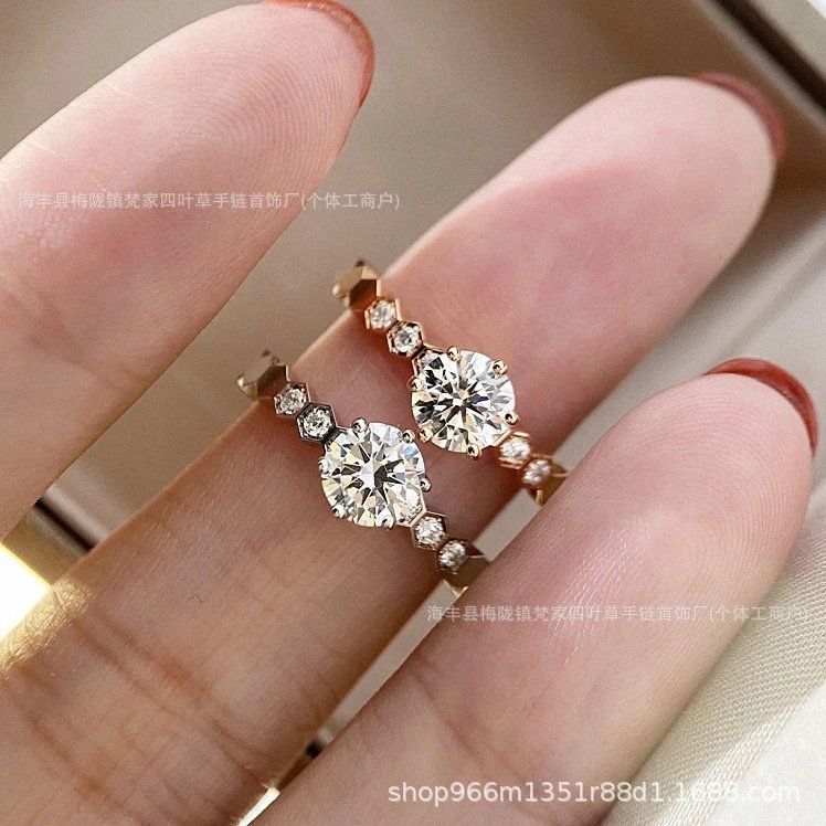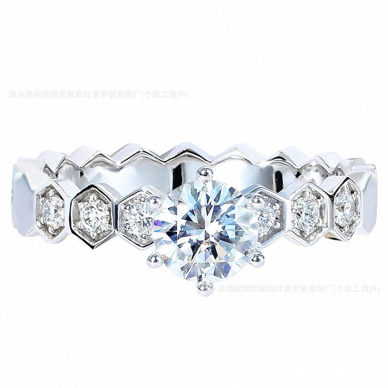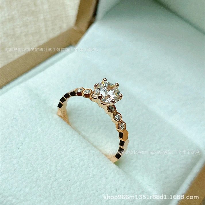 蜂巢戒指 女玫瑰金白金单钻仿真钻对戒高级名媛气质婚戒求婚