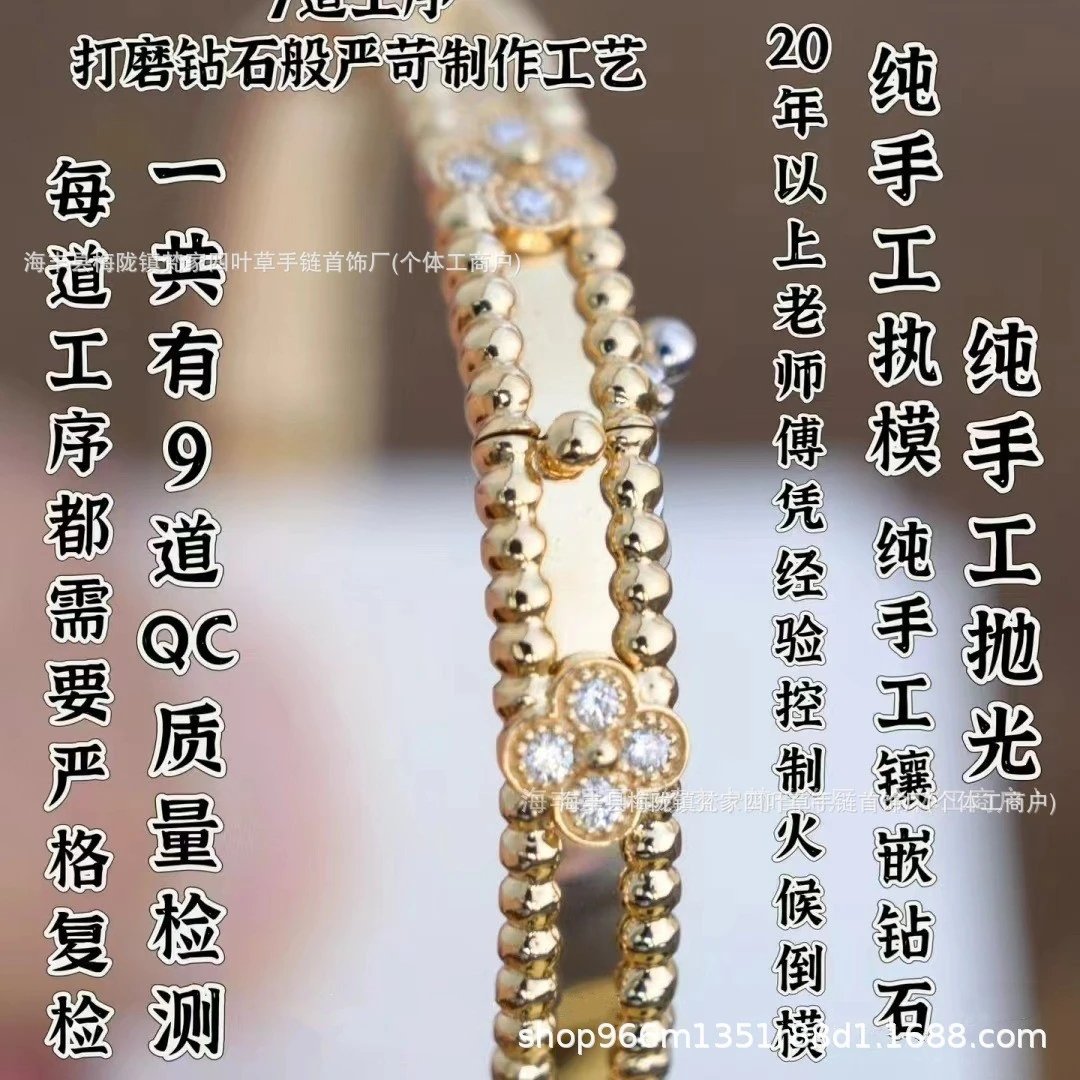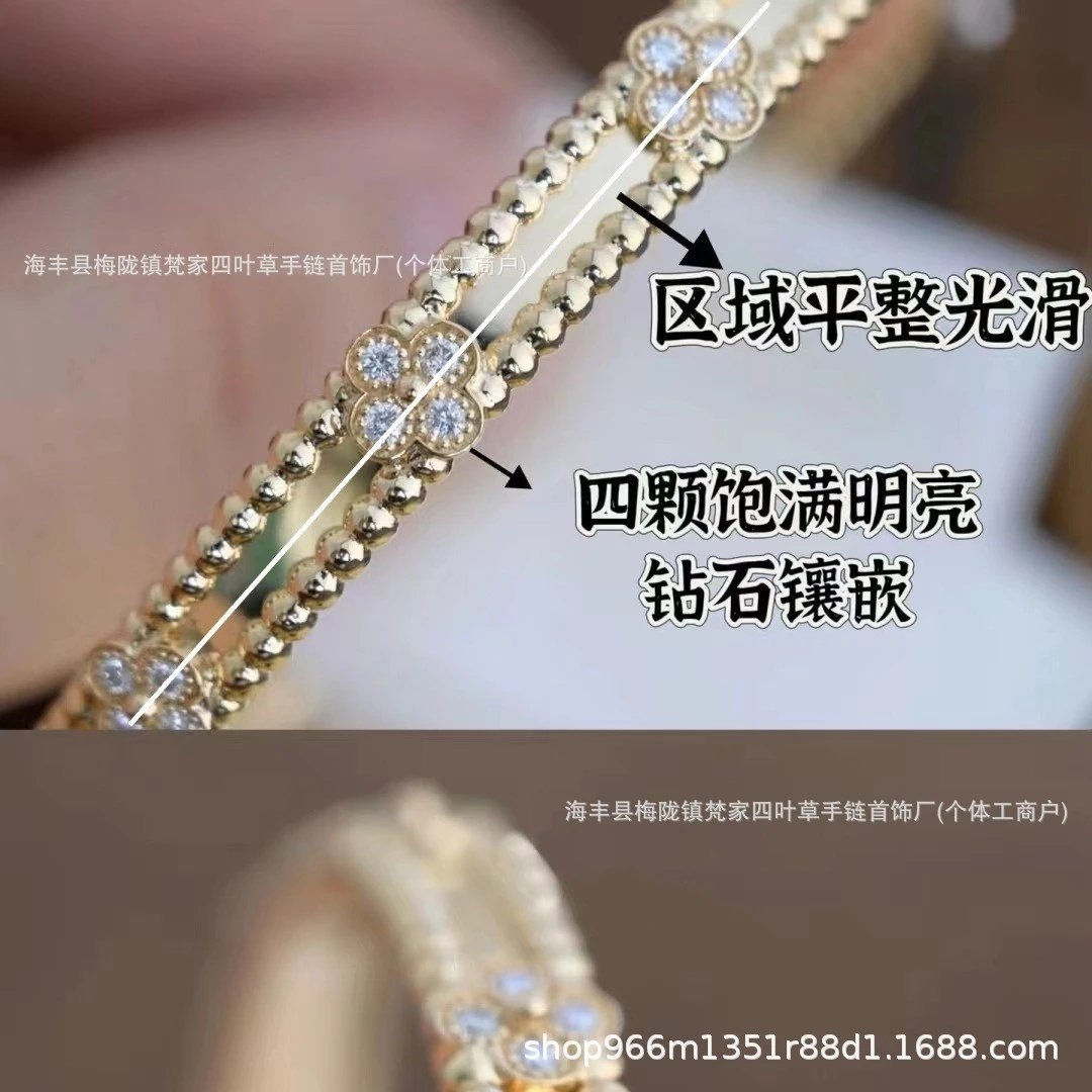 梵家四叶高窄版万花筒手镯 镀18K白金玫瑰金四叶草珠珠镶满钻手环