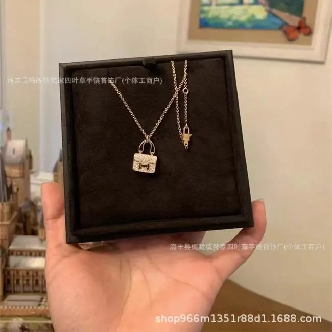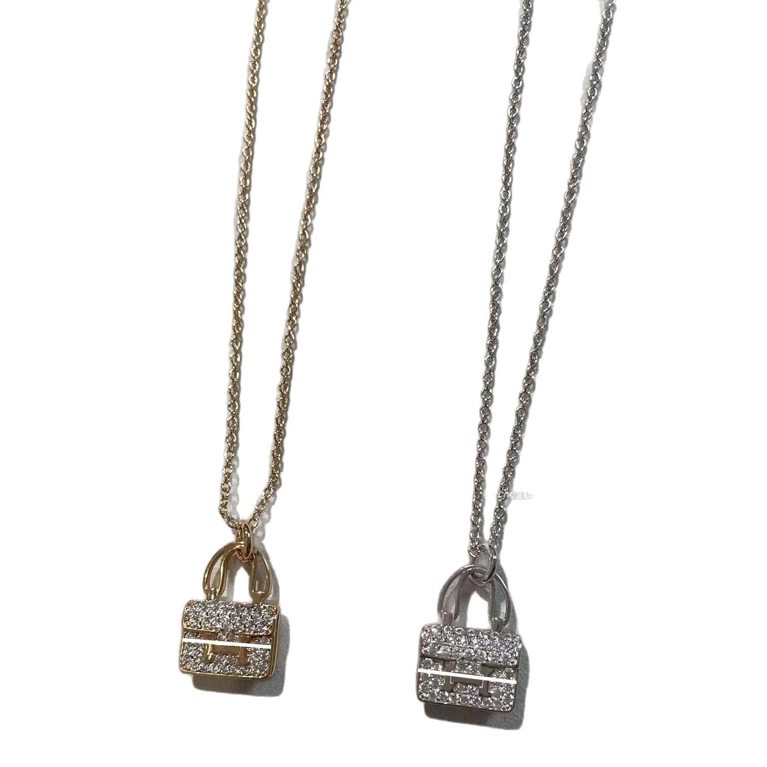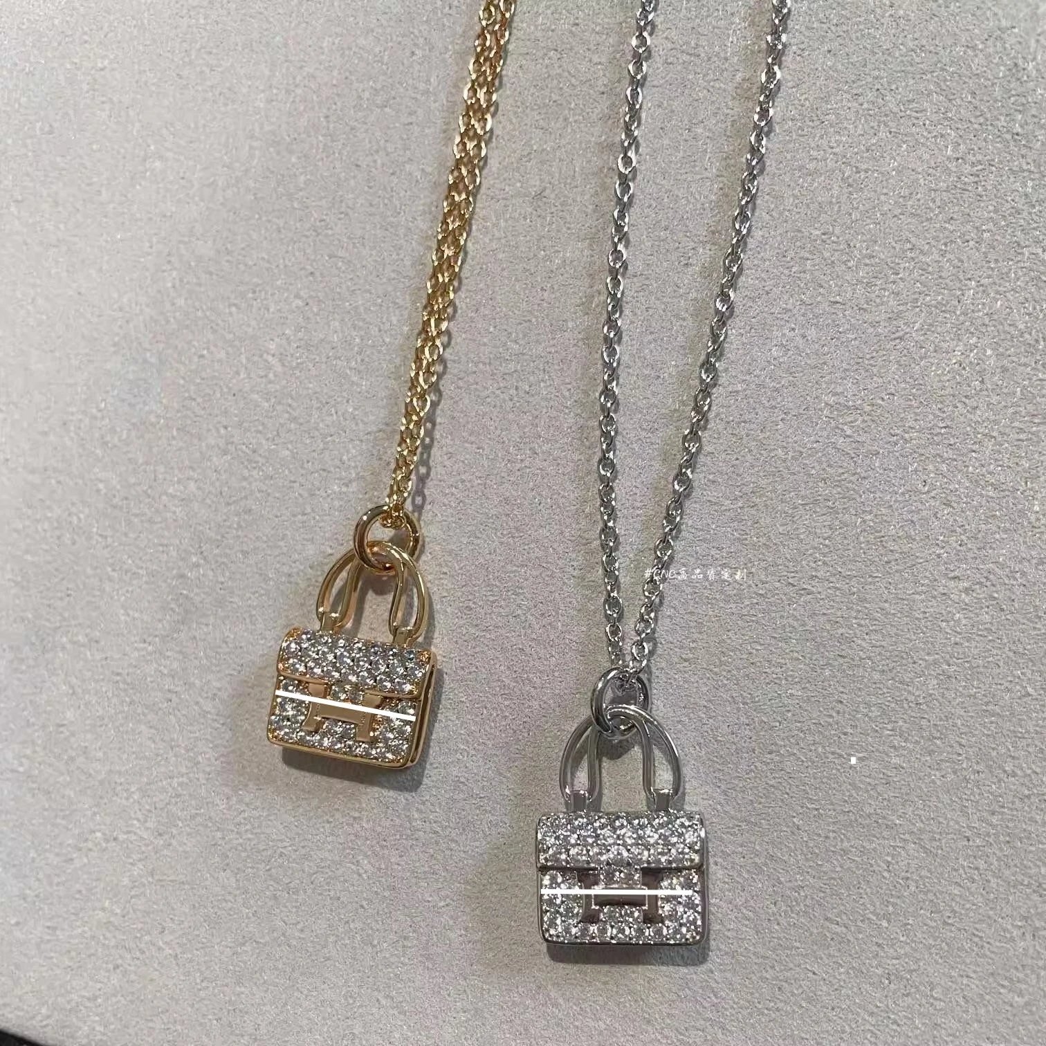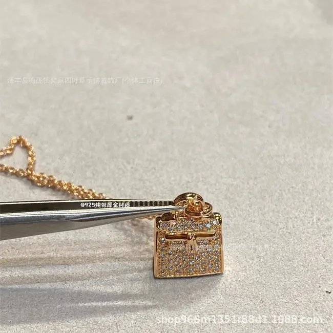 爱家 镀18K玫瑰金康康包项链满钻H字母吊坠轻奢高级感包包锁骨链