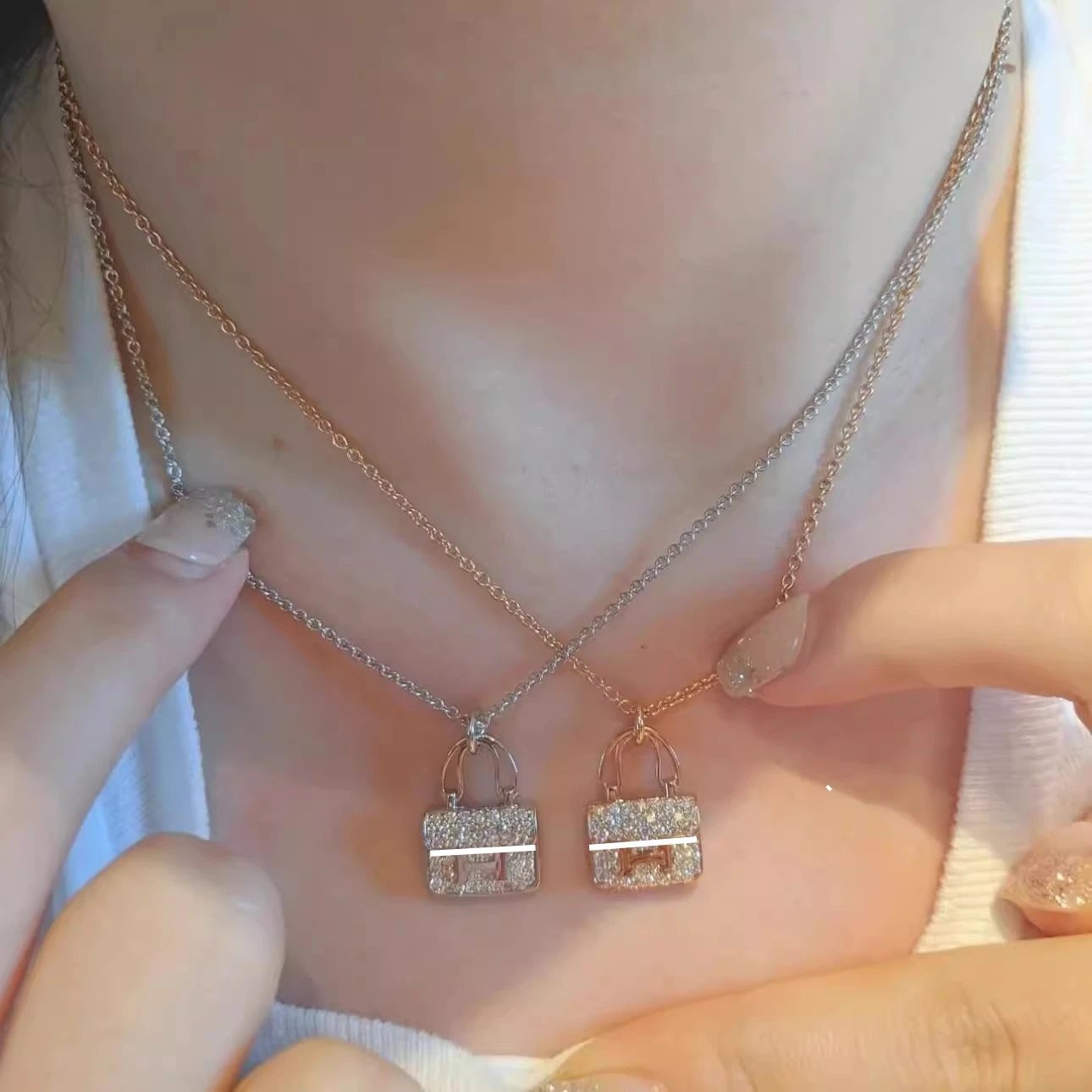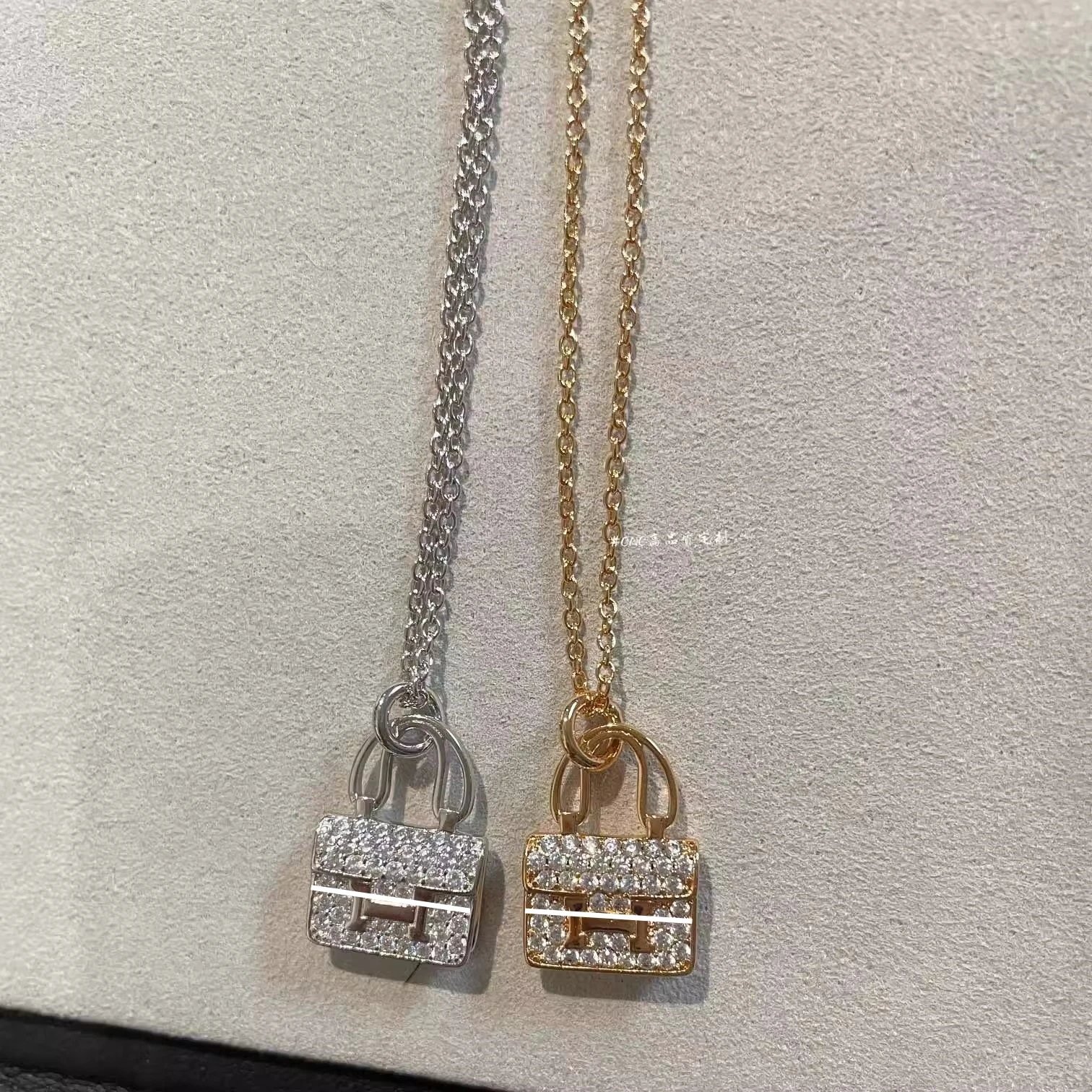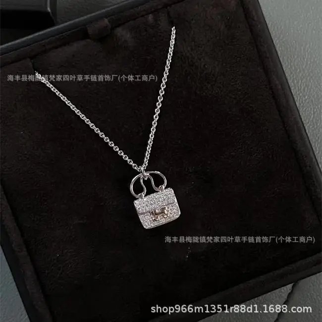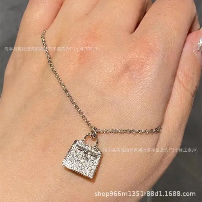 爱家 镀18K玫瑰金康康包项链满钻H字母吊坠轻奢高级感包包锁骨链