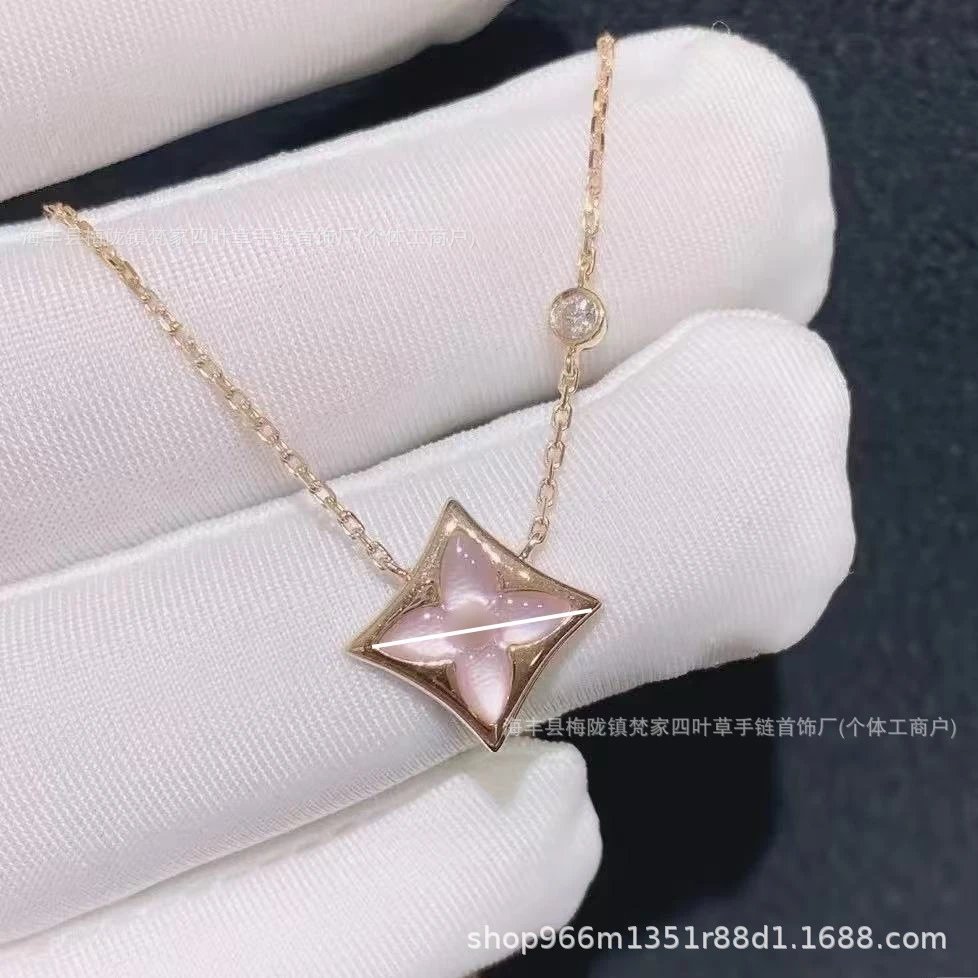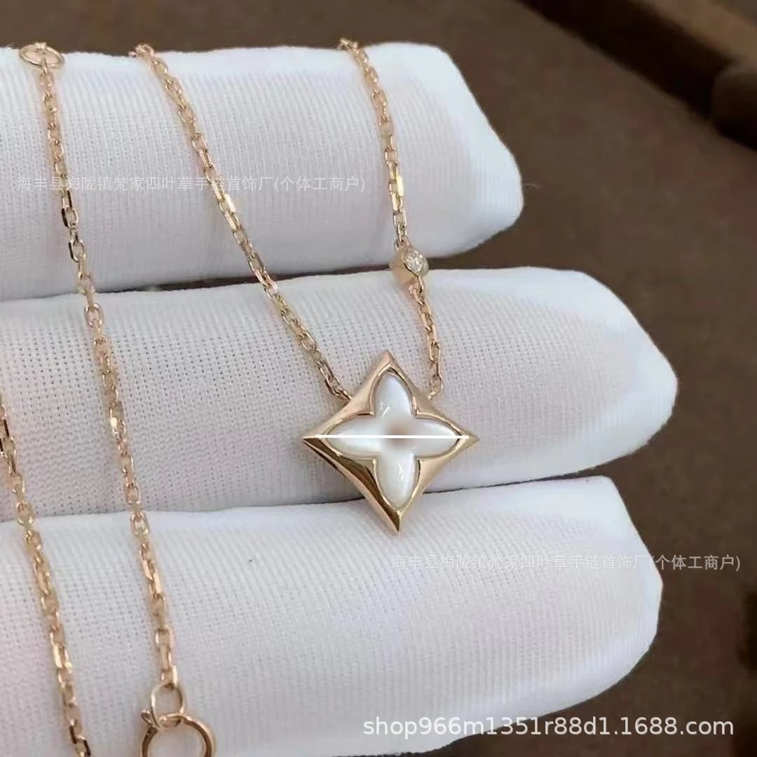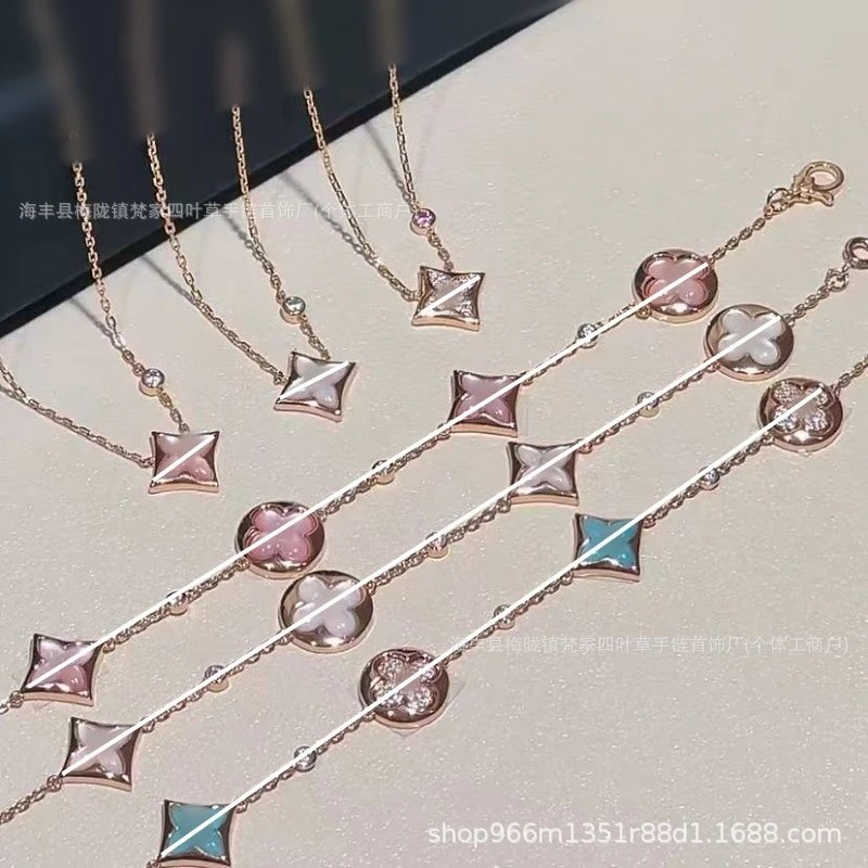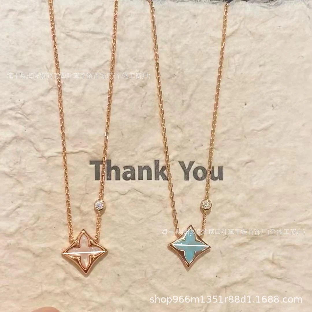 驴家菱形四叶草项链 玫瑰金四花贝母手链中古银饰戒指饰品