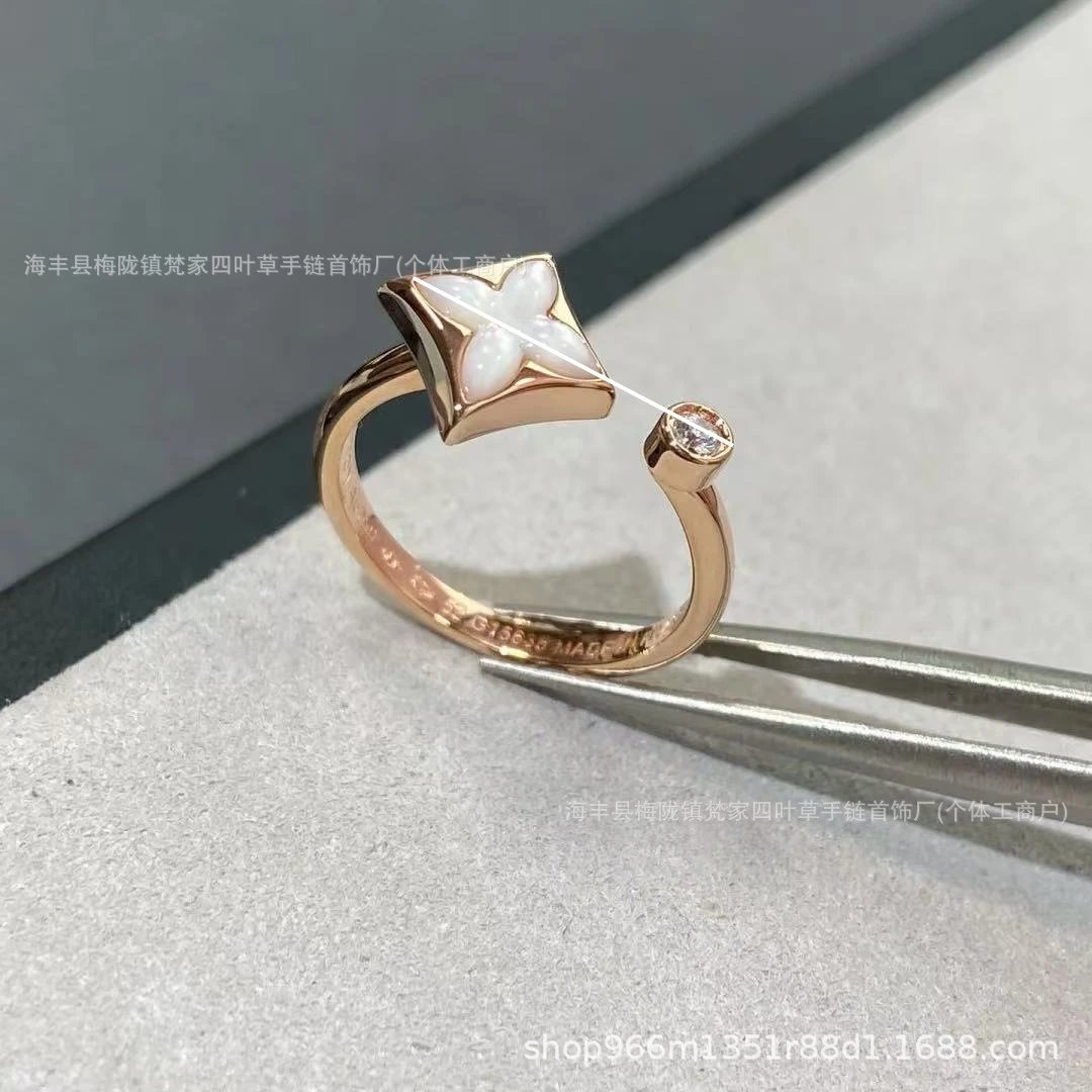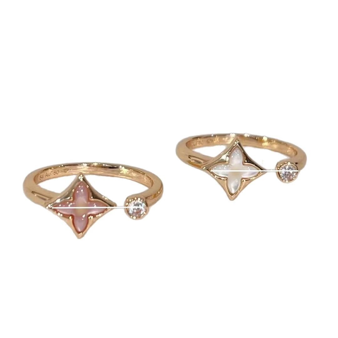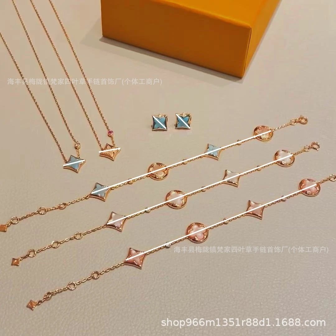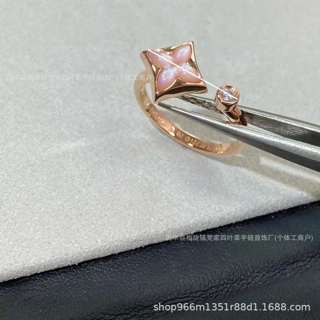 驴家菱形四叶草项链 玫瑰金四花贝母手链中古银饰戒指饰品