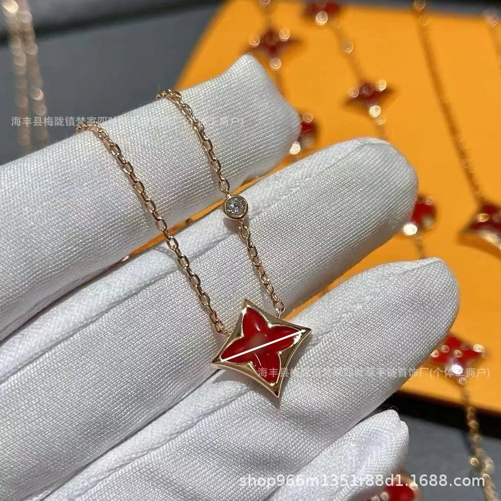 大花双面四叶草项链女V金天然白贝母红玉髓精工精工毛衣链
