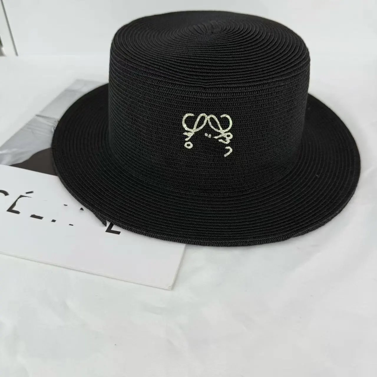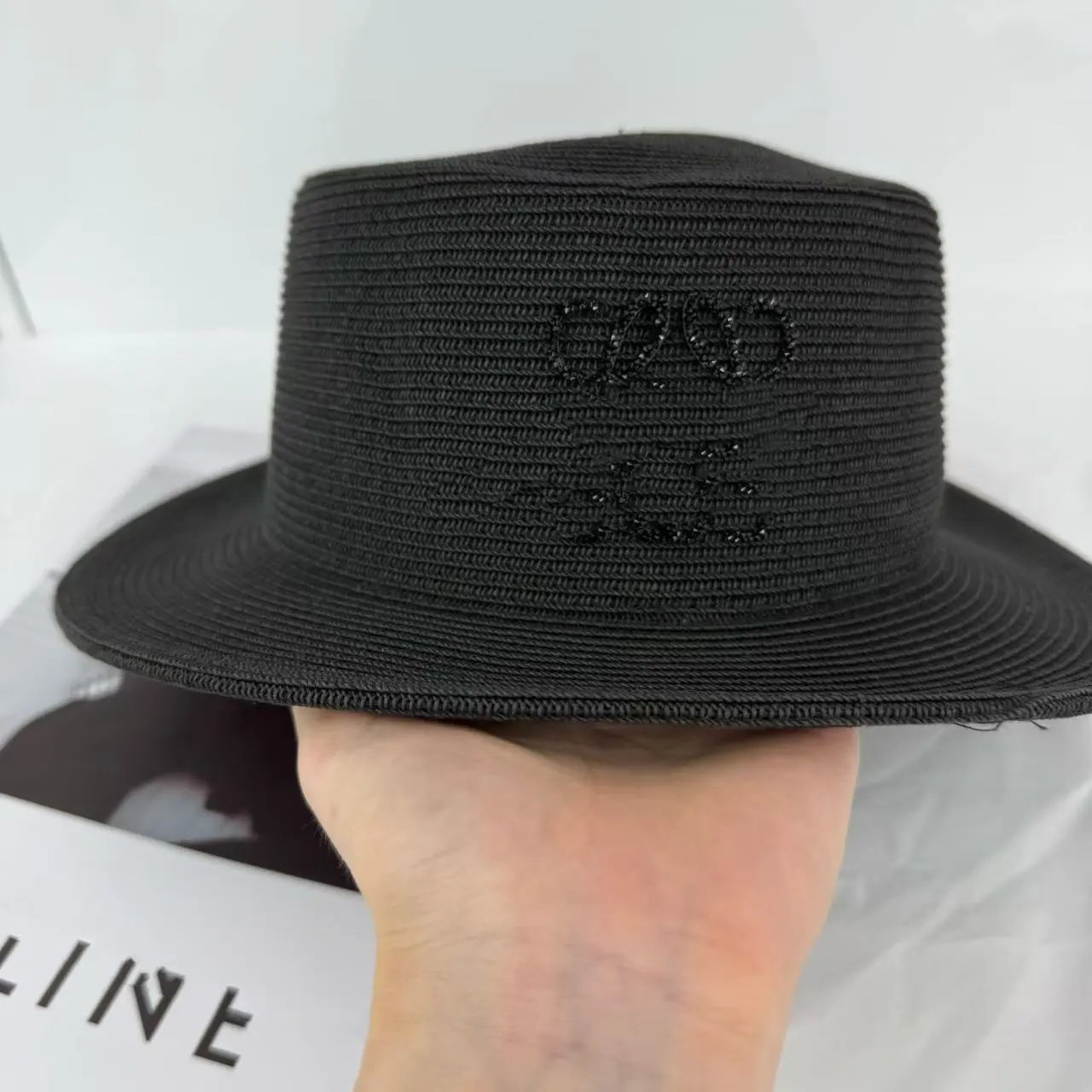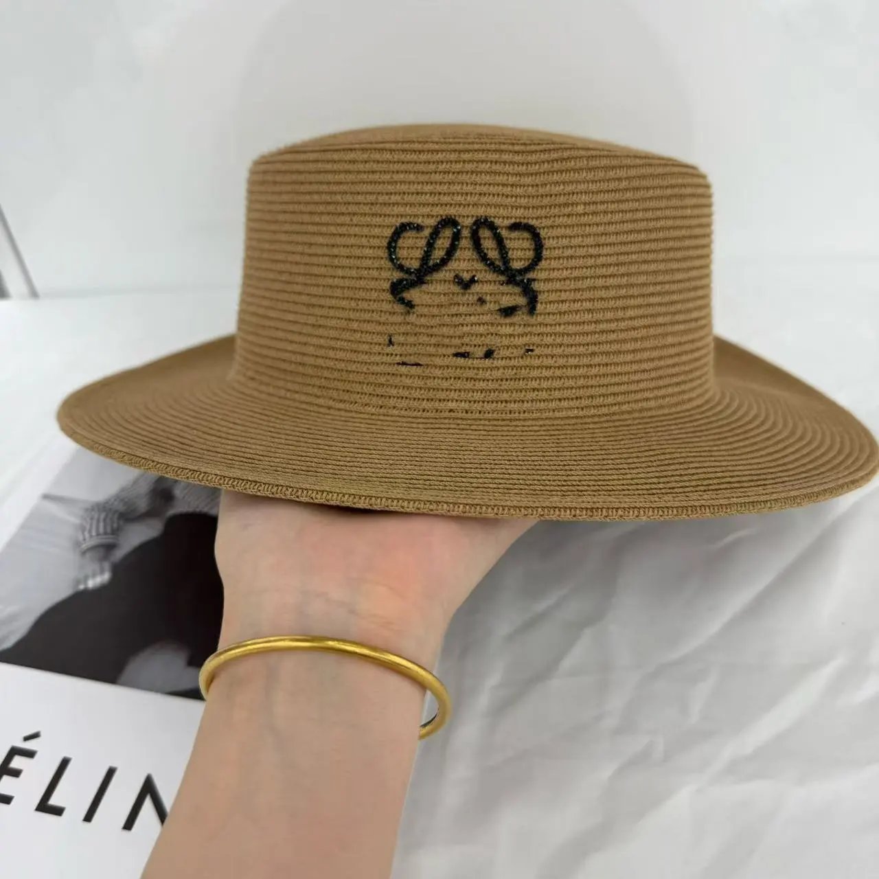 罗家 贴钻草帽女夏季海边出游宽檐平顶渔夫帽日系优雅遮阳帽太阳