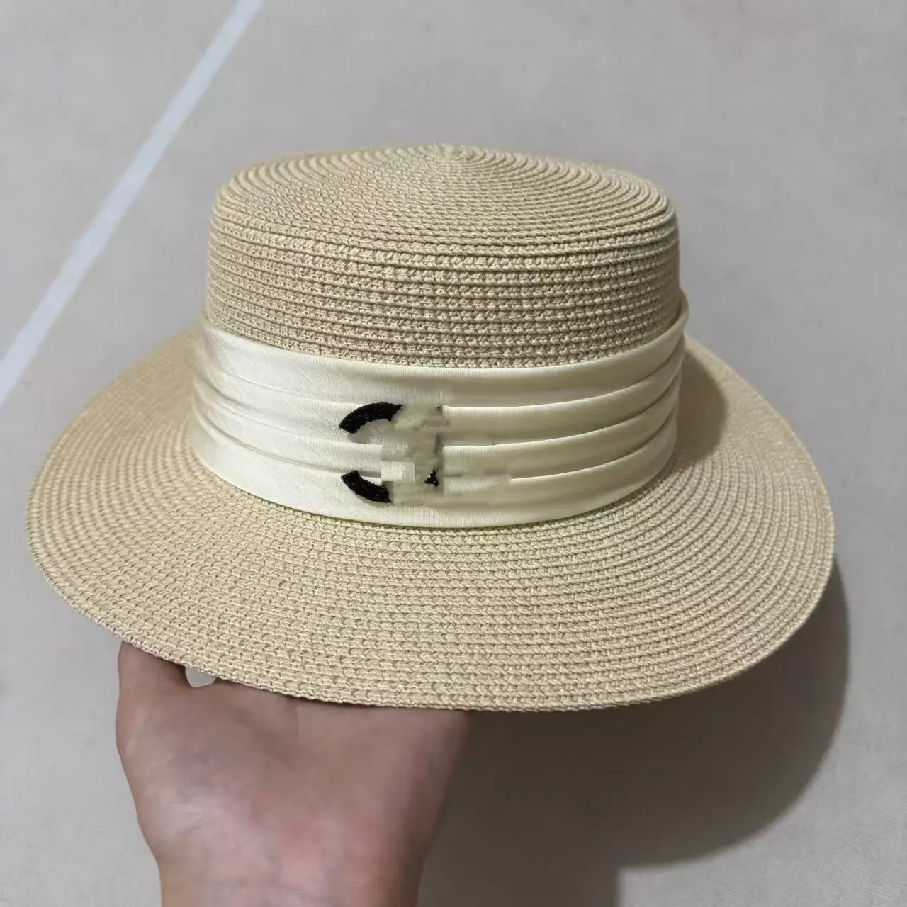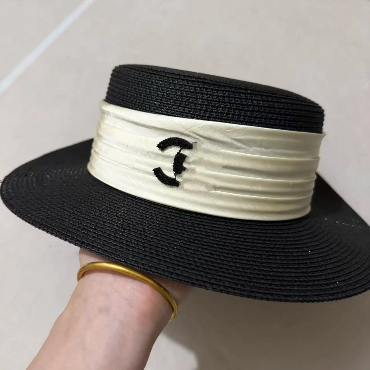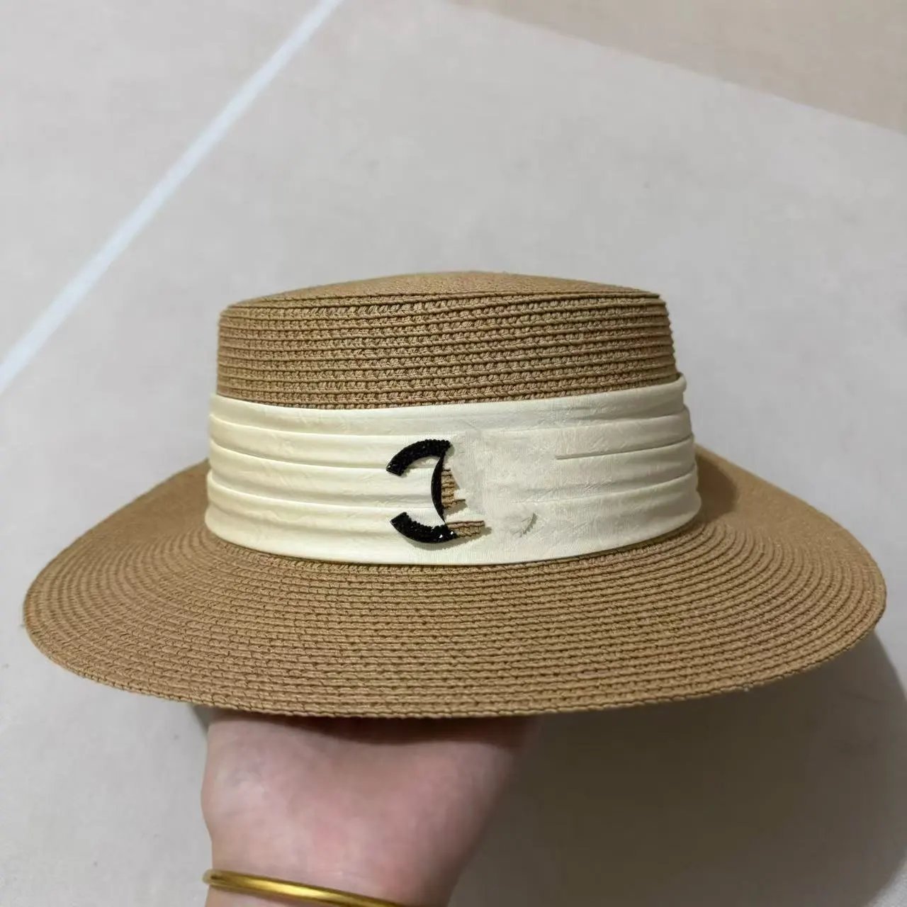 春夏 新款平顶草编C家礼帽春夏百搭遮阳出游沙滩旅游海边度假草帽