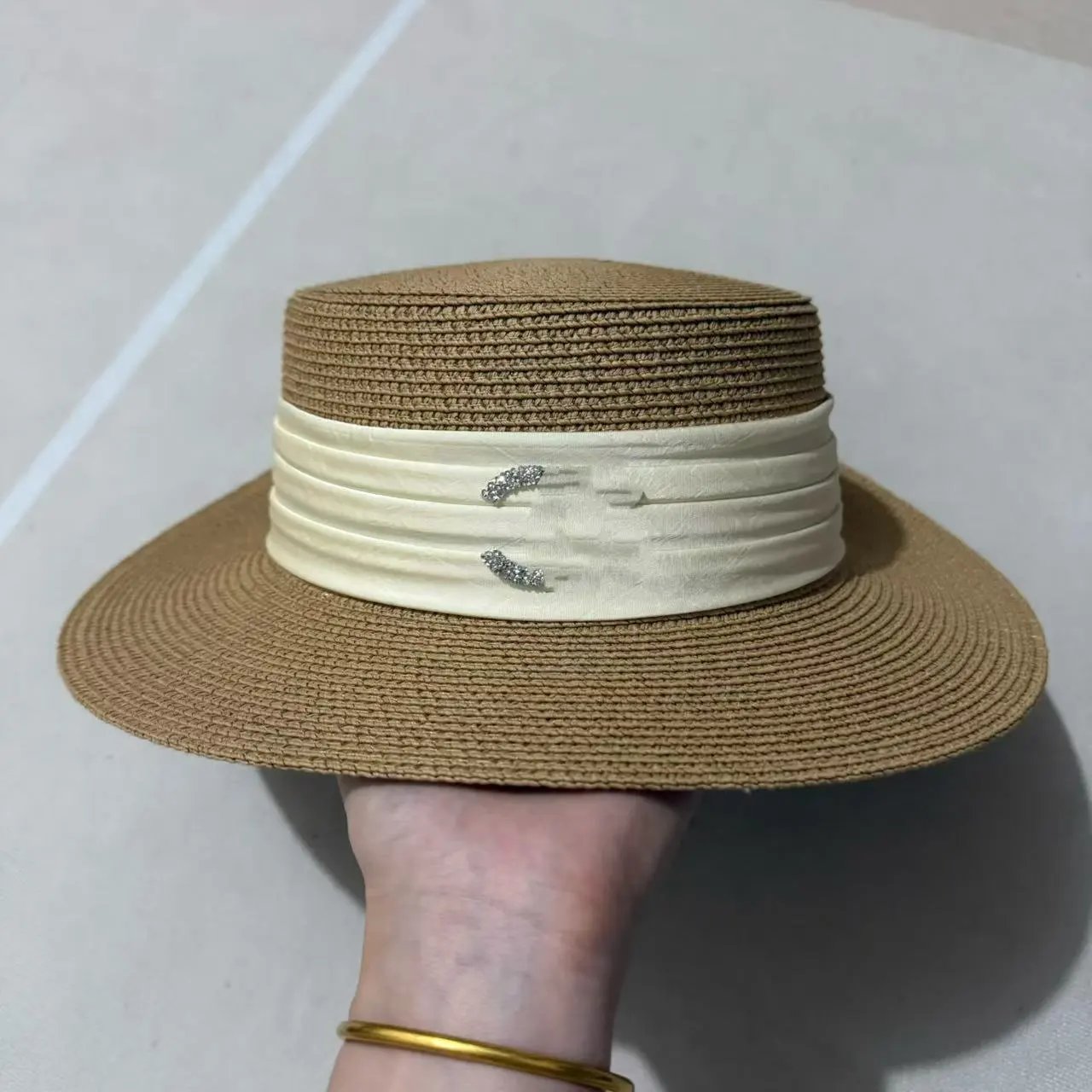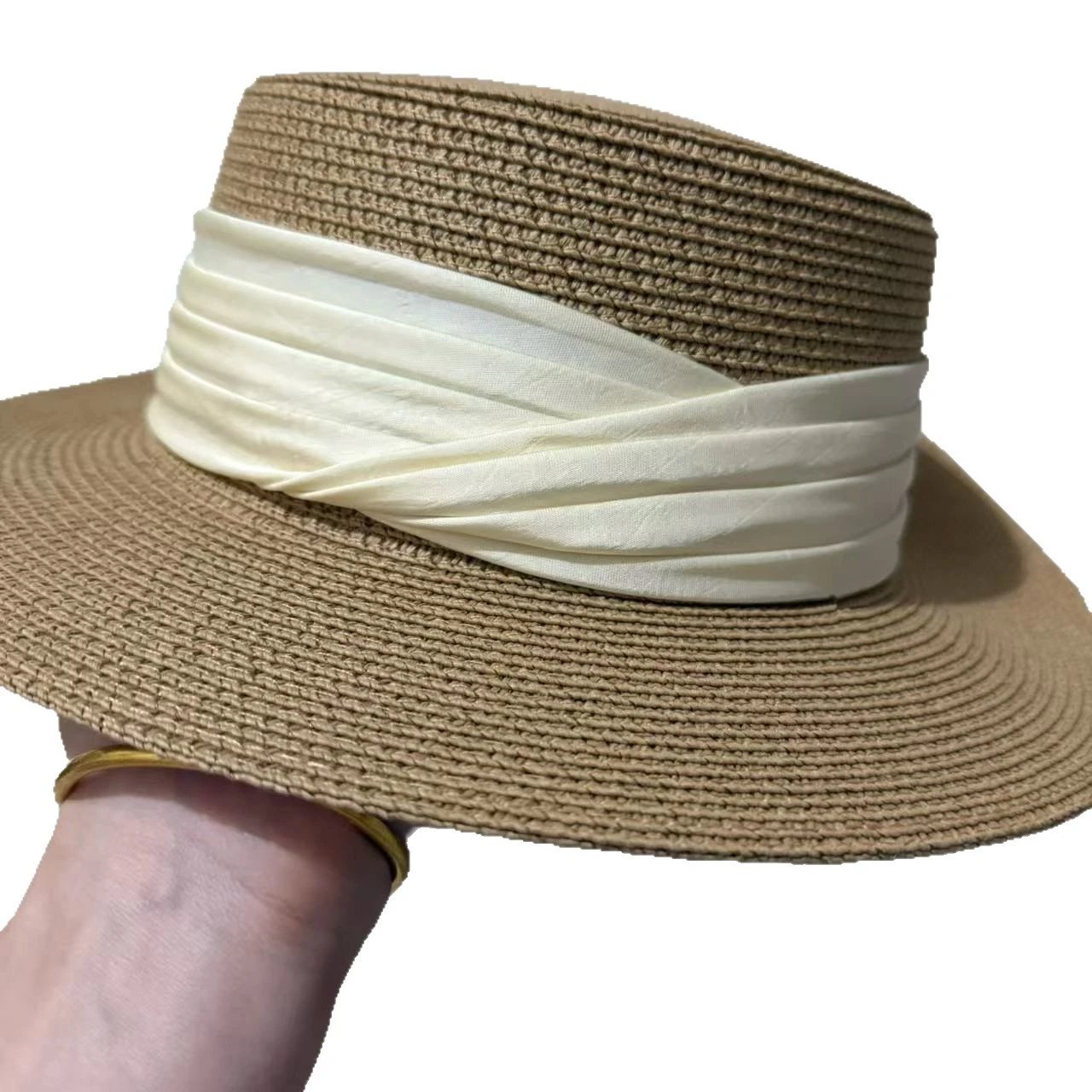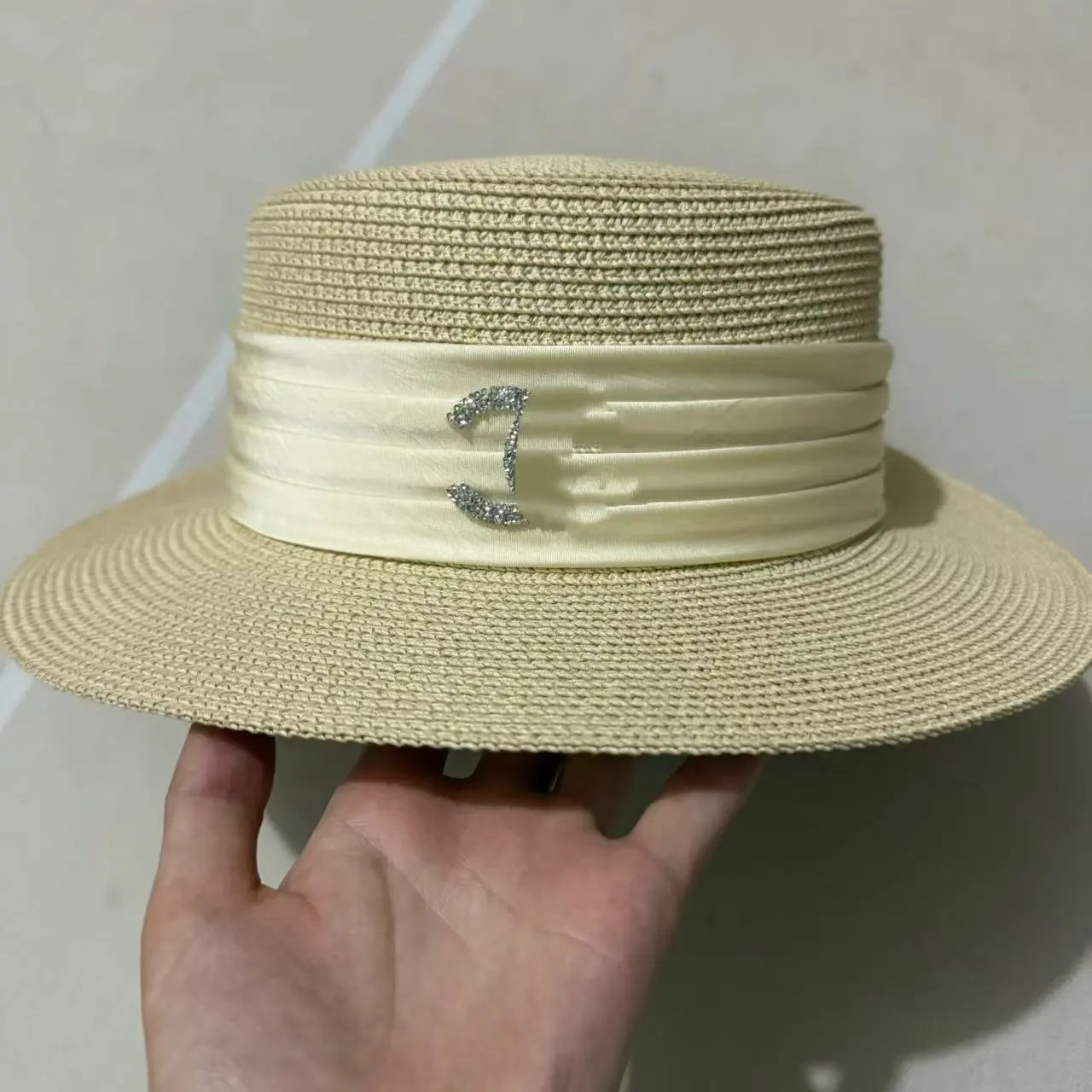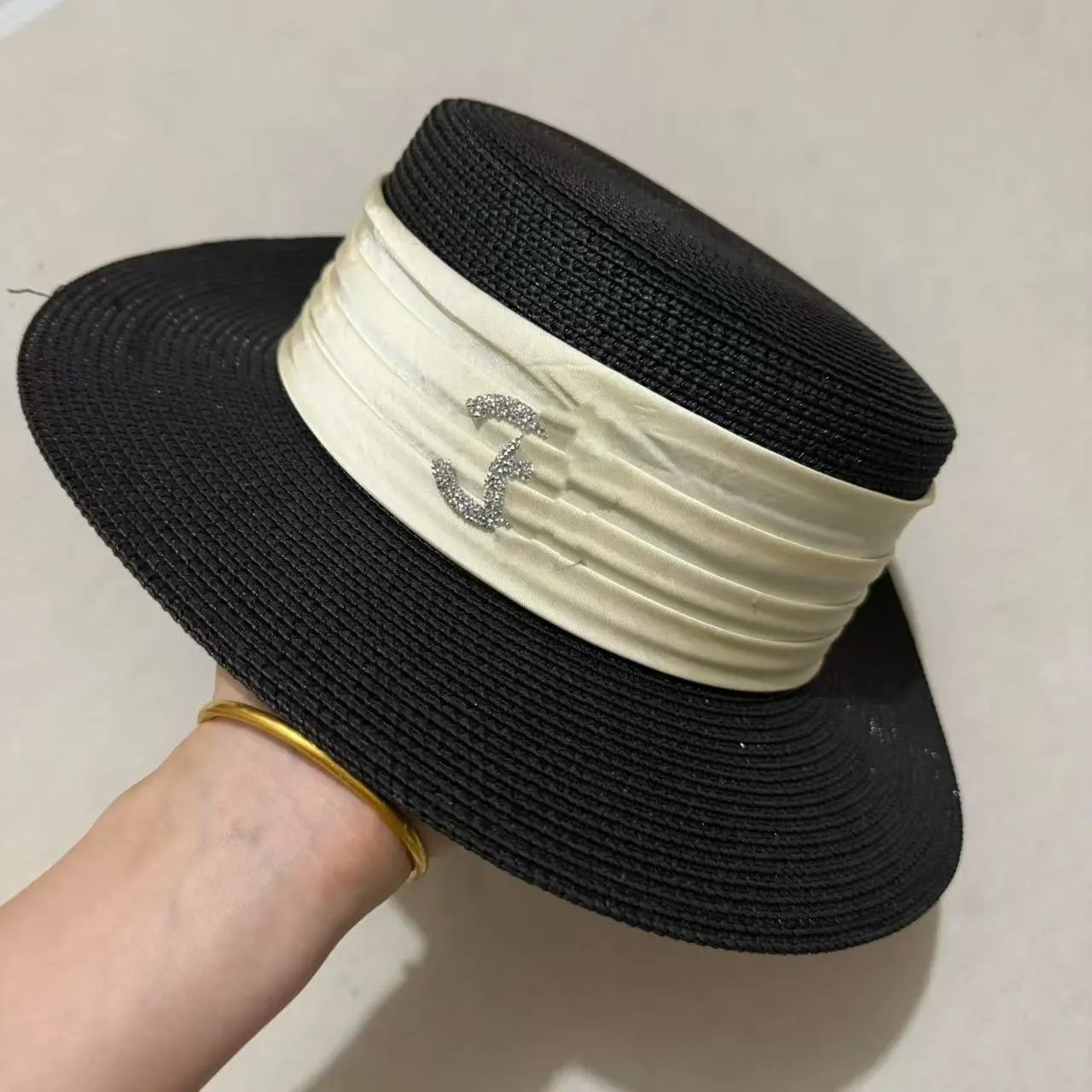 春夏 新款平顶草编C家礼帽春夏百搭遮阳出游沙滩旅游海边度假草帽