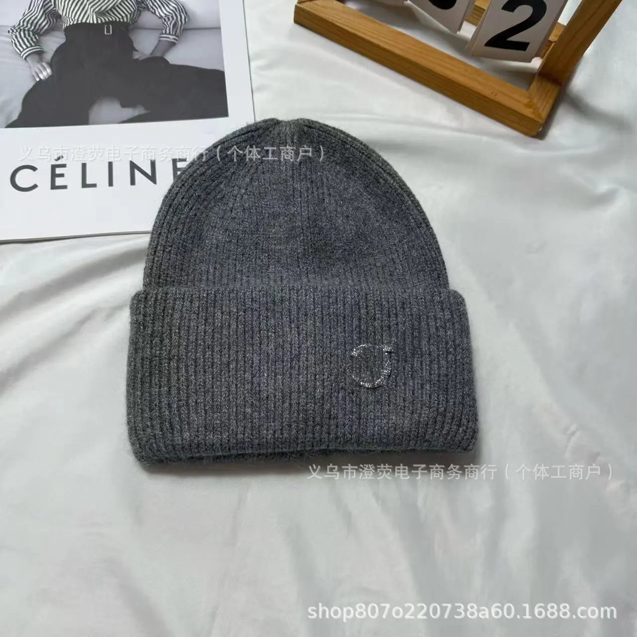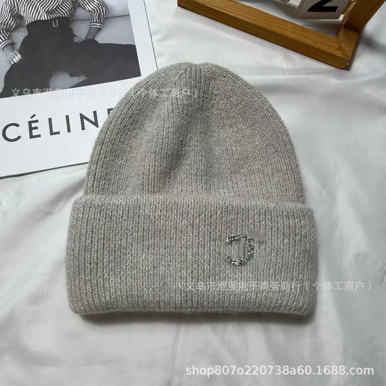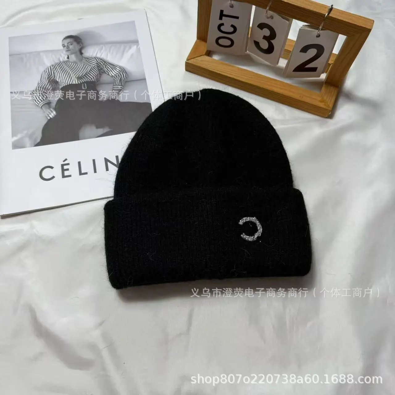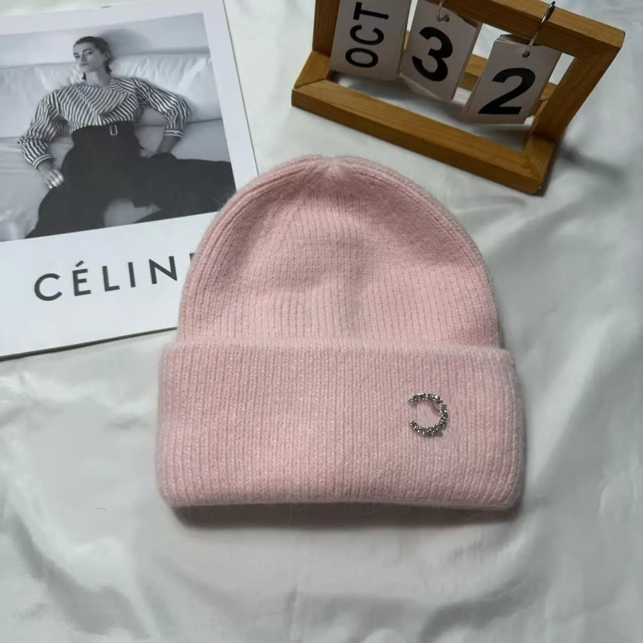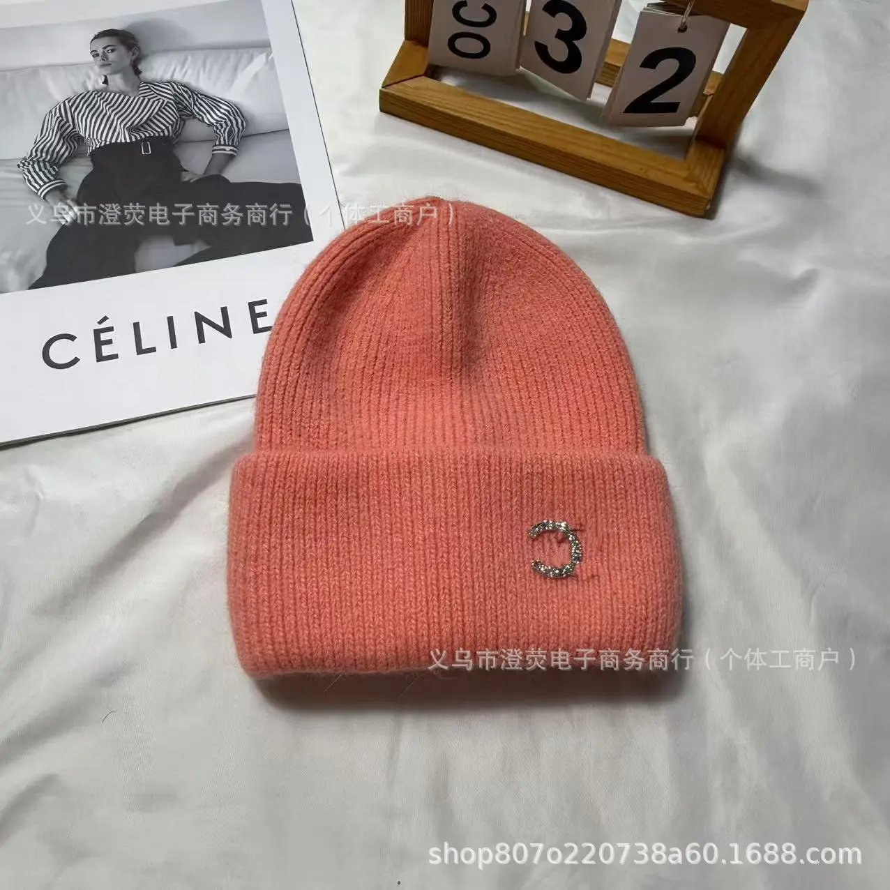 水钻双 C字母针织帽子女冬季户外包头简约保暖时尚套头毛线帽