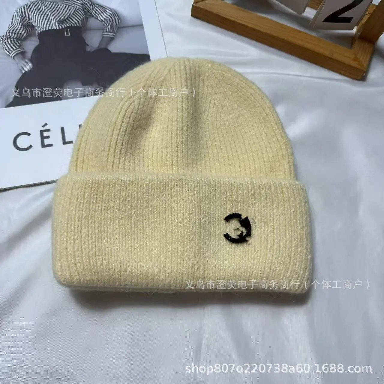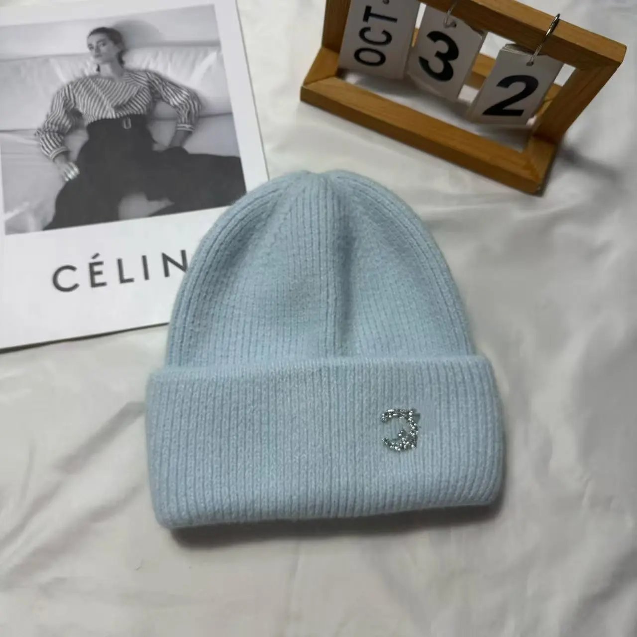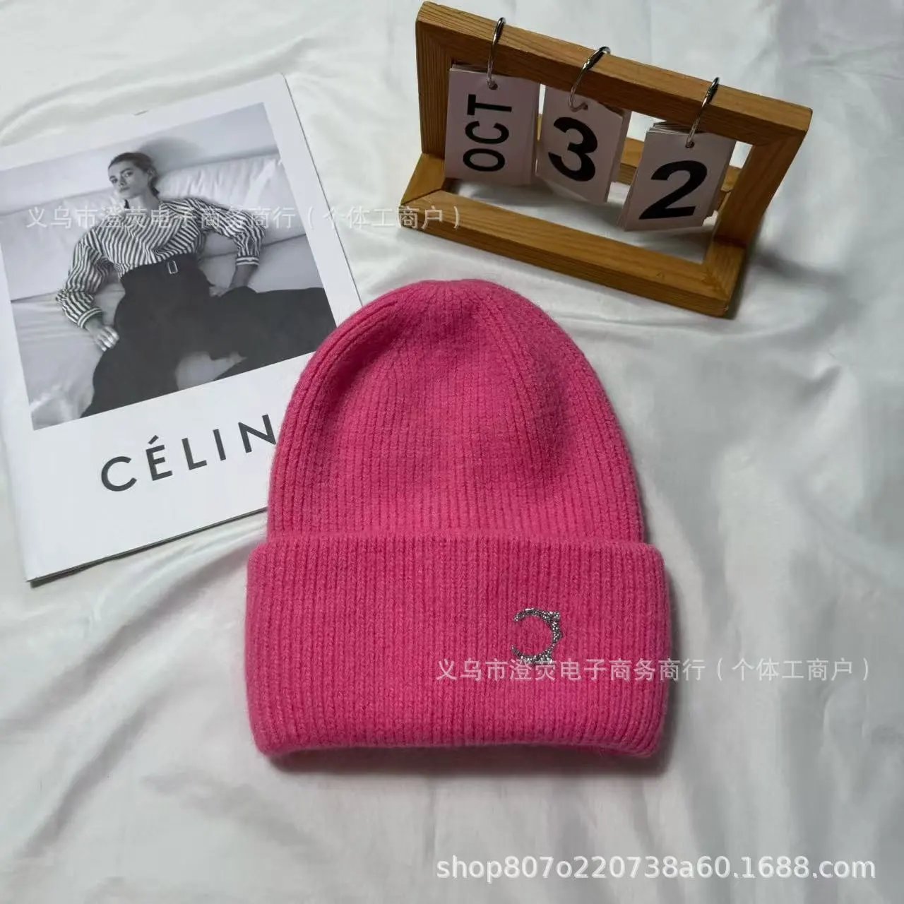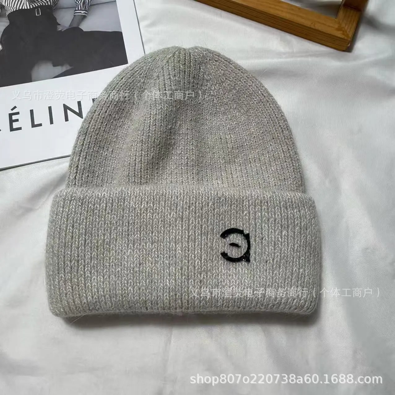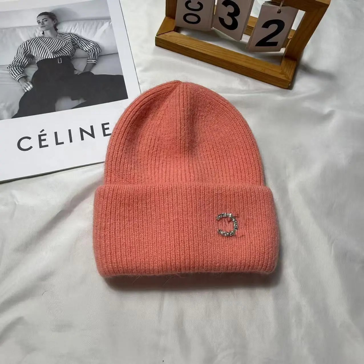 水钻双 C字母针织帽子女冬季户外包头简约保暖时尚套头毛线帽