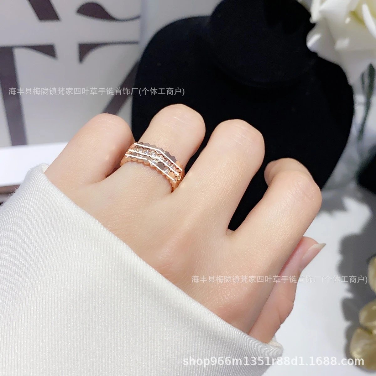 v金宝家蛇骨戒指女白贝母设计18K玫瑰金高级感镶钻轻奢