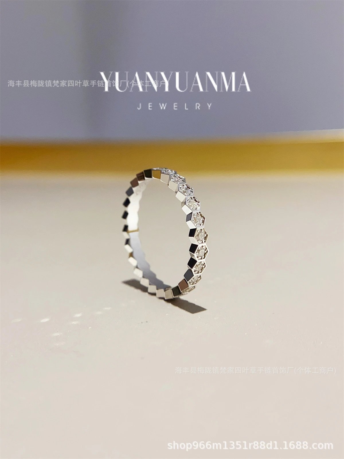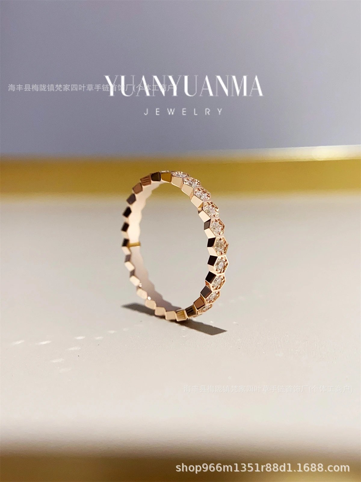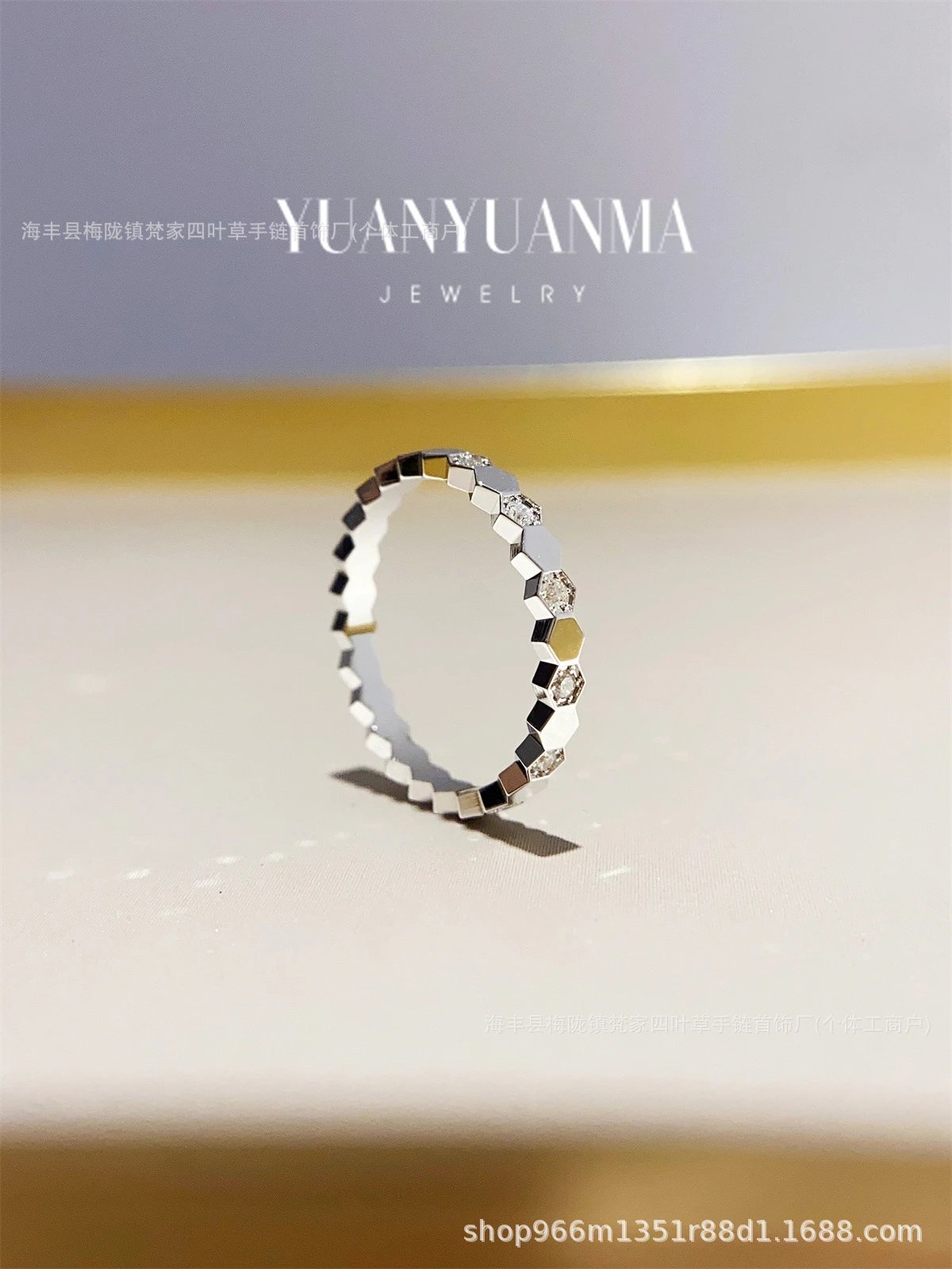 尚美蜂窝戒指 CNC菱角分明 蜂巢叠戴指环高碳钻宋慧乔同款情侣款