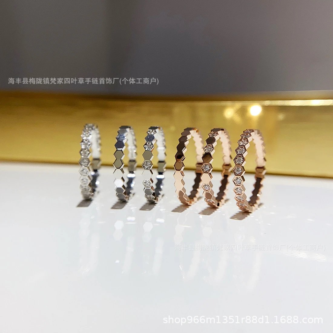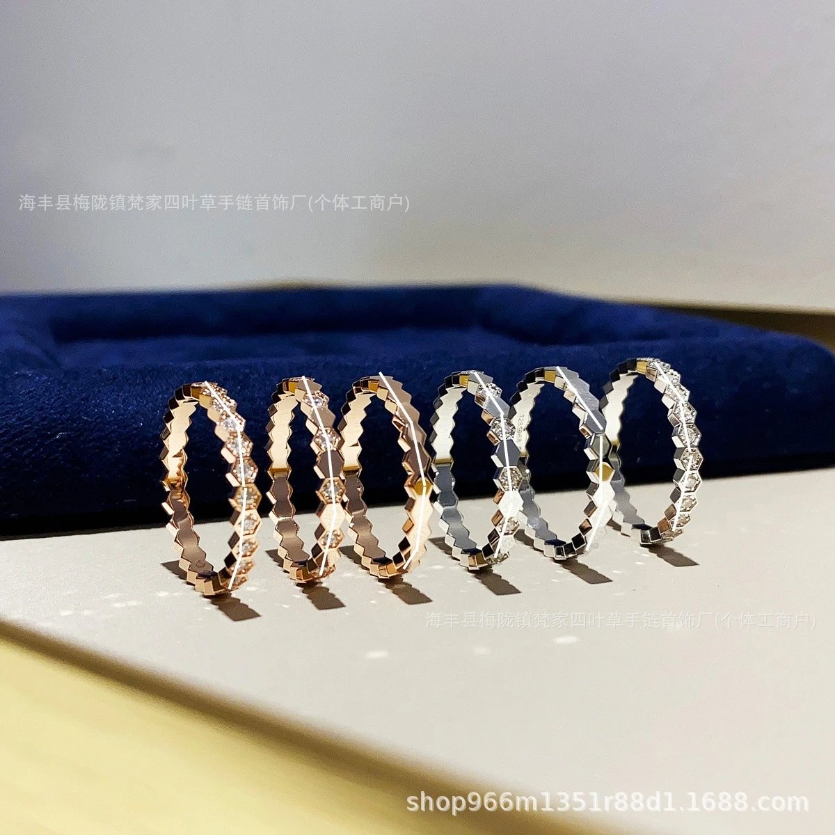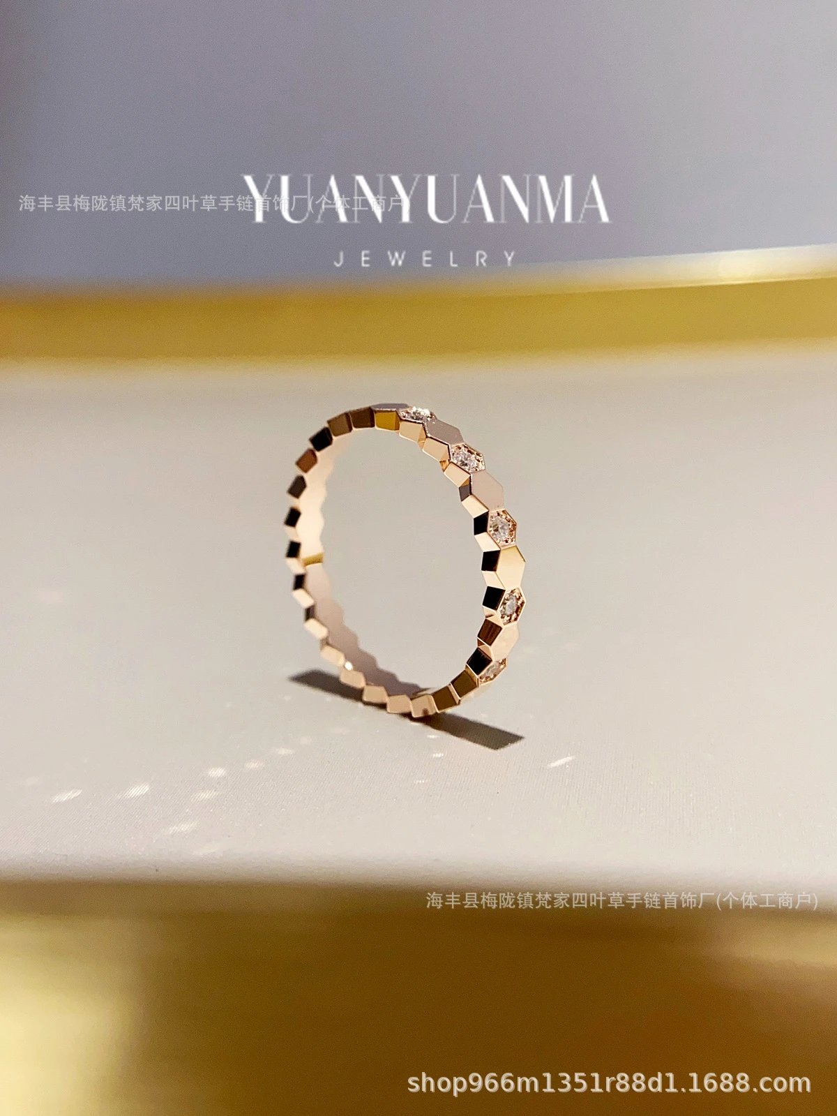 尚美蜂窝戒指 CNC菱角分明 蜂巢叠戴指环高碳钻宋慧乔同款情侣款