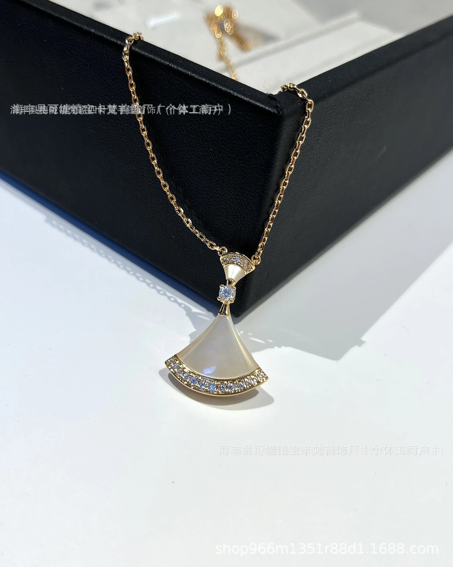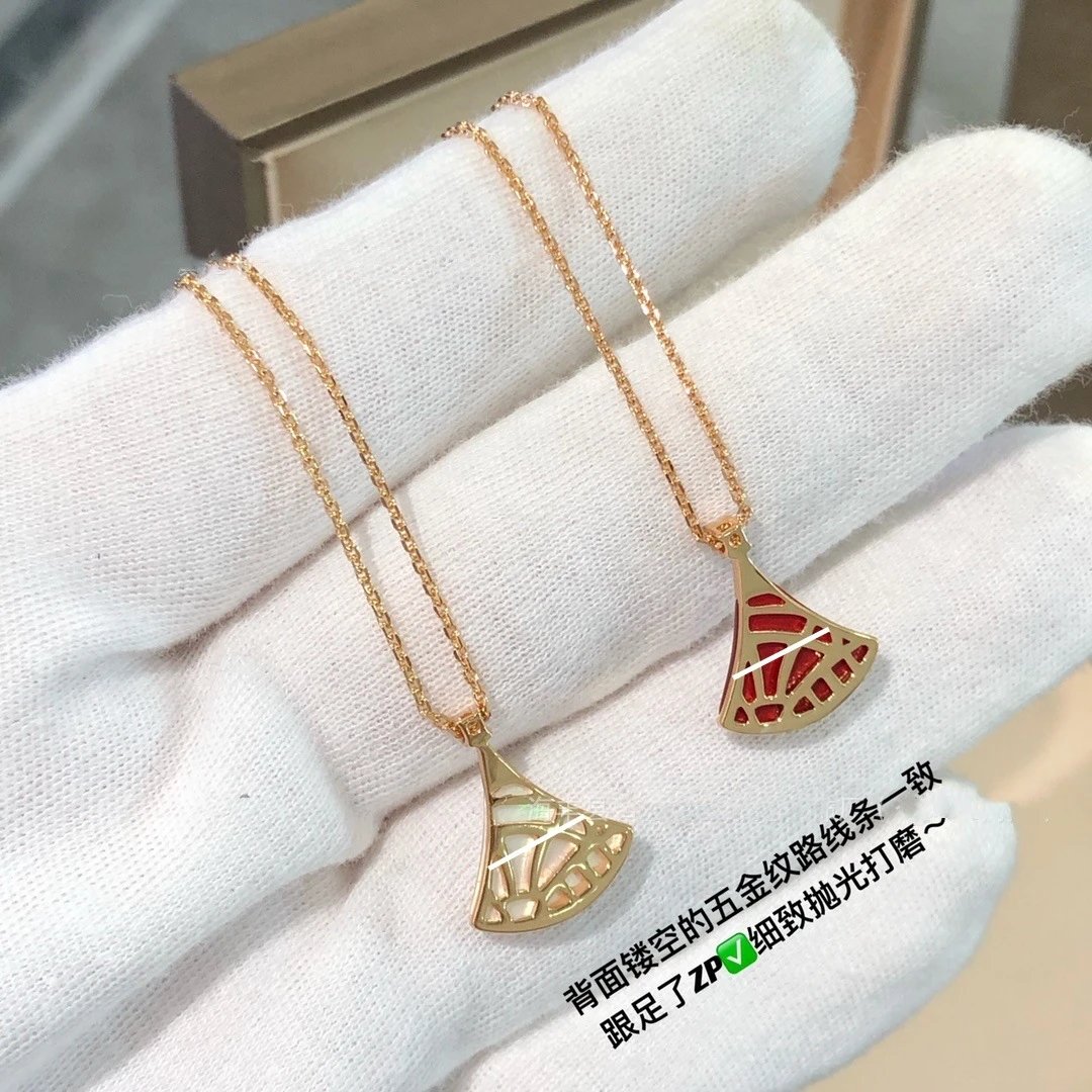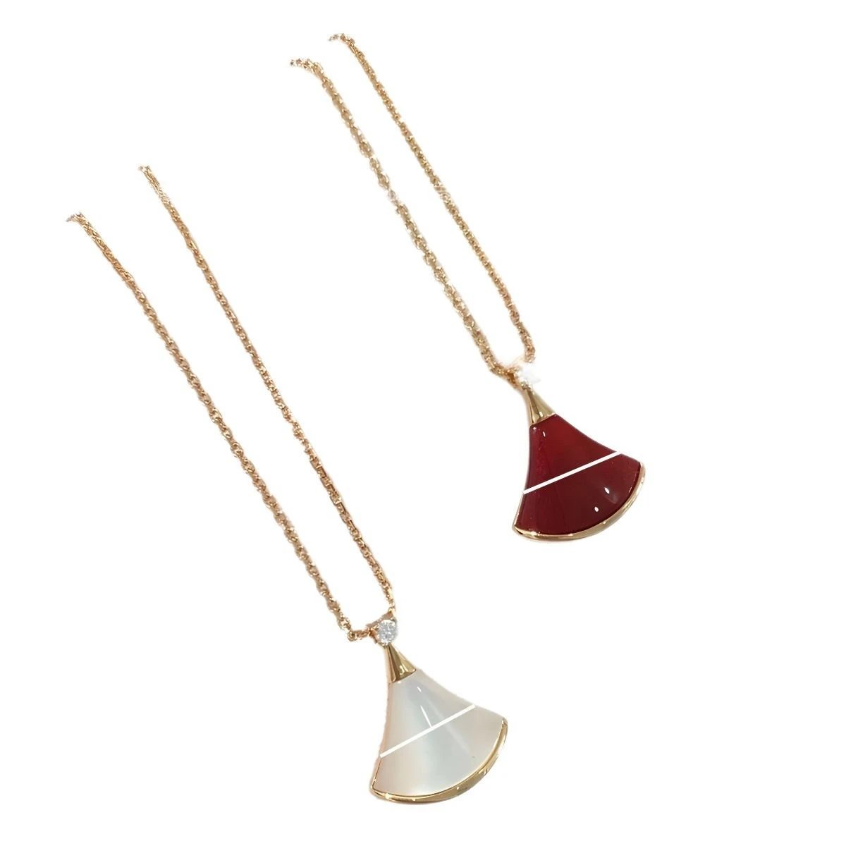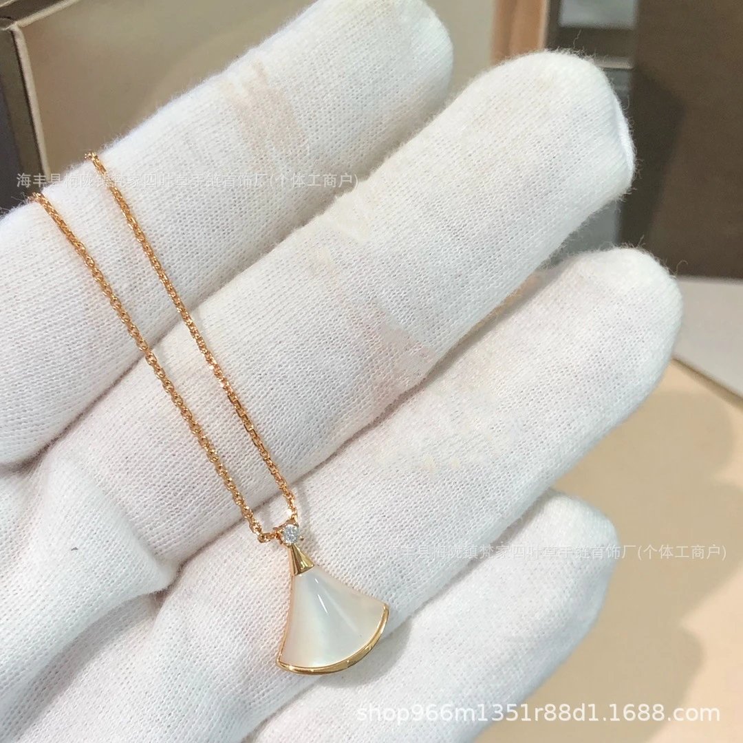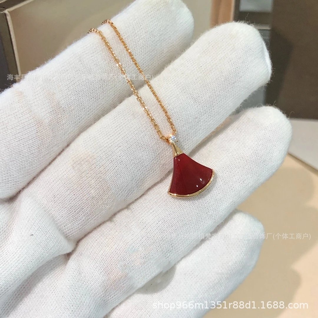 宝家小扇子项链18K金玫瑰金红玉髓白贝母裙子吊坠推荐轻奢锁骨链
