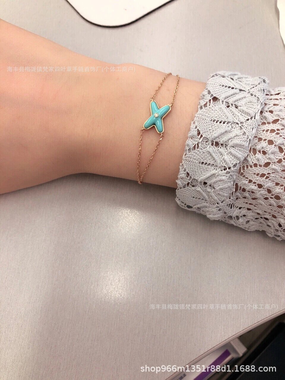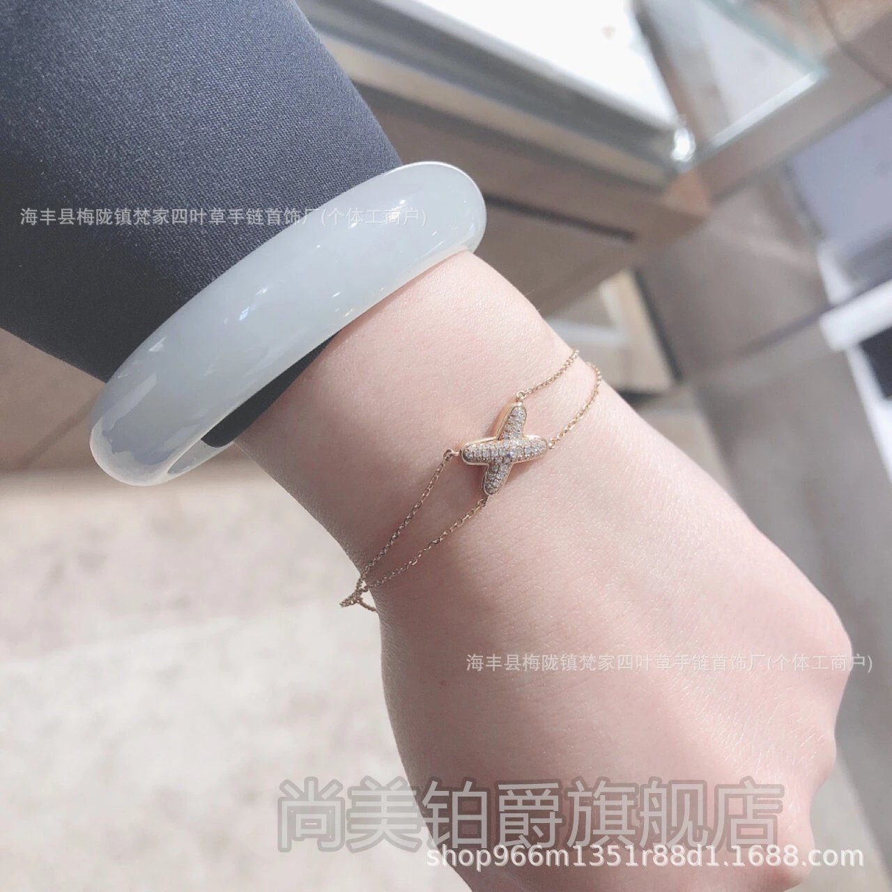 尚家美高版欢缘镀18K玫瑰金交叉手链镶钻双链手环女神节礼物
