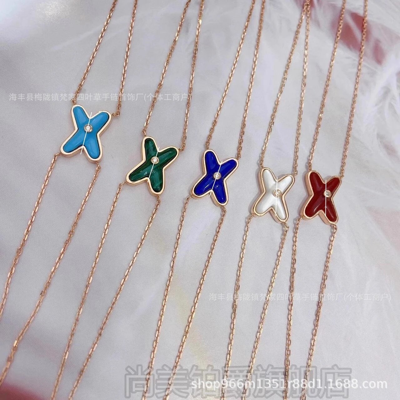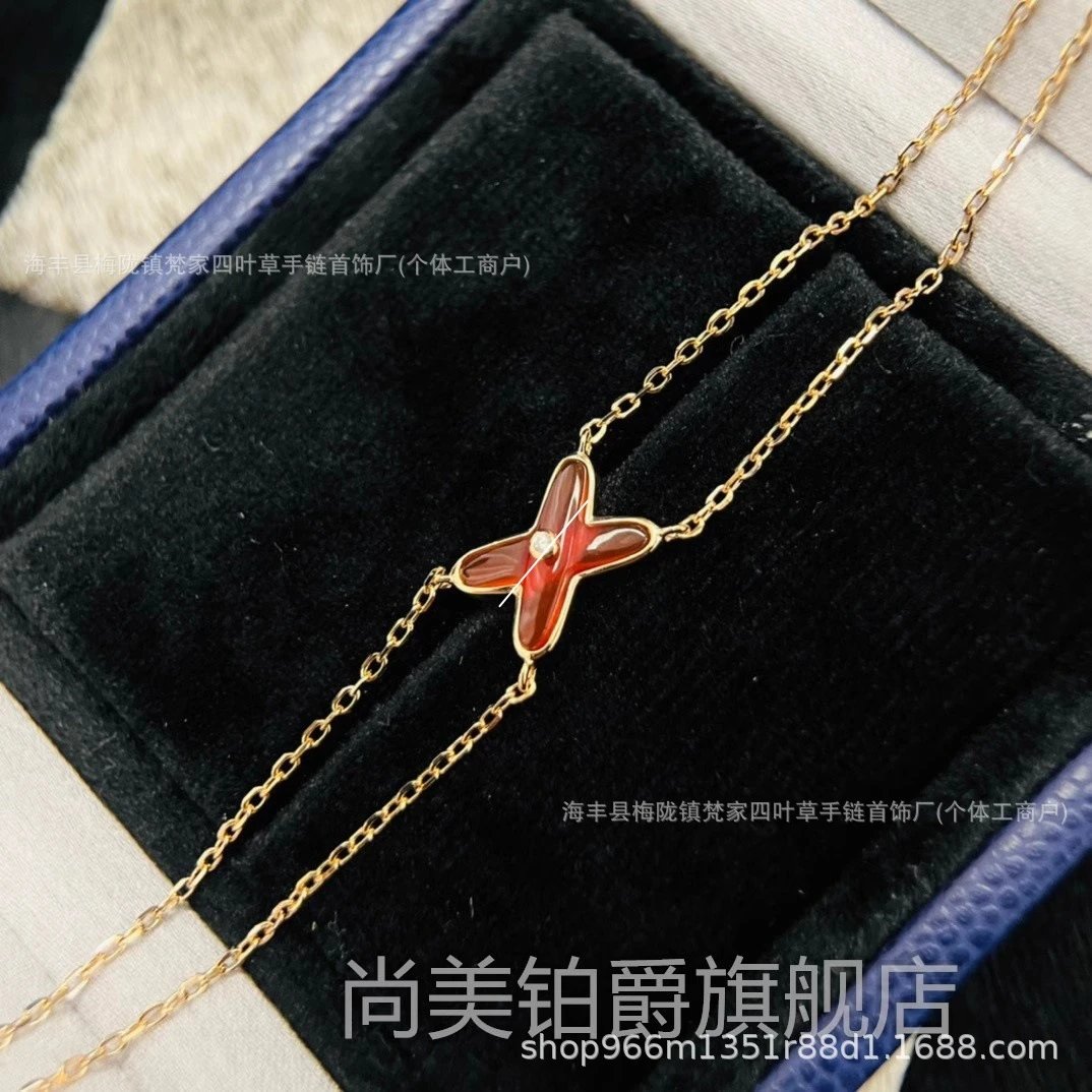 大花双面四叶草项链女V金天然白贝母红玉髓精工精工毛衣链