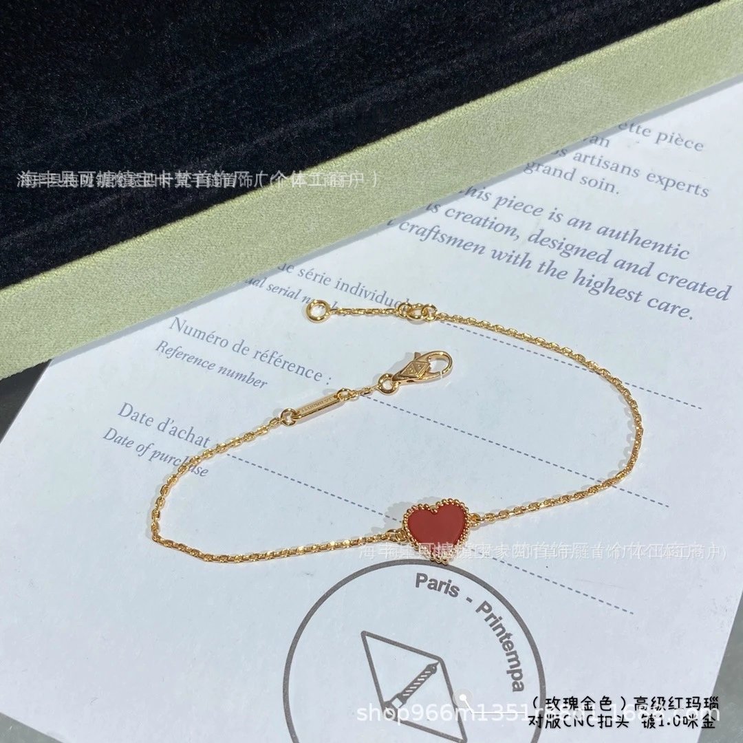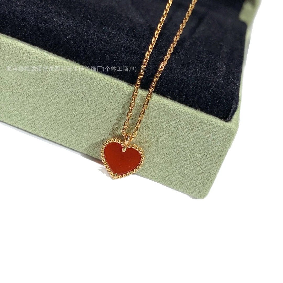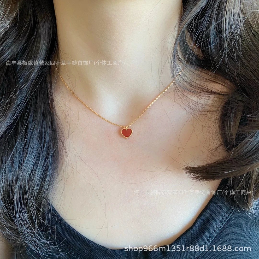 梵家四叶草红玉髓爱心项链镀18K玫瑰金心形吊坠手链耳钉女