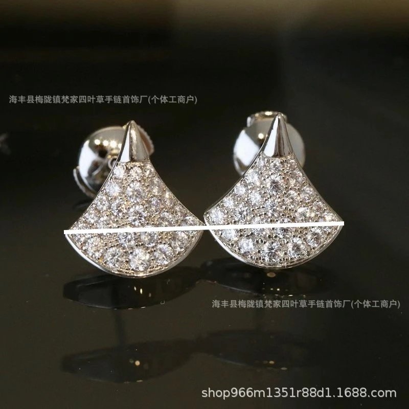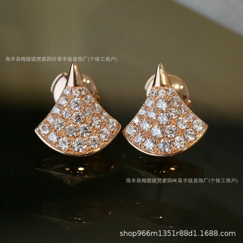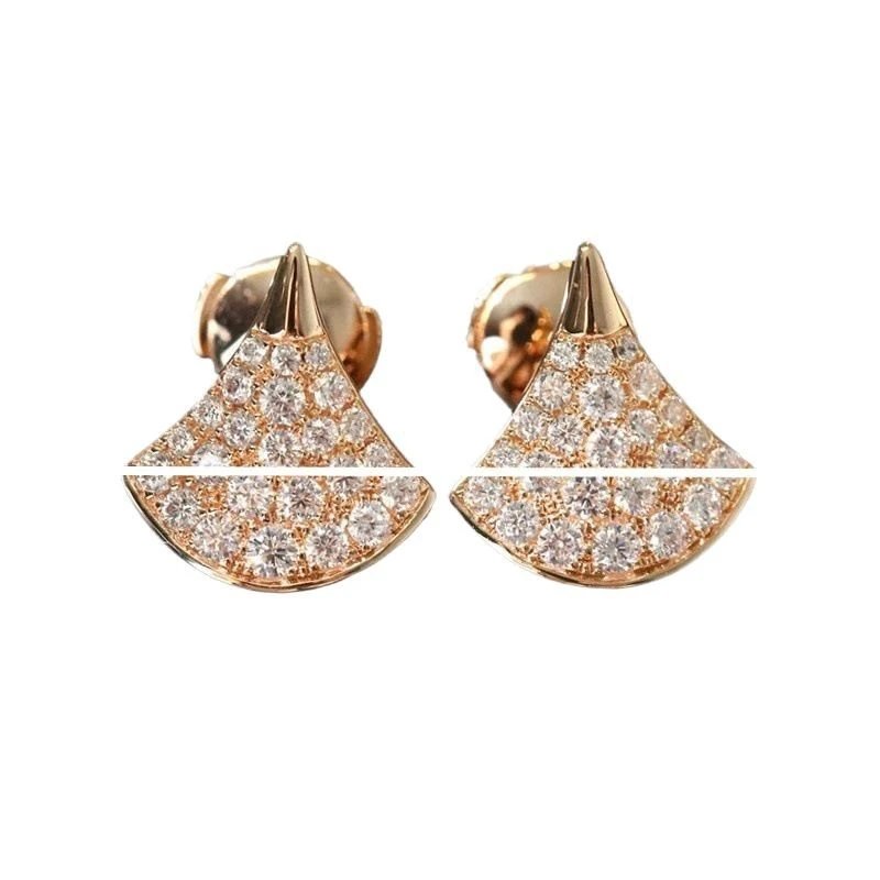 宝家日常通勤轻奢耳饰耳环满钻小裙子耳钉女小号扇形耳环镀18K金