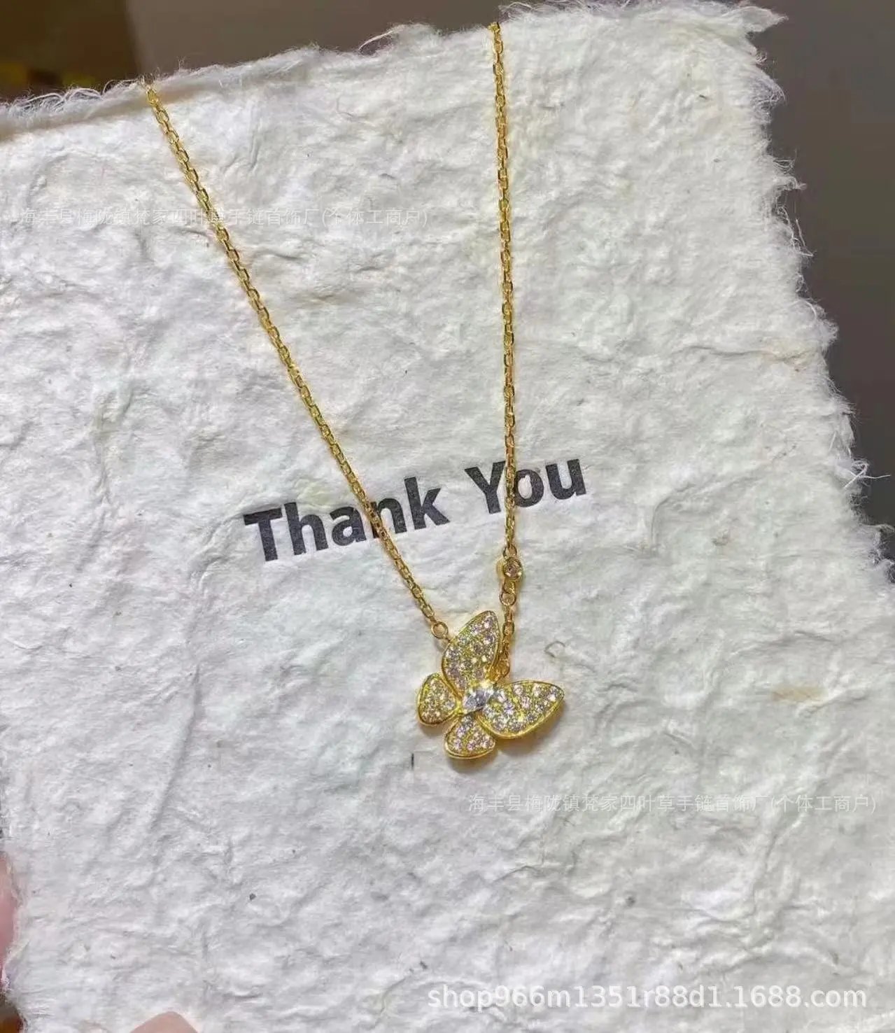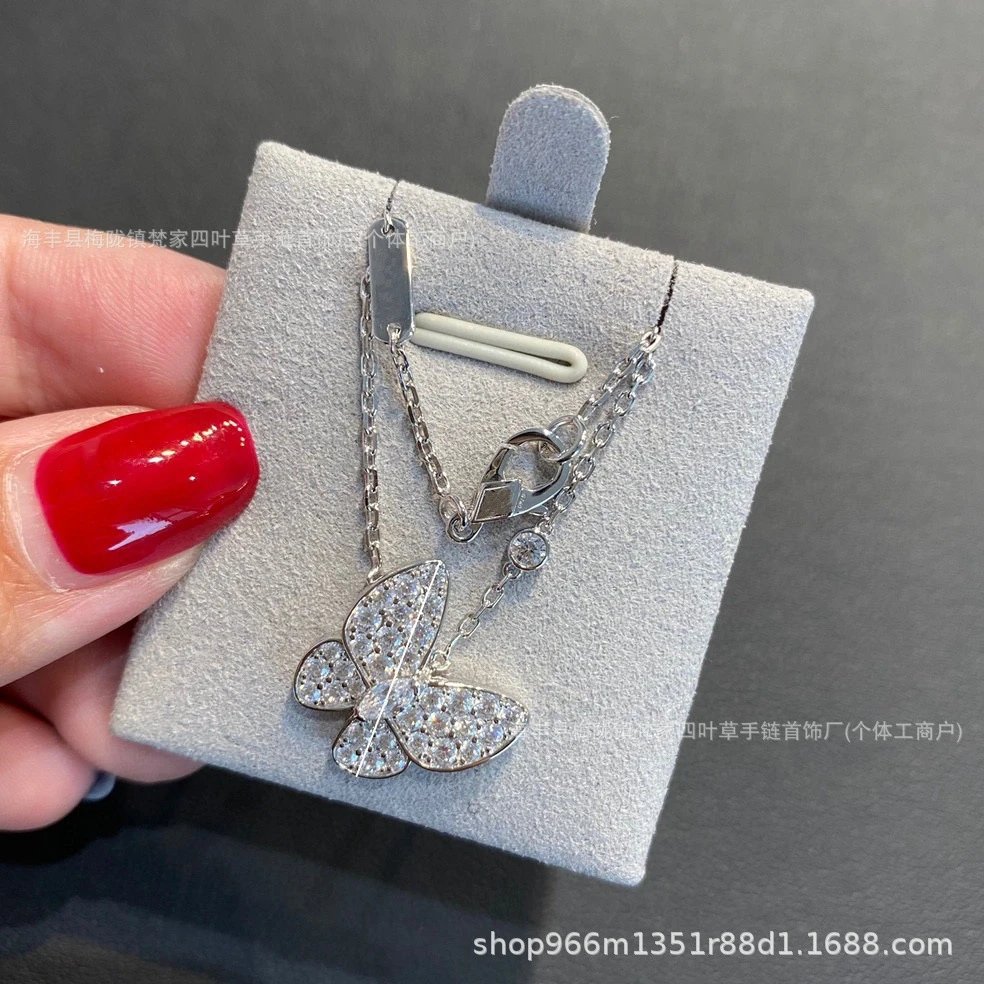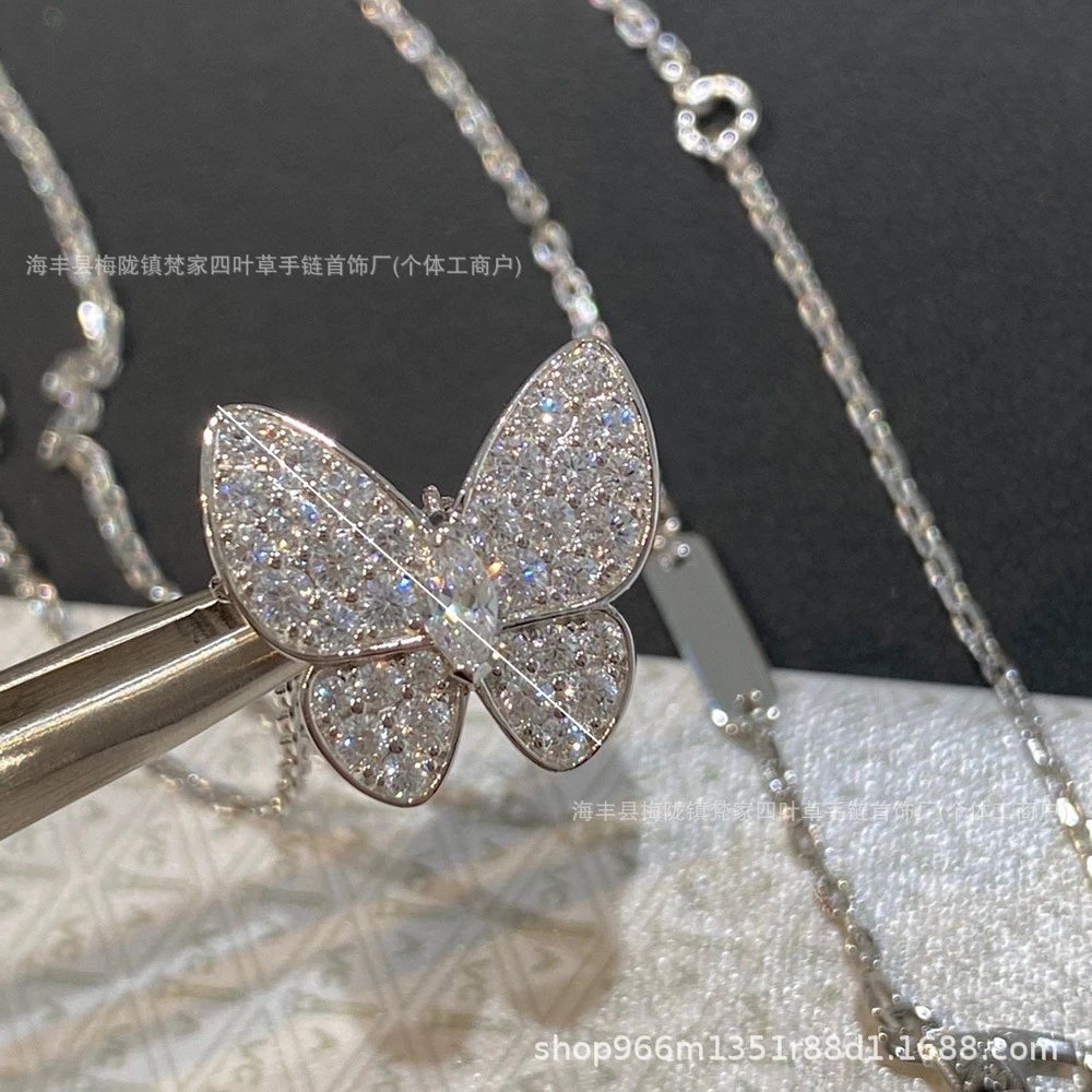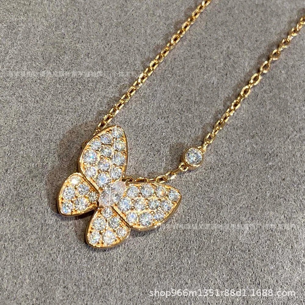 梵家高版满钻蝴蝶项链镀18K玫瑰金轻奢锁骨链女直播供应