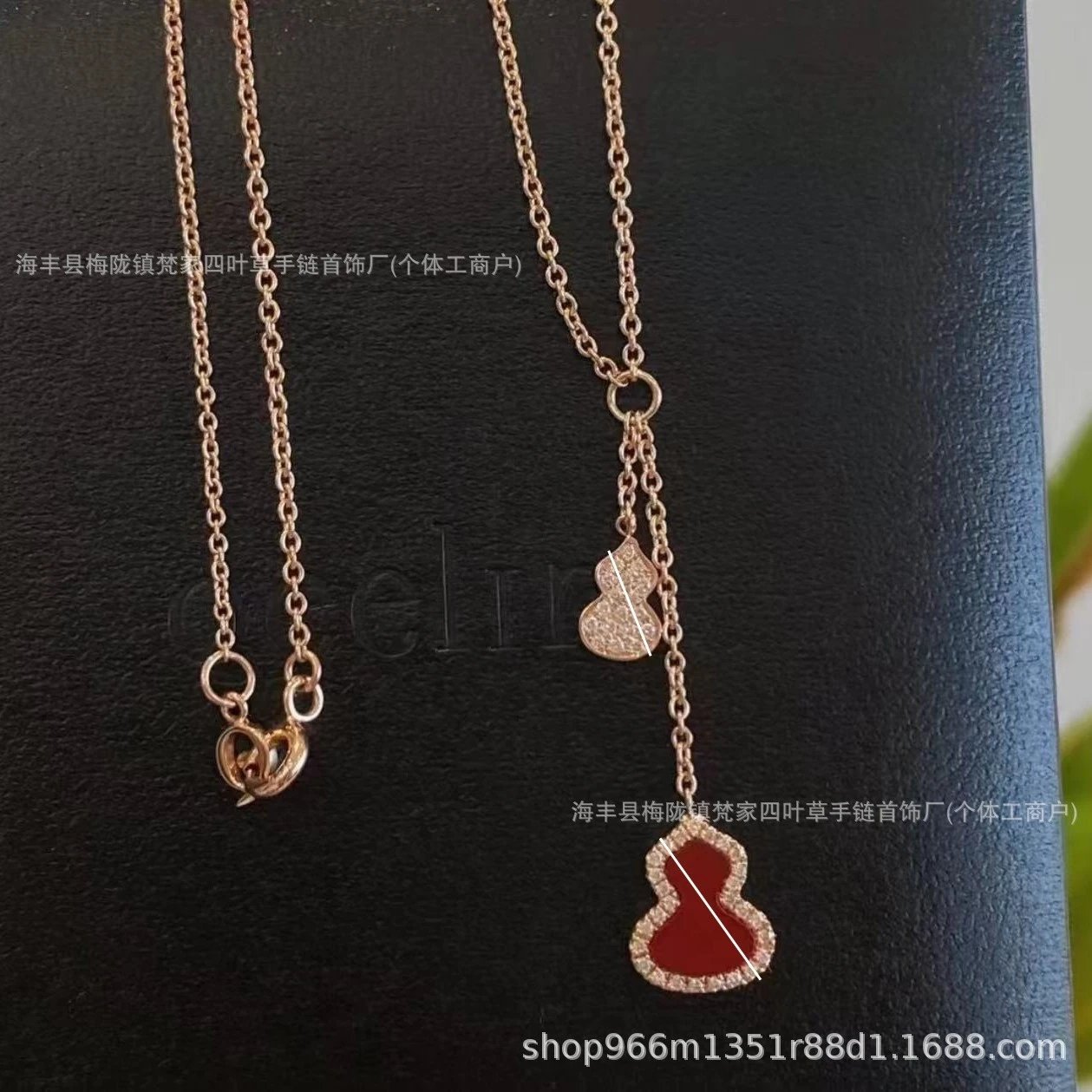 麒麟葫芦项链镀18K金玫瑰金红玛瑙白贝母吊坠锁骨链女情人节礼物