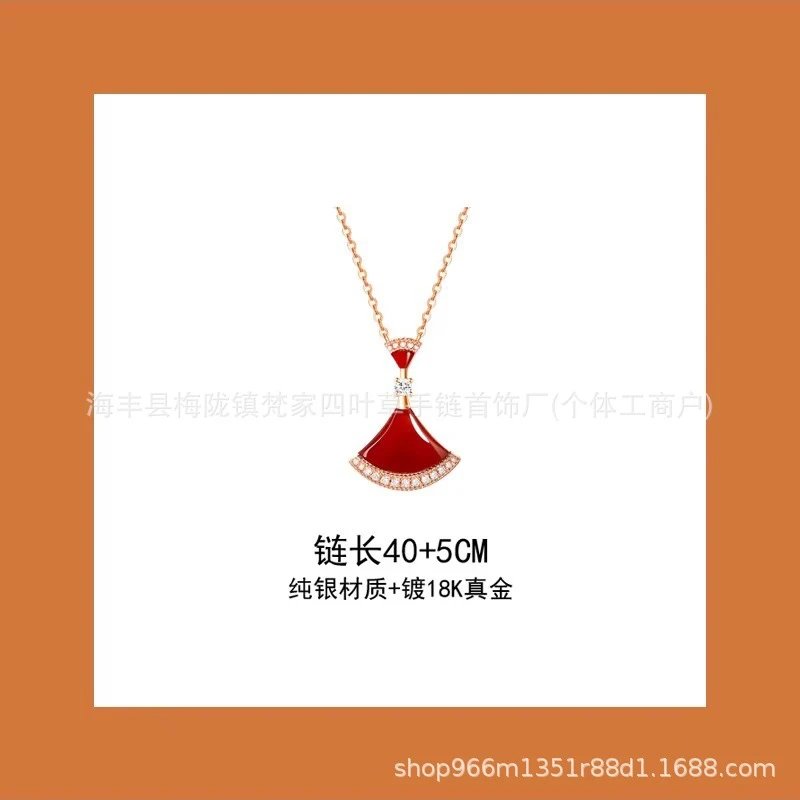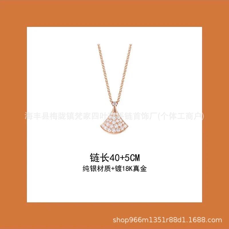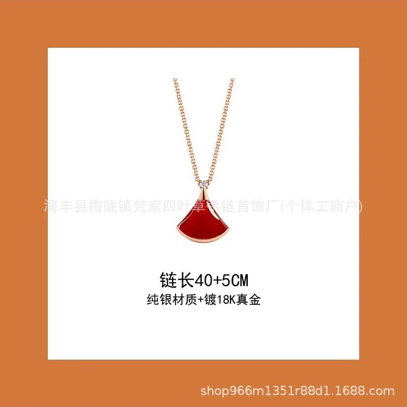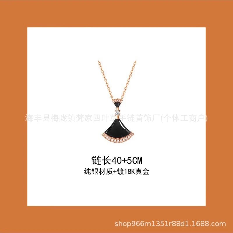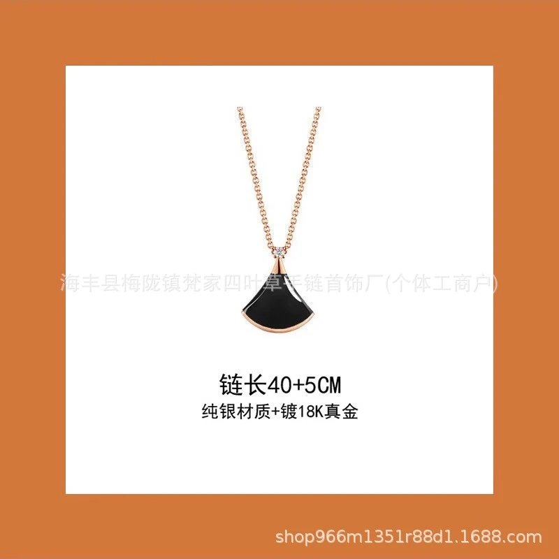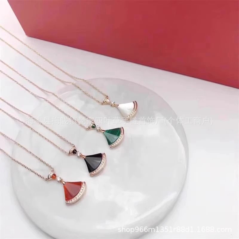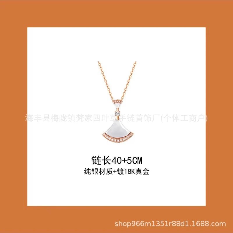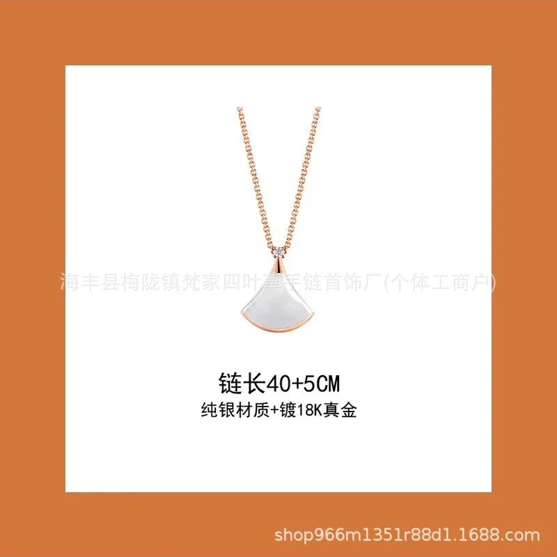 新款扇形小裙子项链女铜合金镀18K金轻奢白贝母锁骨链大扇子吊坠