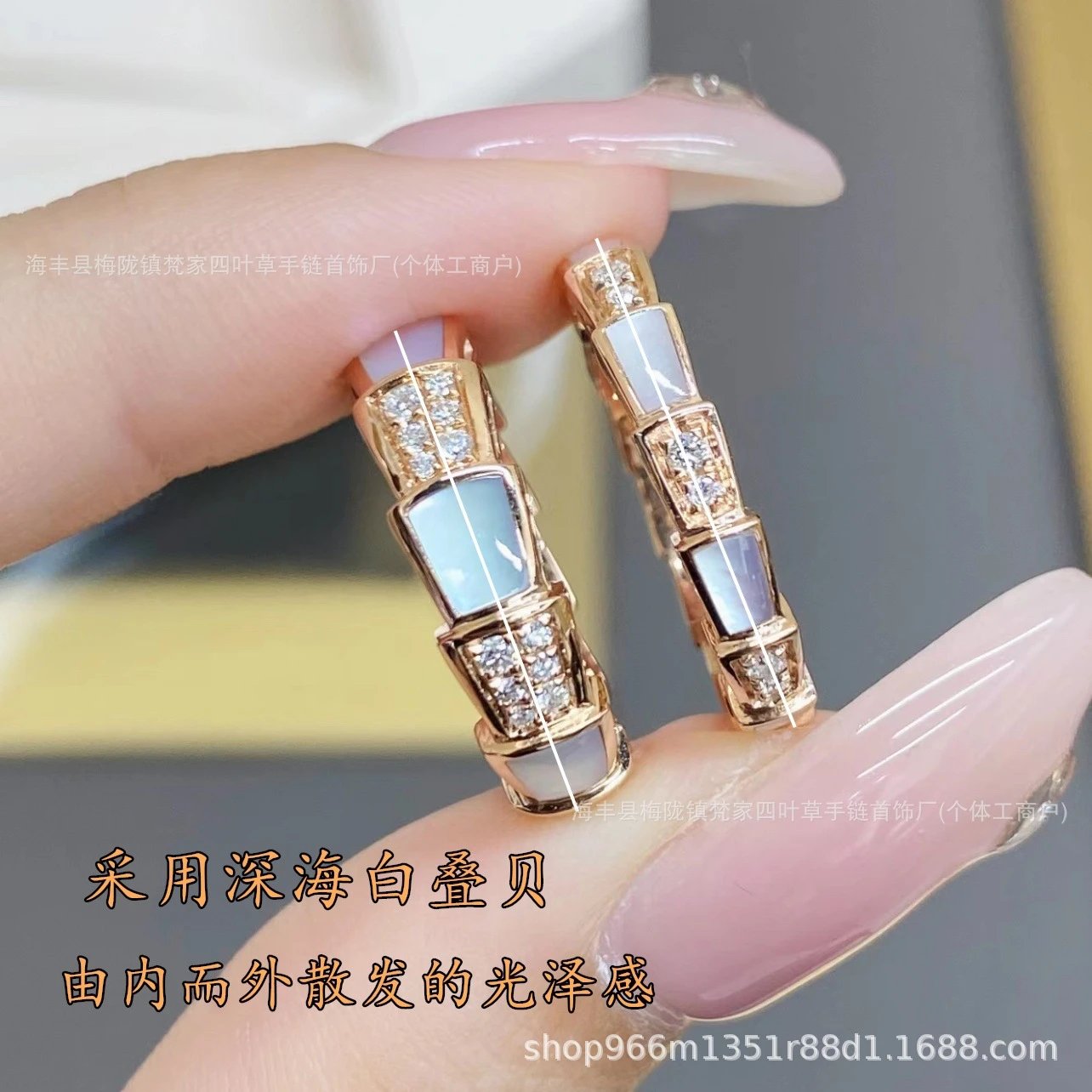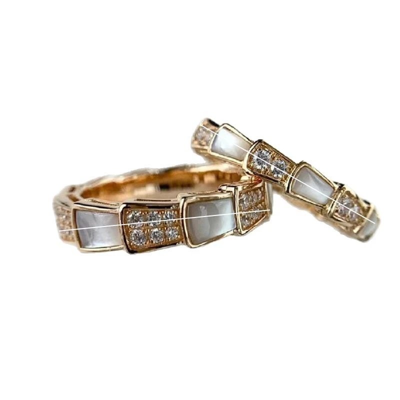 v金宝家蛇骨戒指女白贝母设计18K玫瑰金高级感镶钻轻奢