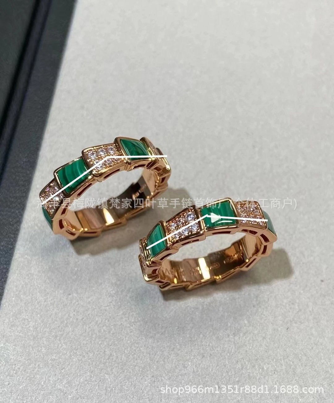 v金宝家蛇骨戒指女白贝母设计18K玫瑰金高级感镶钻轻奢