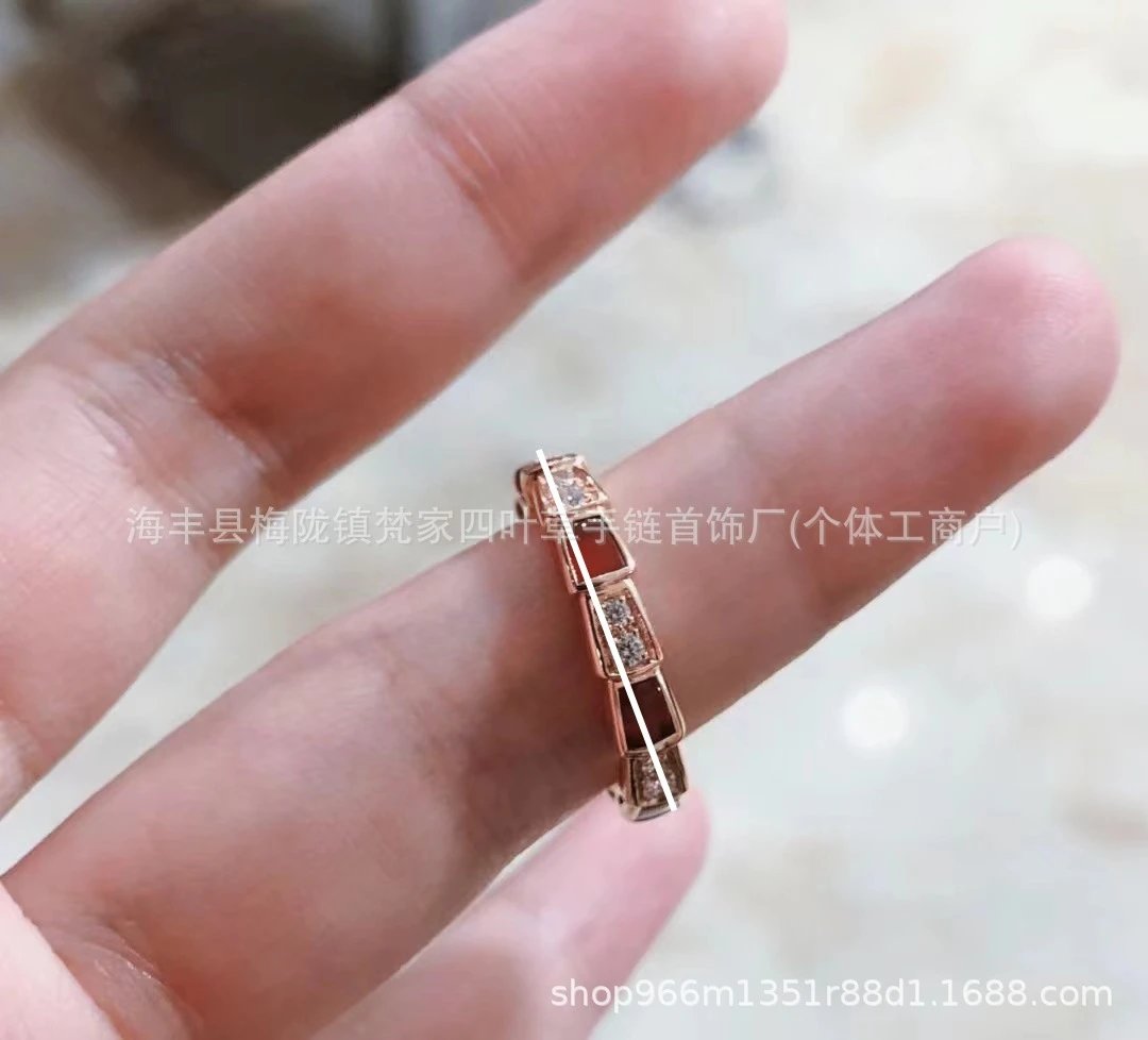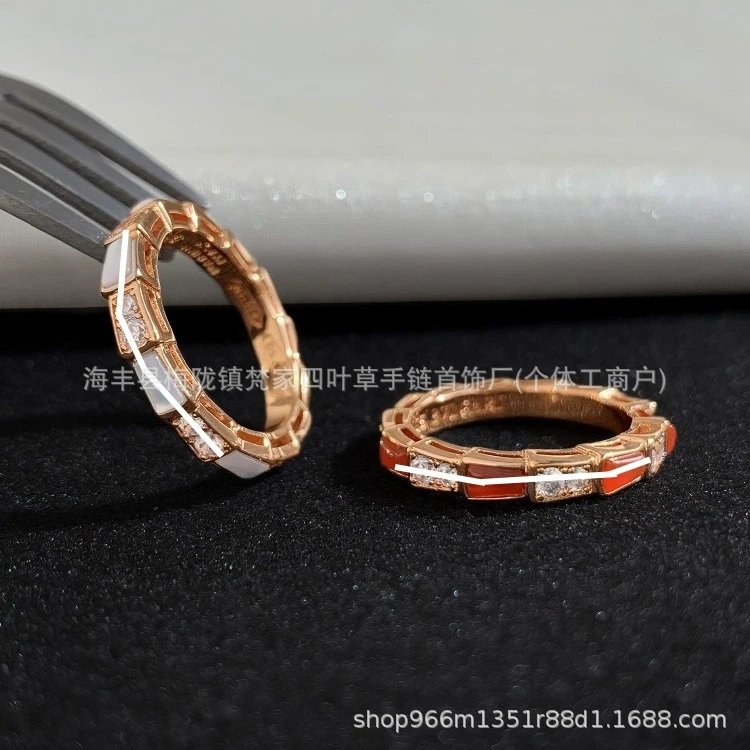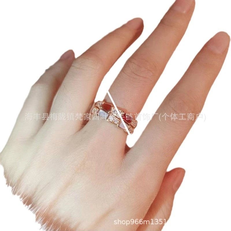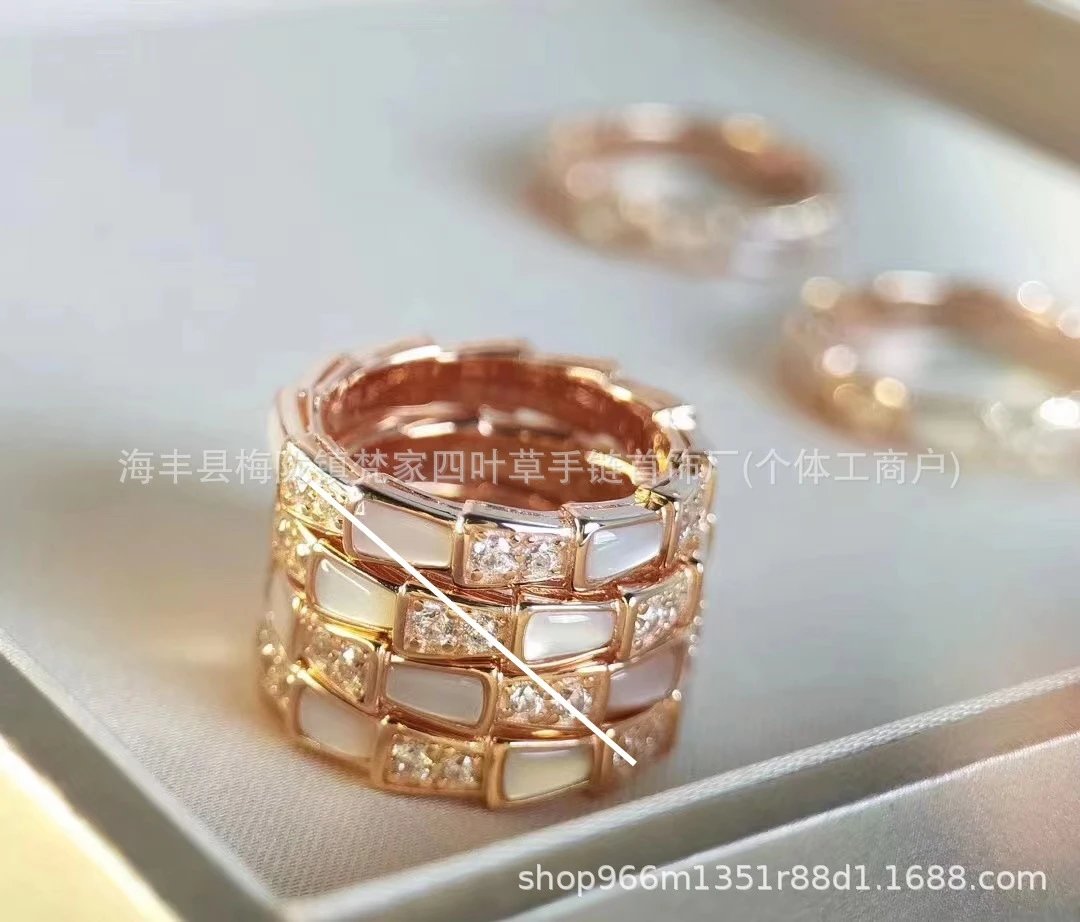 宝家蛇骨戒指女白贝母设计镀18K玫瑰金高级感镶钻轻奢