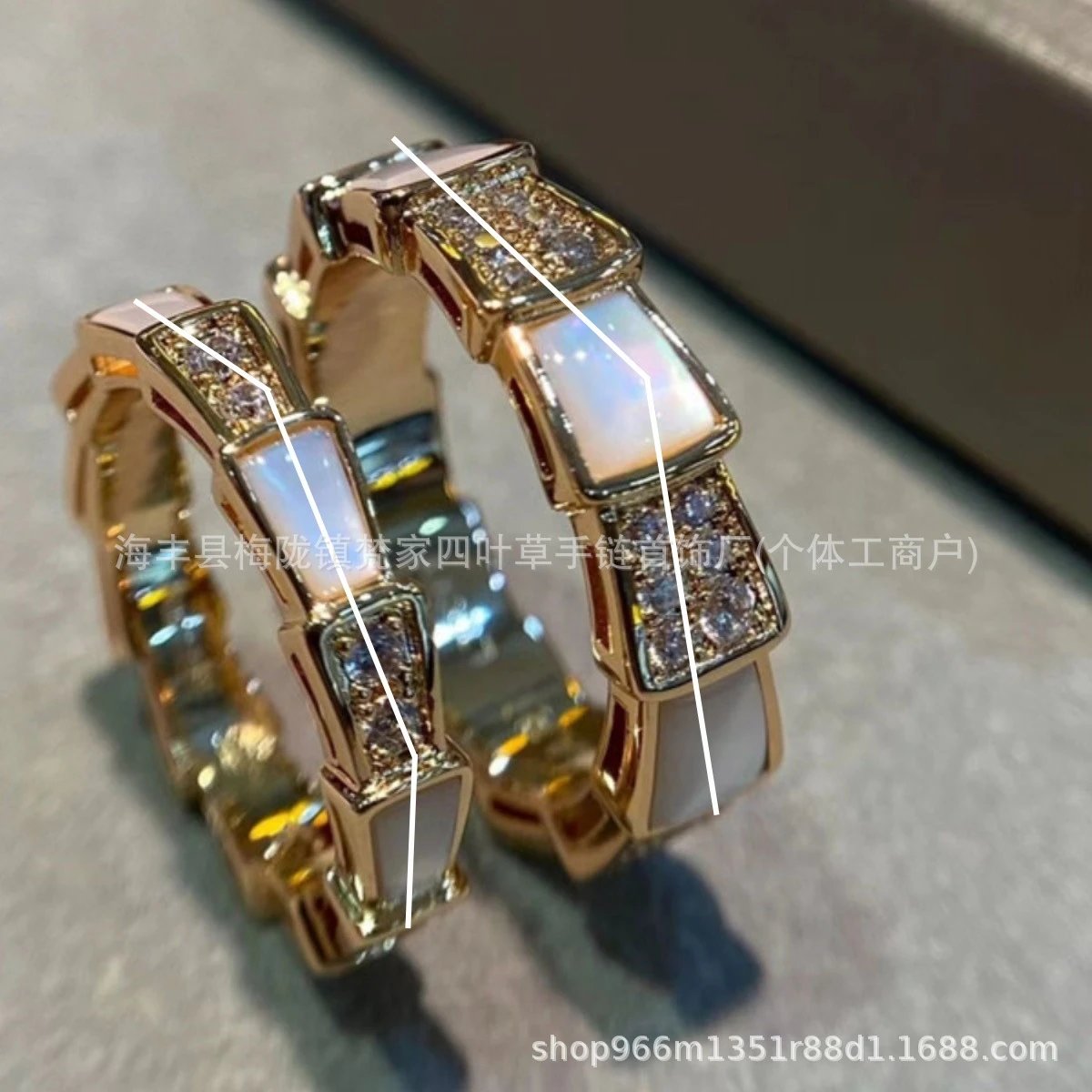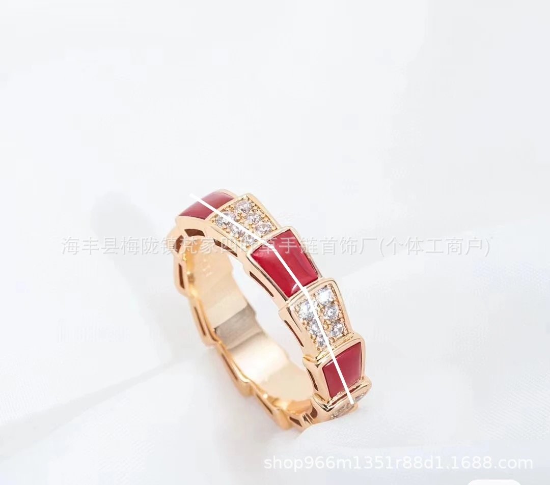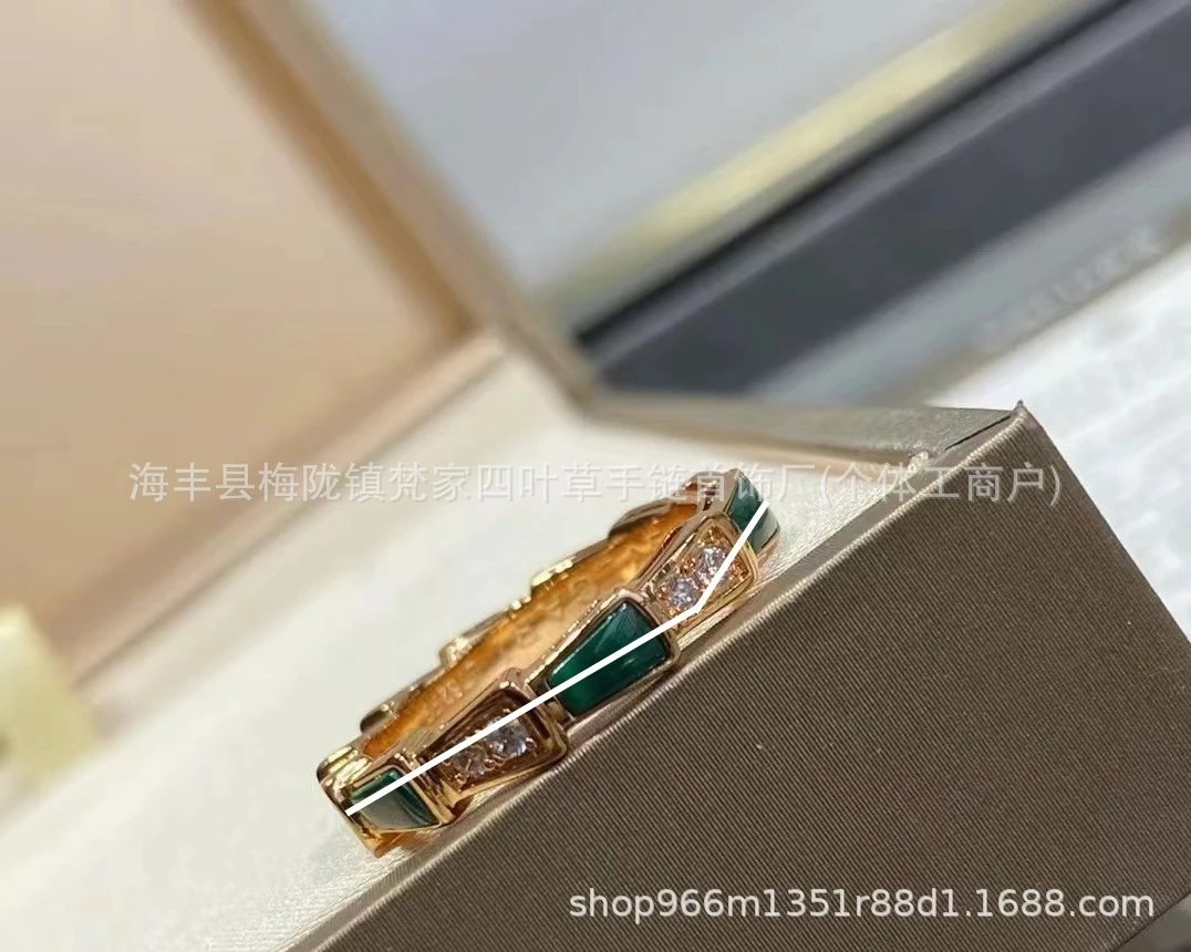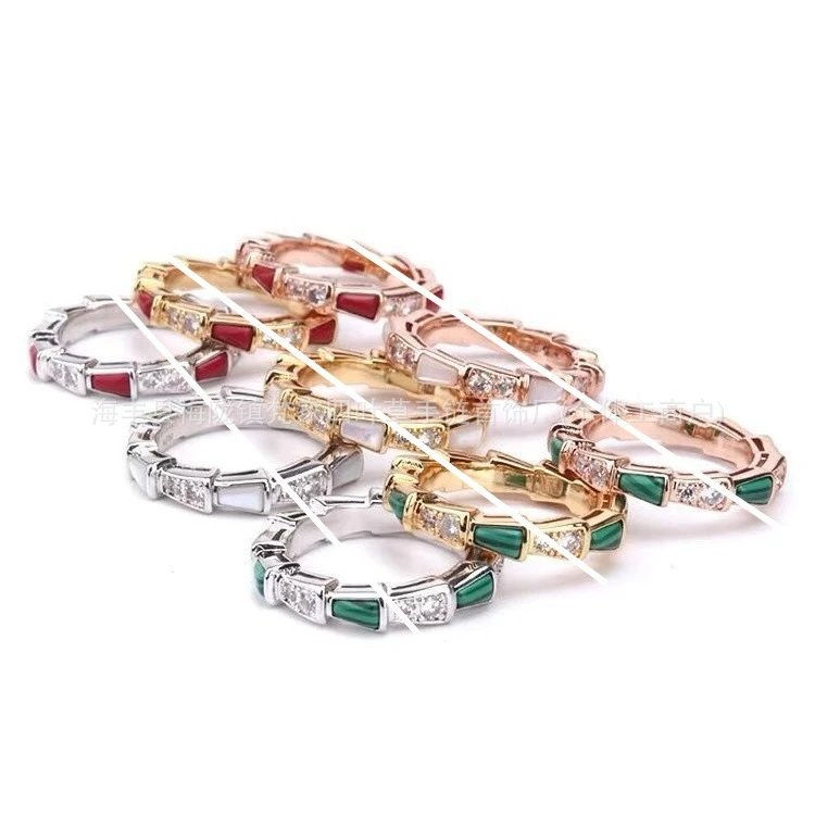 宝家蛇骨戒指女白贝母设计镀18K玫瑰金高级感镶钻轻奢