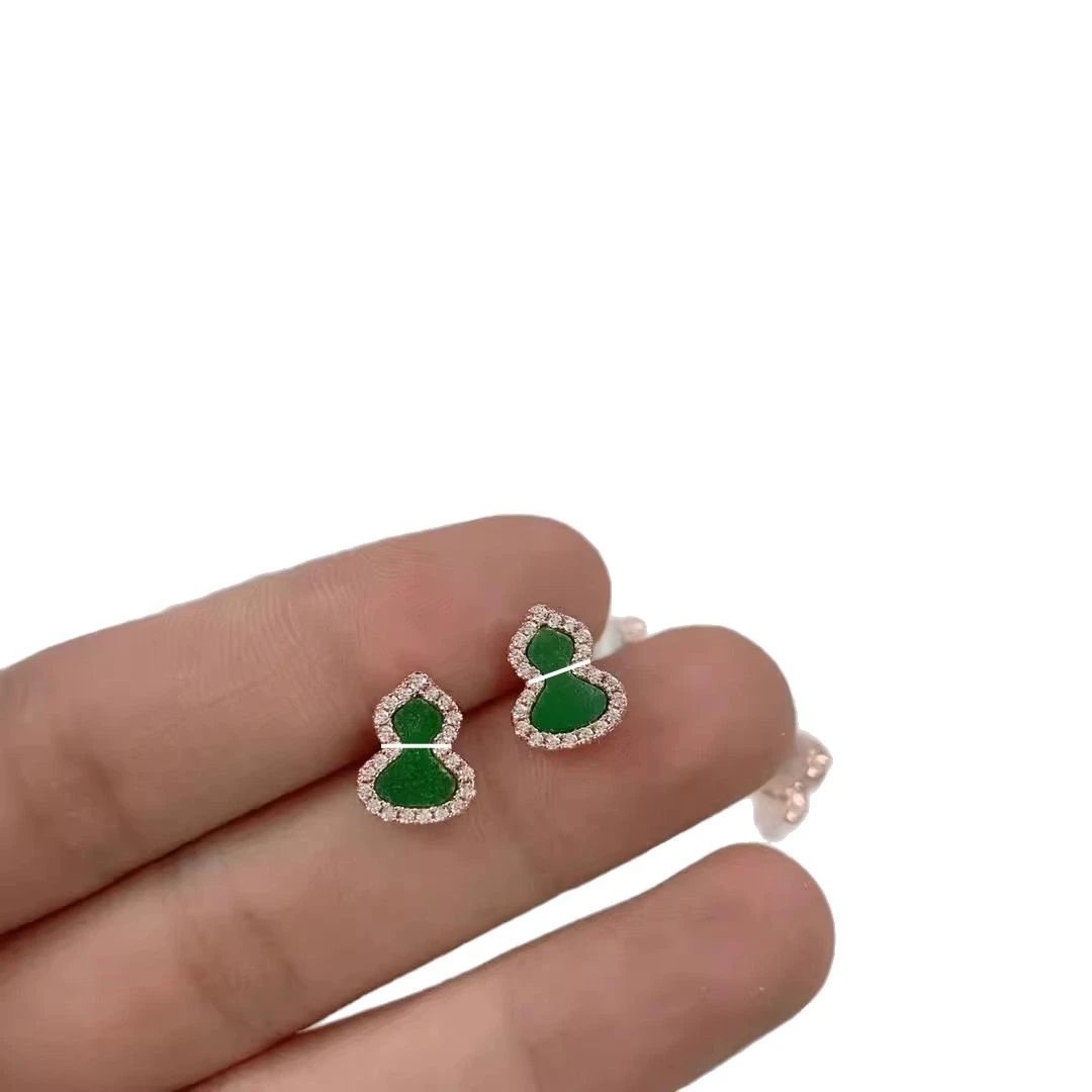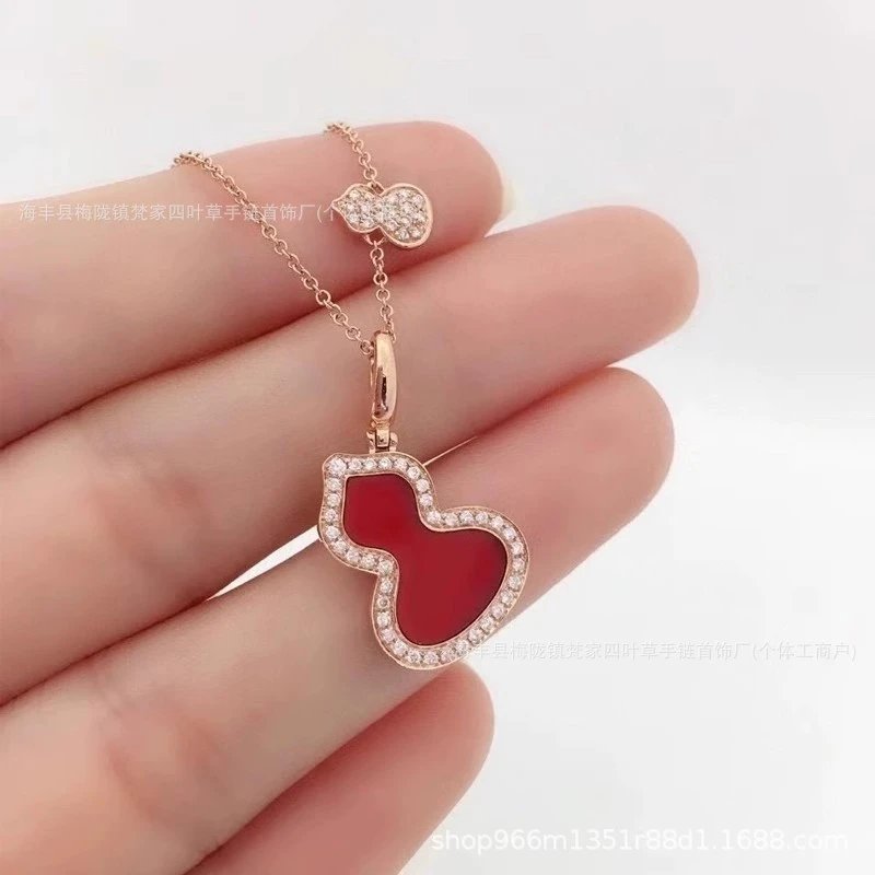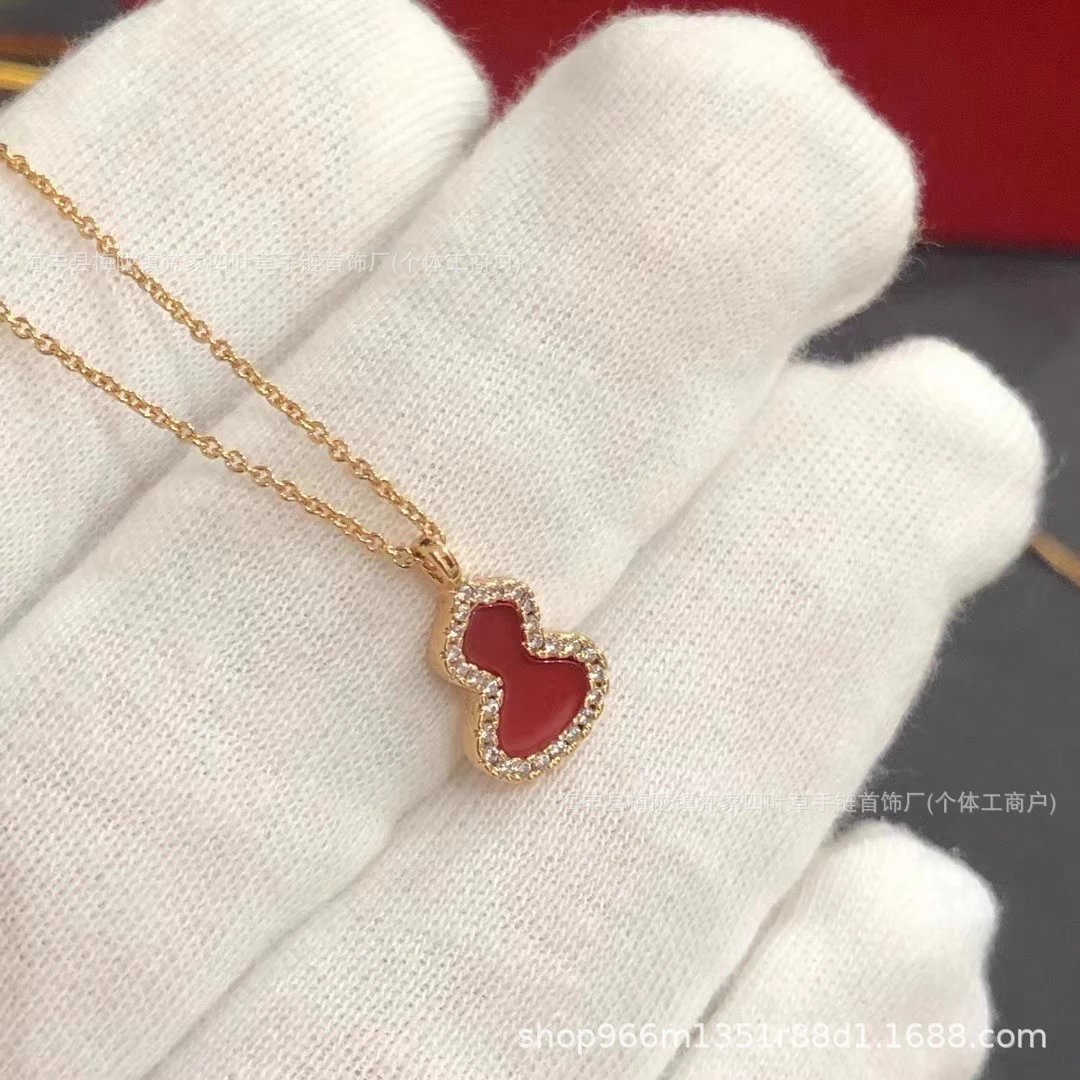 麒麟镀18K金色葫芦项链耳钉红玛瑙女镶钻耳饰吊坠锁骨链ins