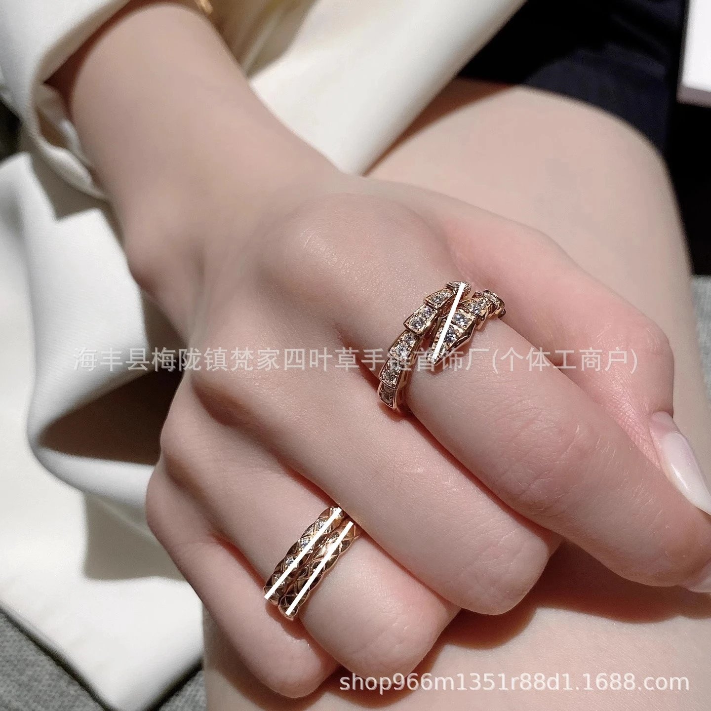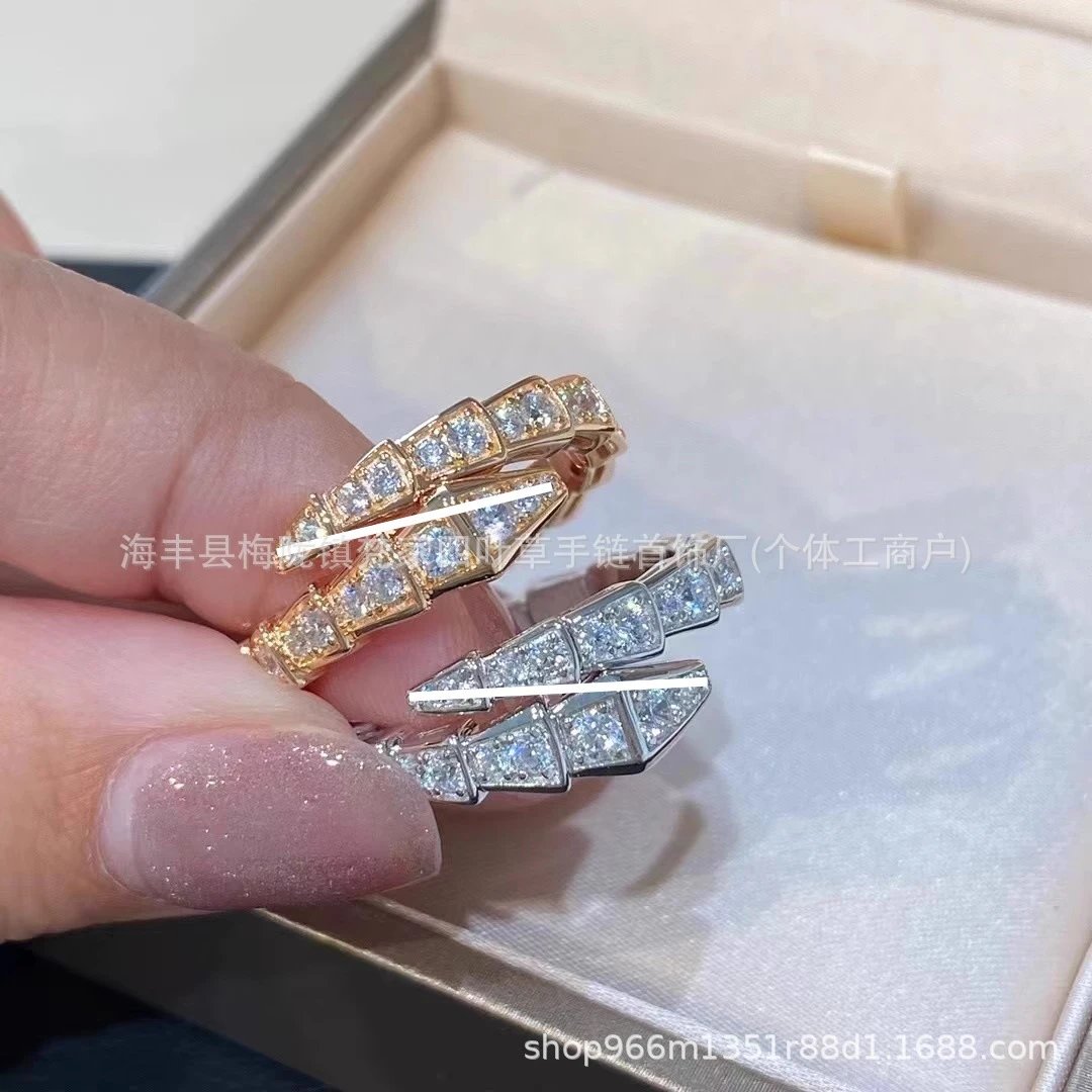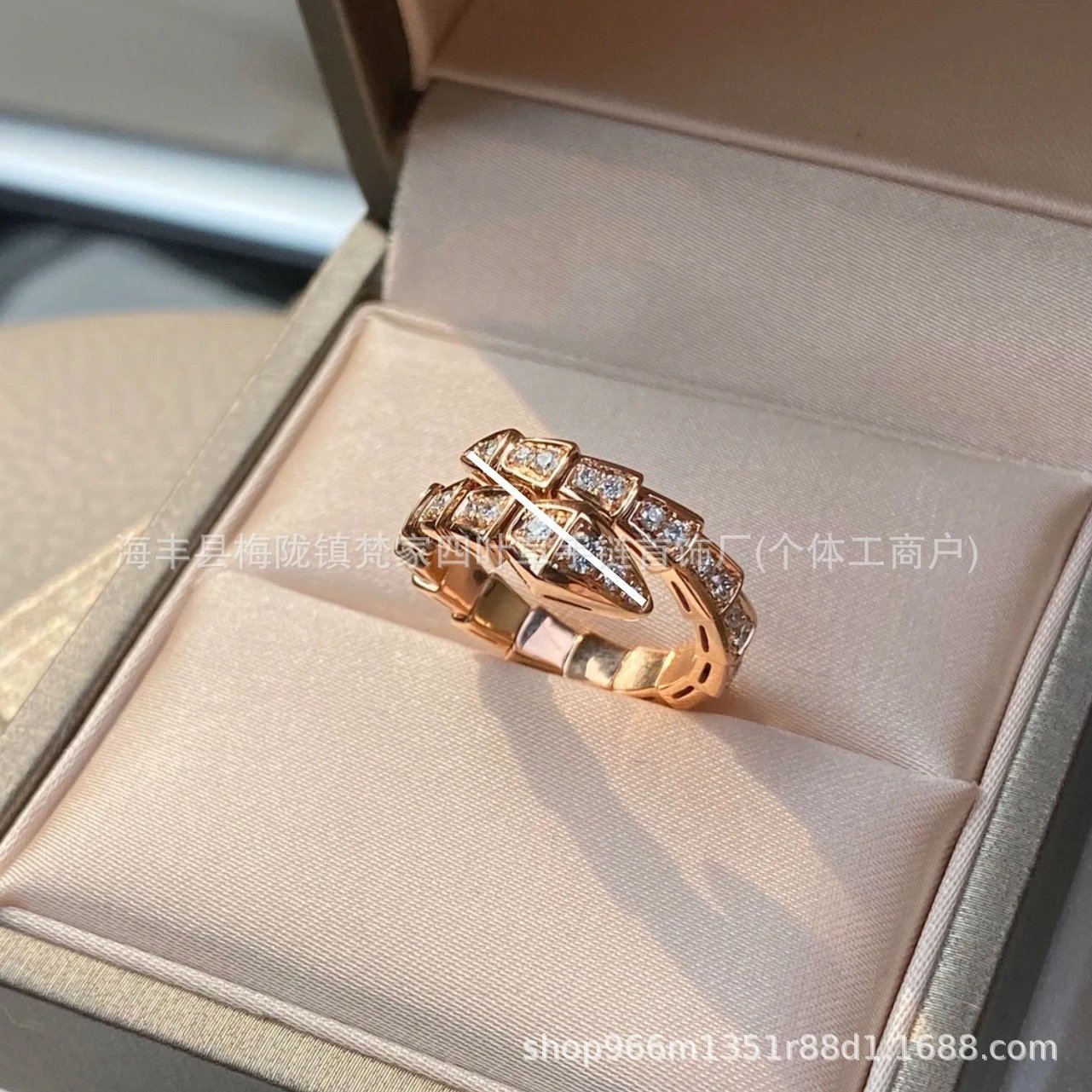 宝家高级感蛇形弹簧戒指女网红轻奢18K玫瑰v金时尚设计满钻食指环