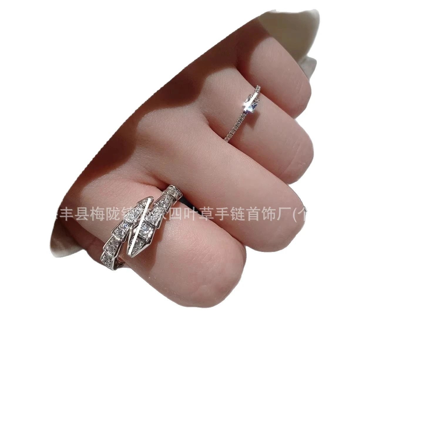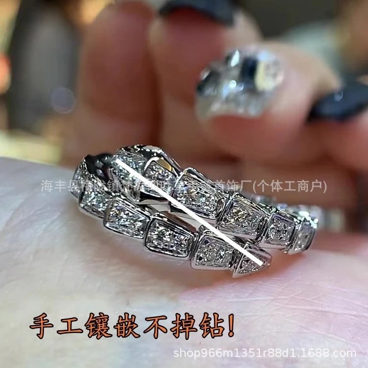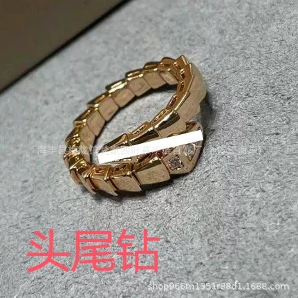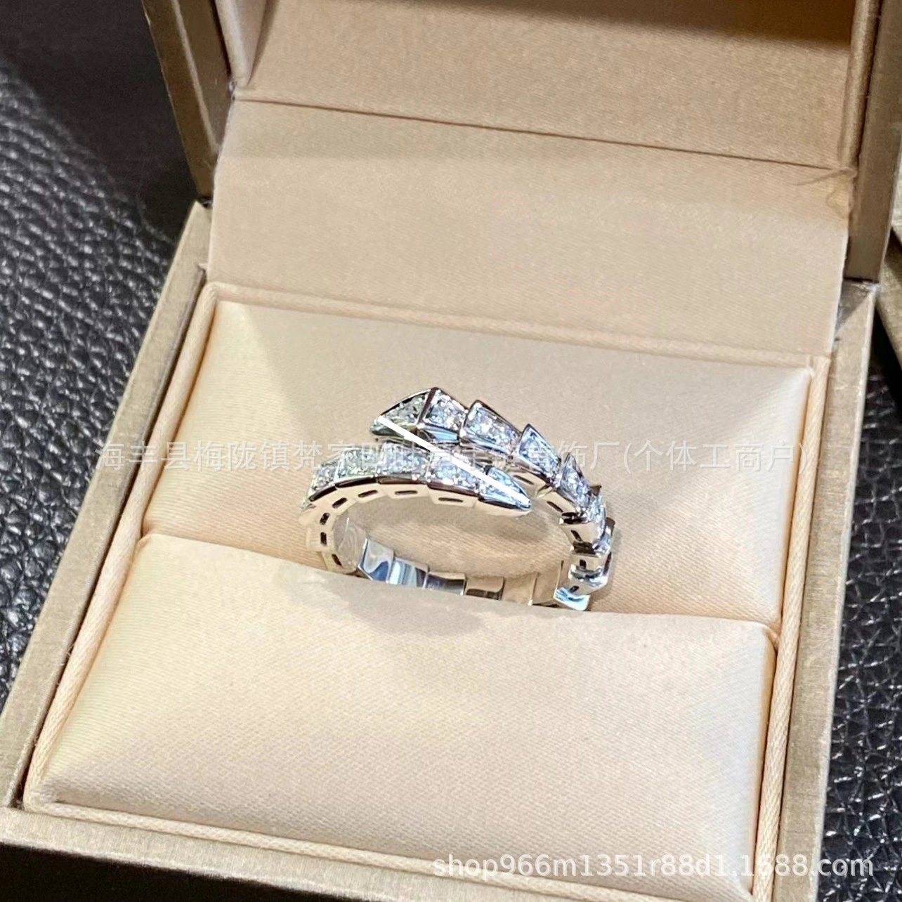 宝家高级感蛇形弹簧戒指女网红轻奢18K玫瑰v金时尚设计满钻食指环