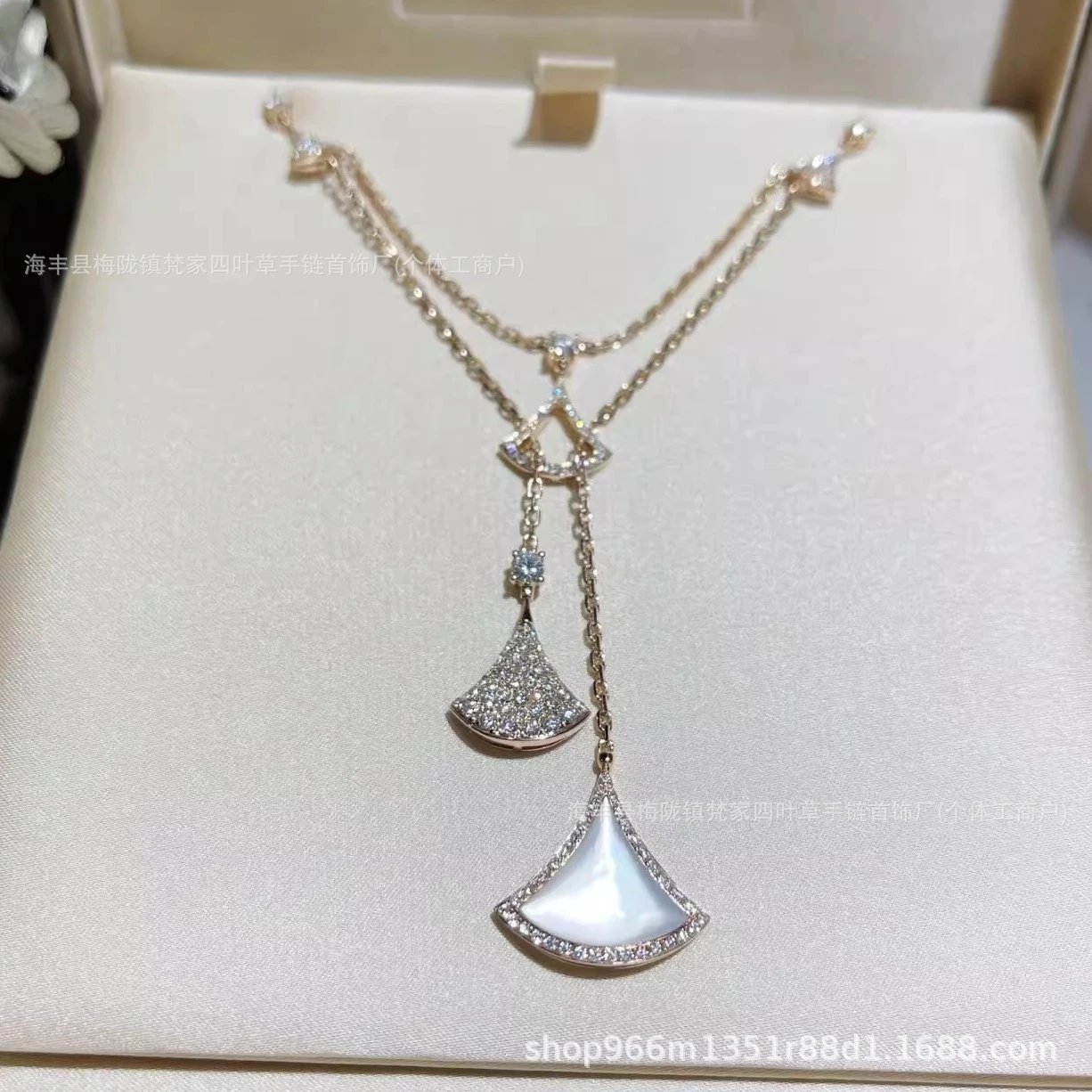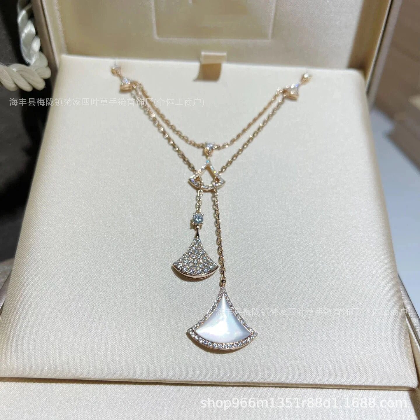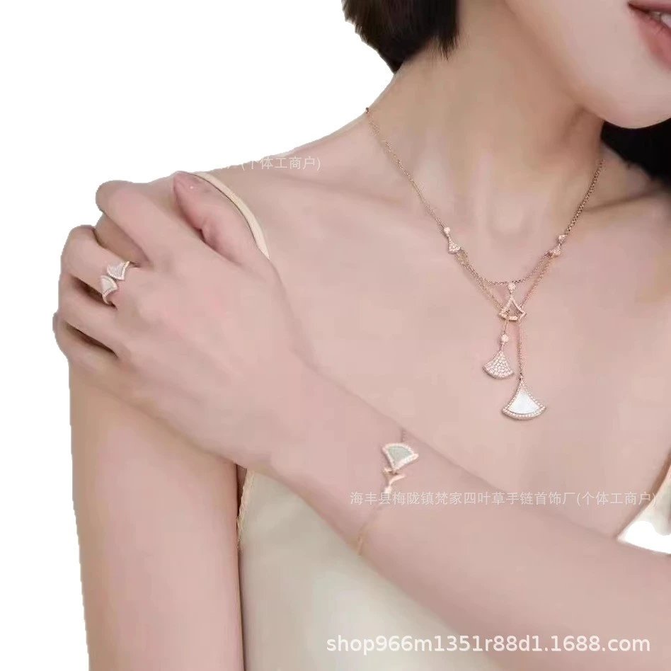 宝家小裙子镀18k玫瑰金项链白贝扇形锁骨链扇子手链轻奢手环