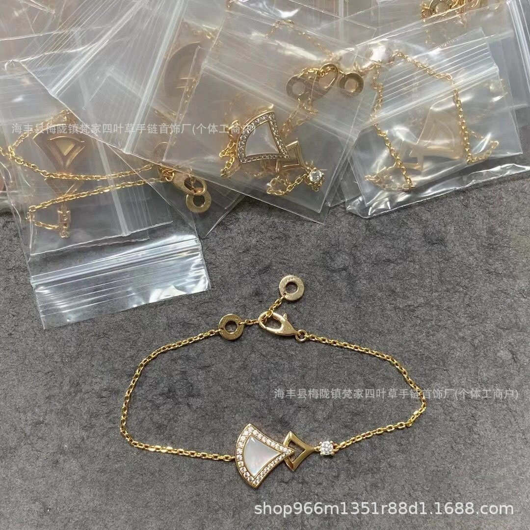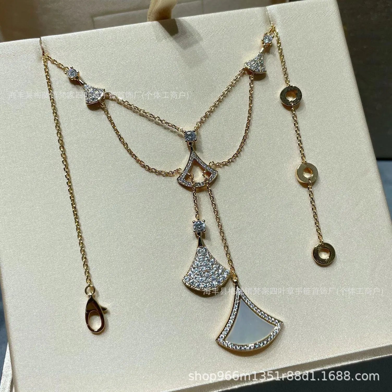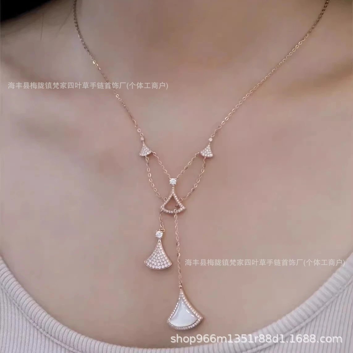 宝家小裙子镀18k玫瑰金项链白贝扇形锁骨链扇子手链轻奢手环