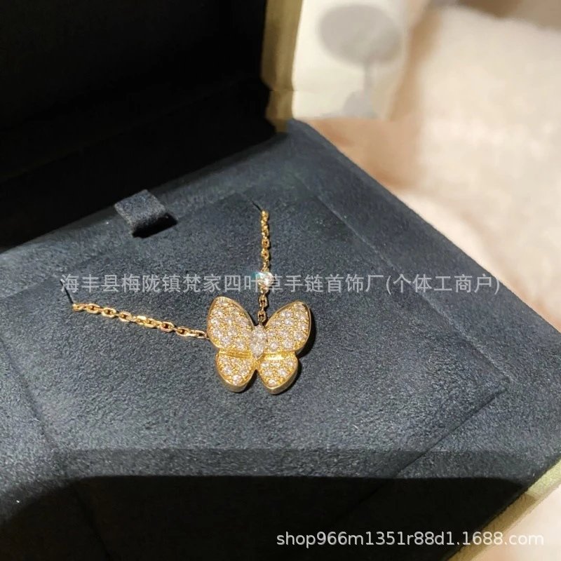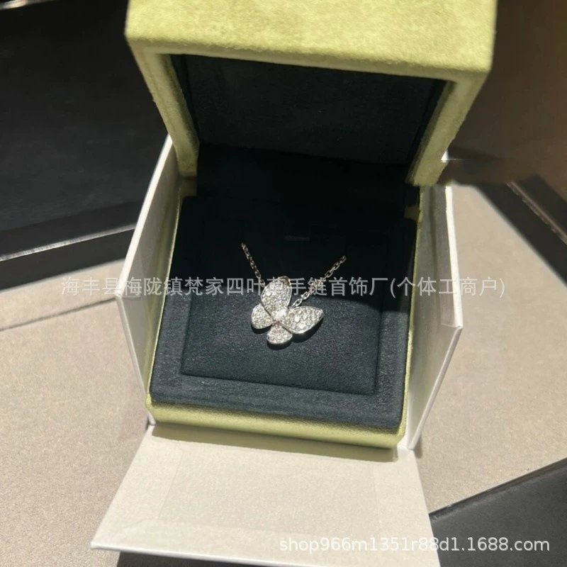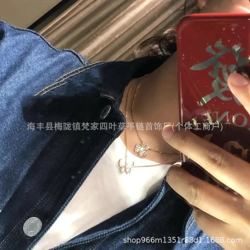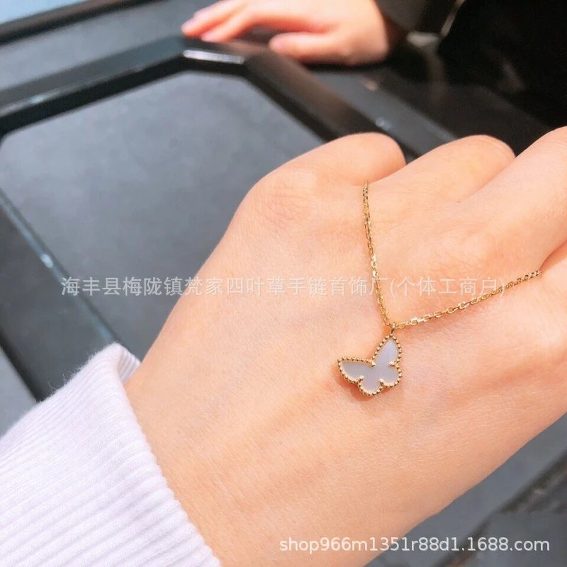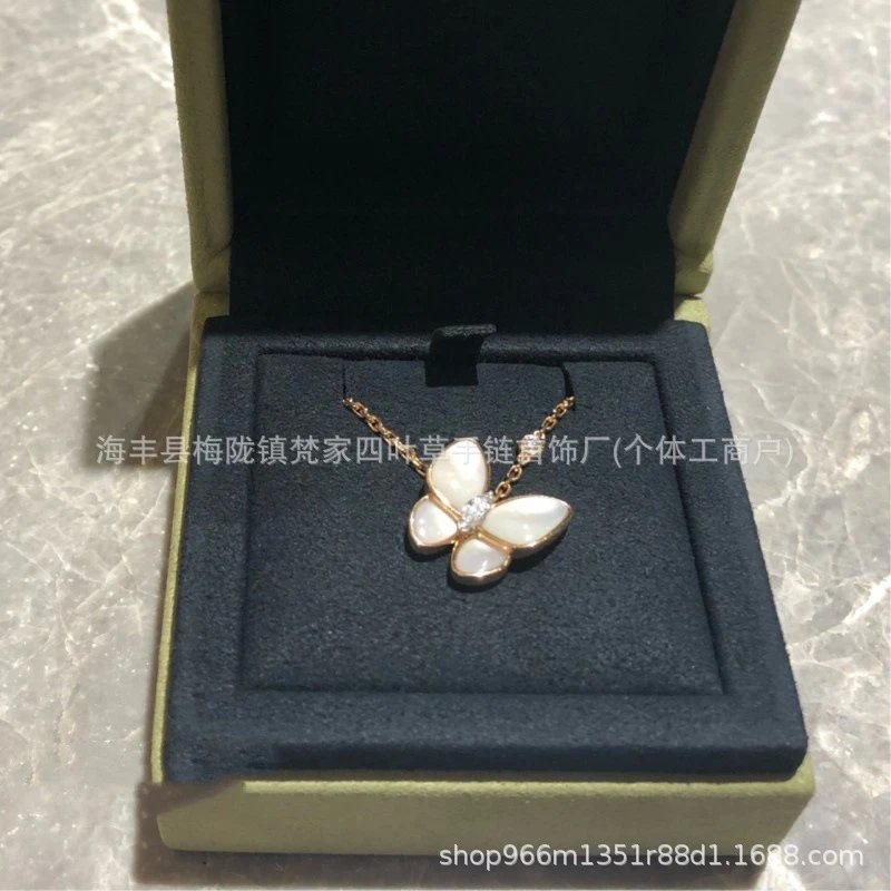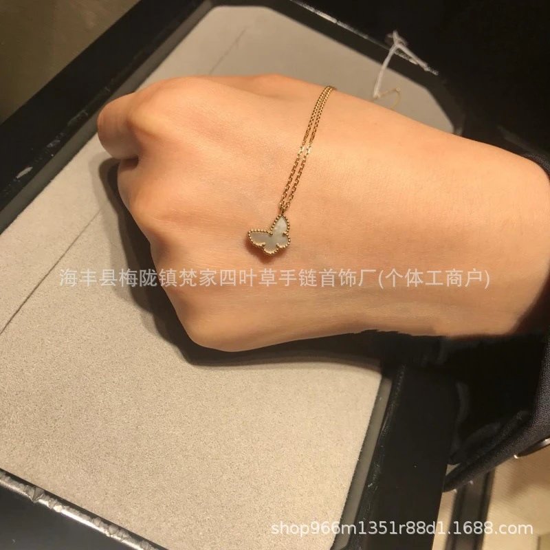 梵家镀18k金白贝母蝴蝶三叶幸运草吊坠女满钻花瓣锁骨链春季新款