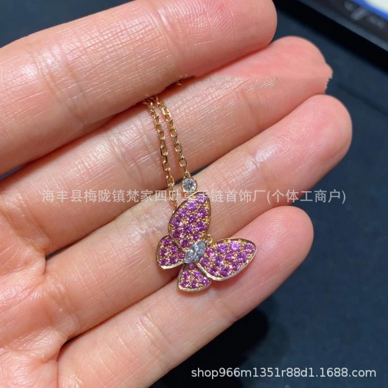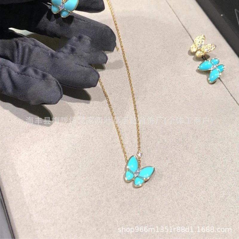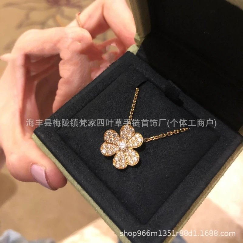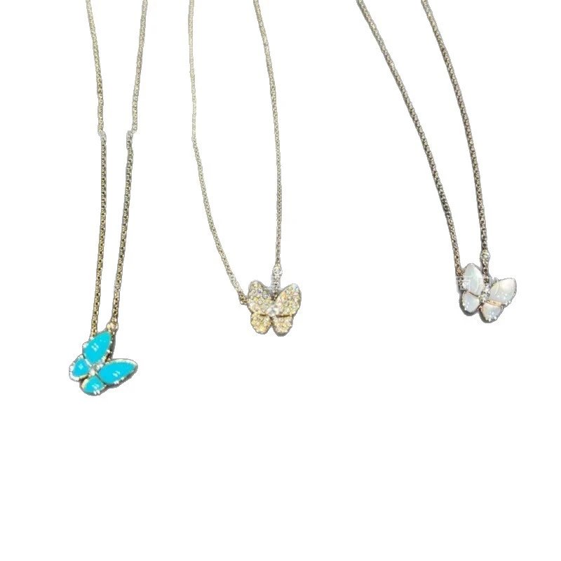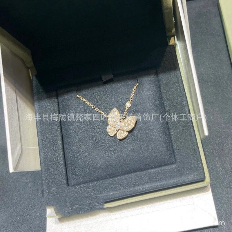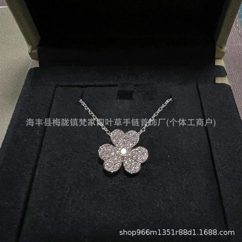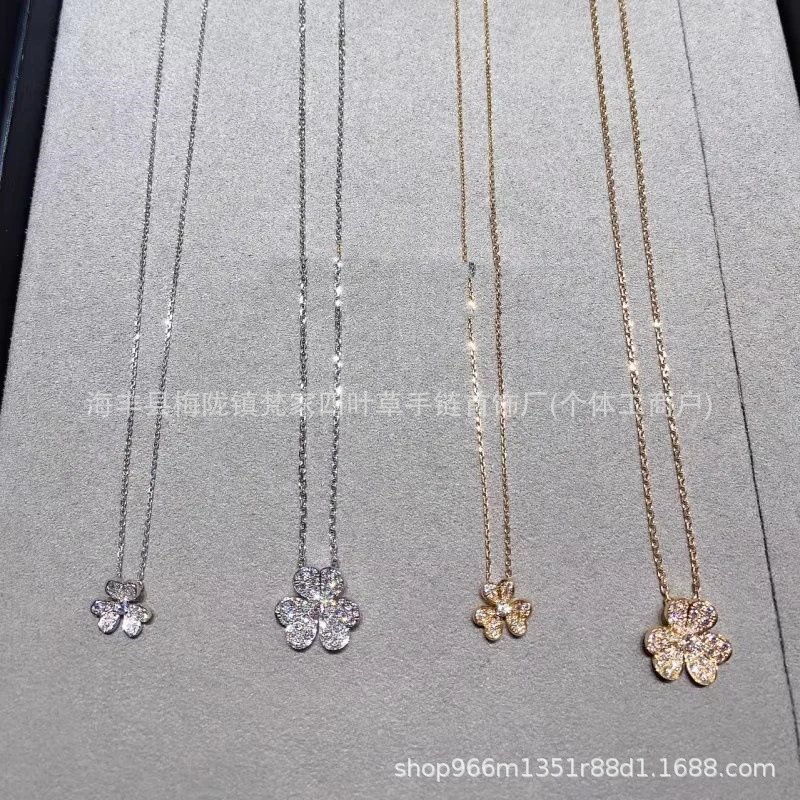 梵家镀18k金白贝母蝴蝶三叶幸运草吊坠女满钻花瓣锁骨链春季新款