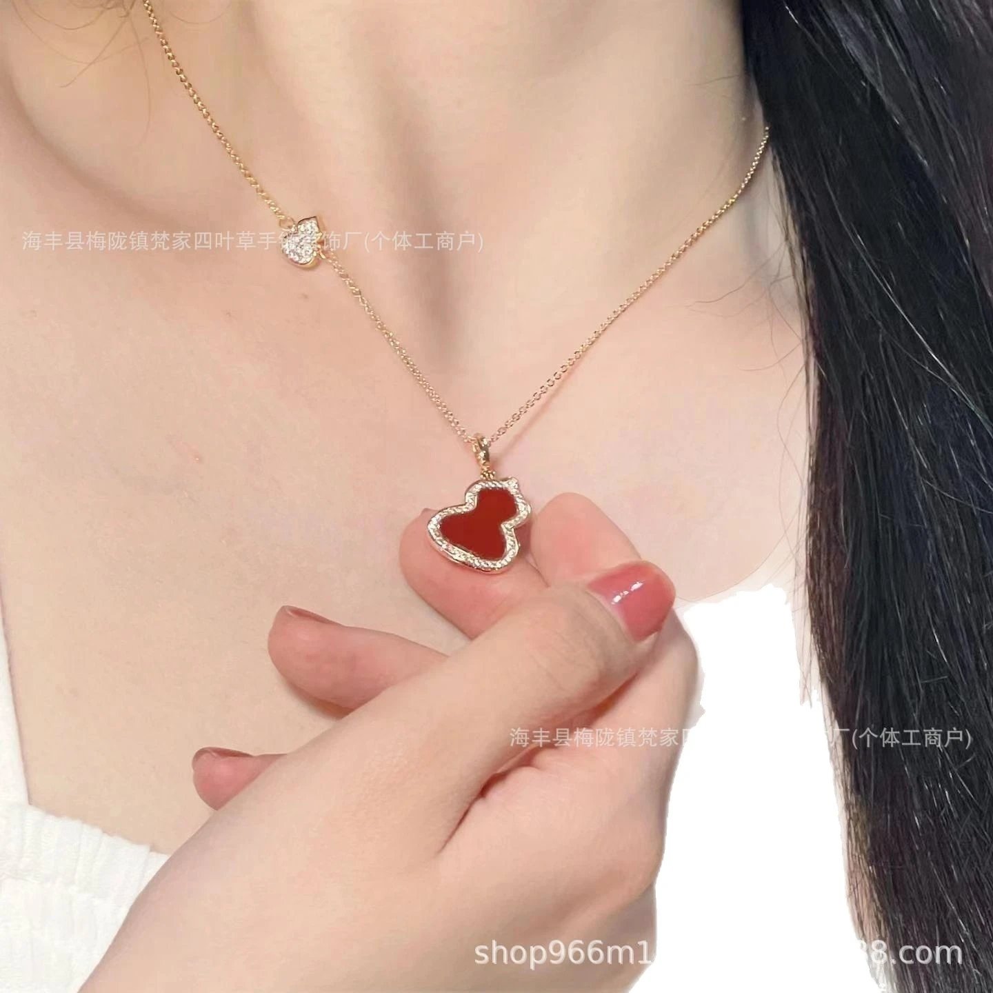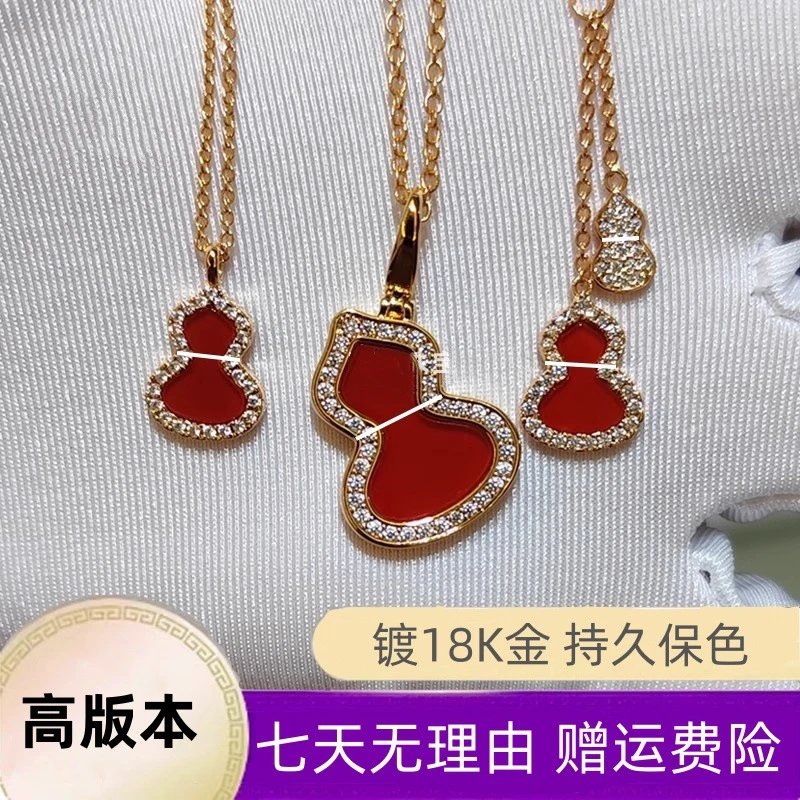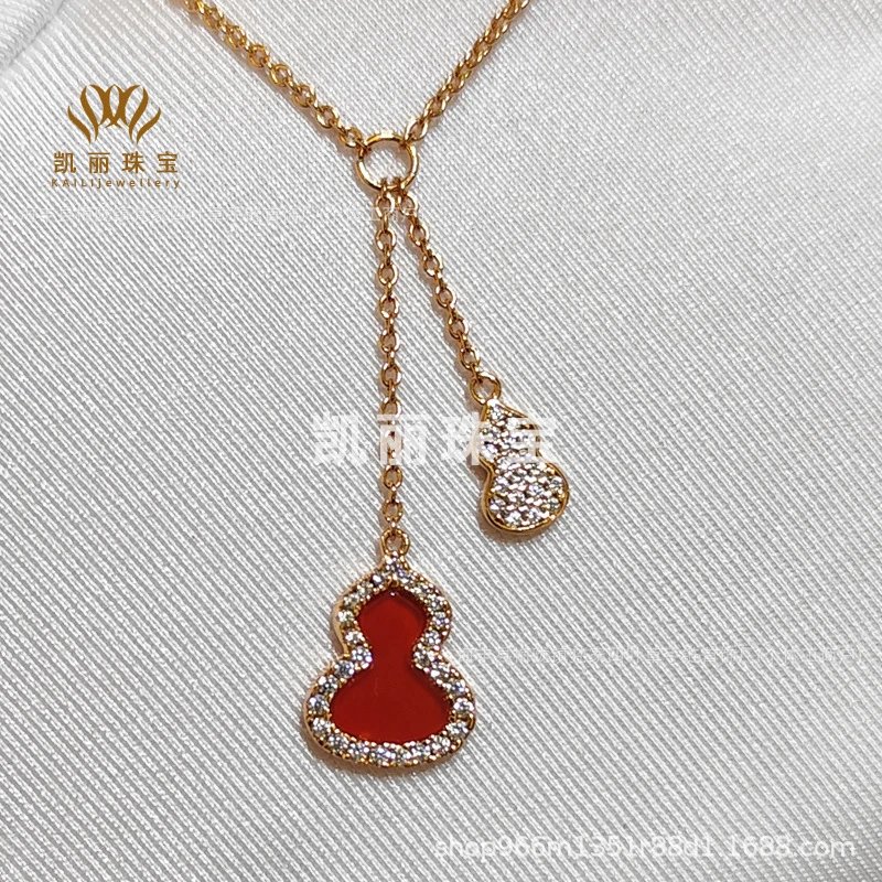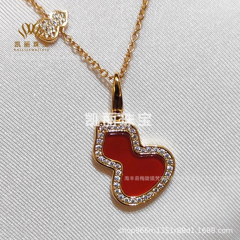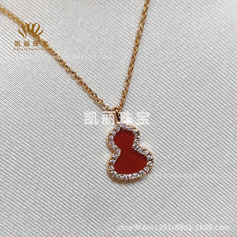 麒麟葫芦项链女镀18k玫瑰金招财福禄红玛瑙白贝母绿玛瑙吊坠锁骨