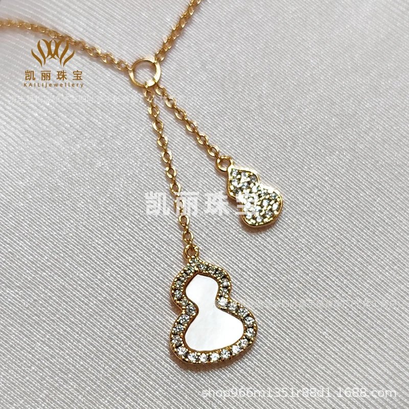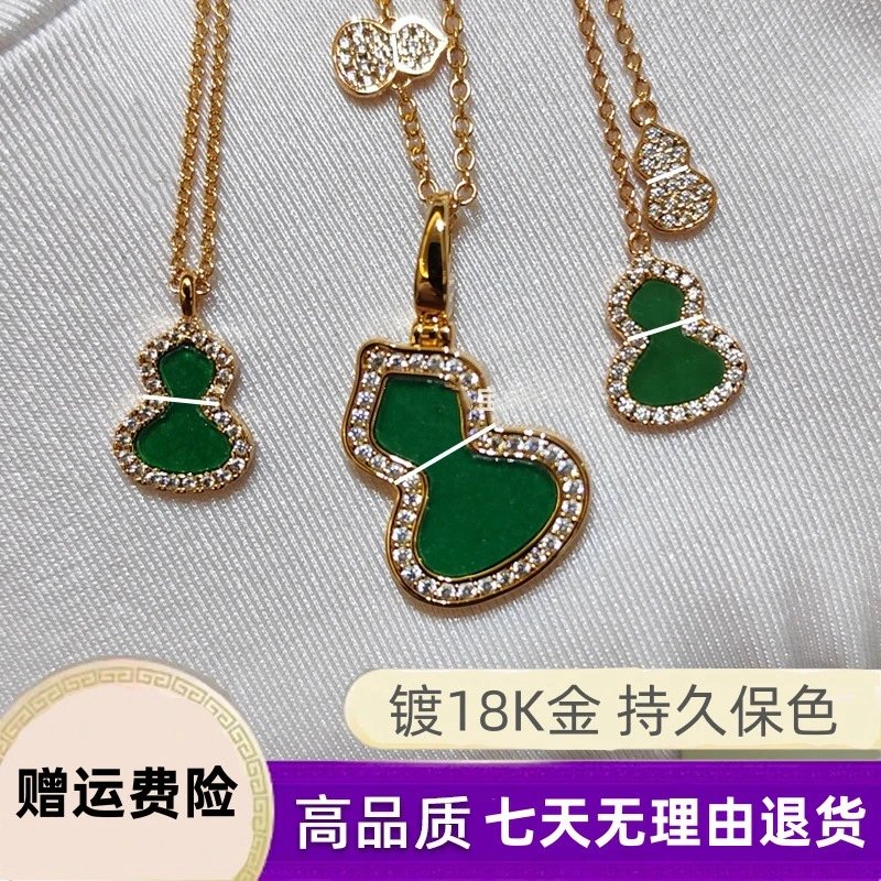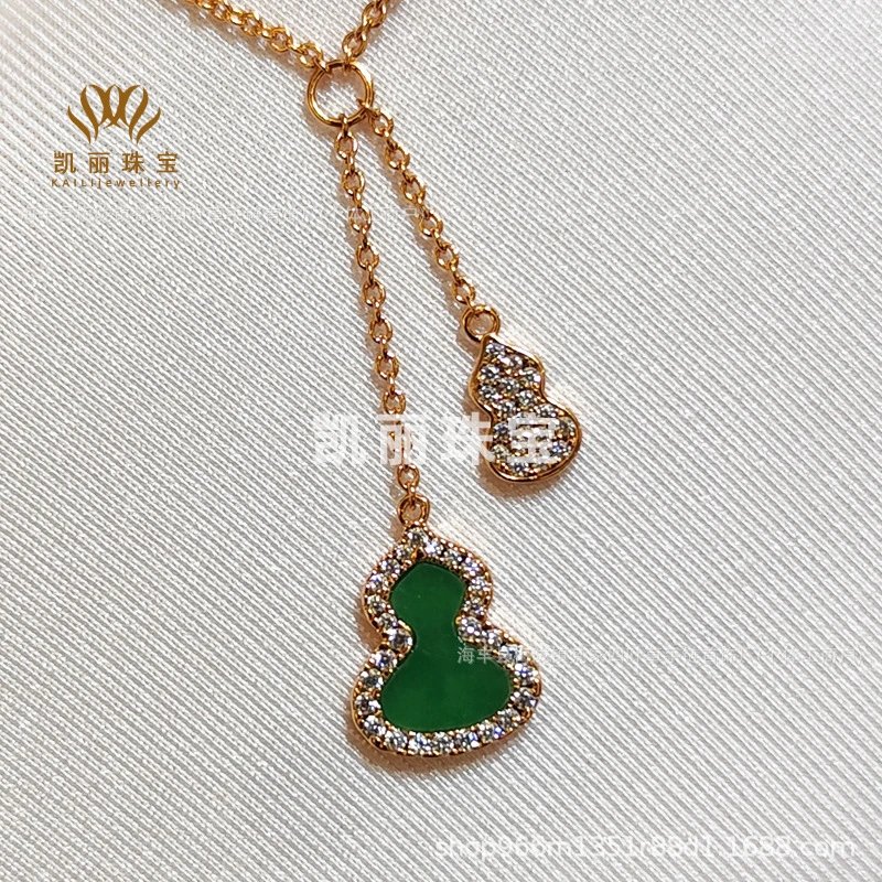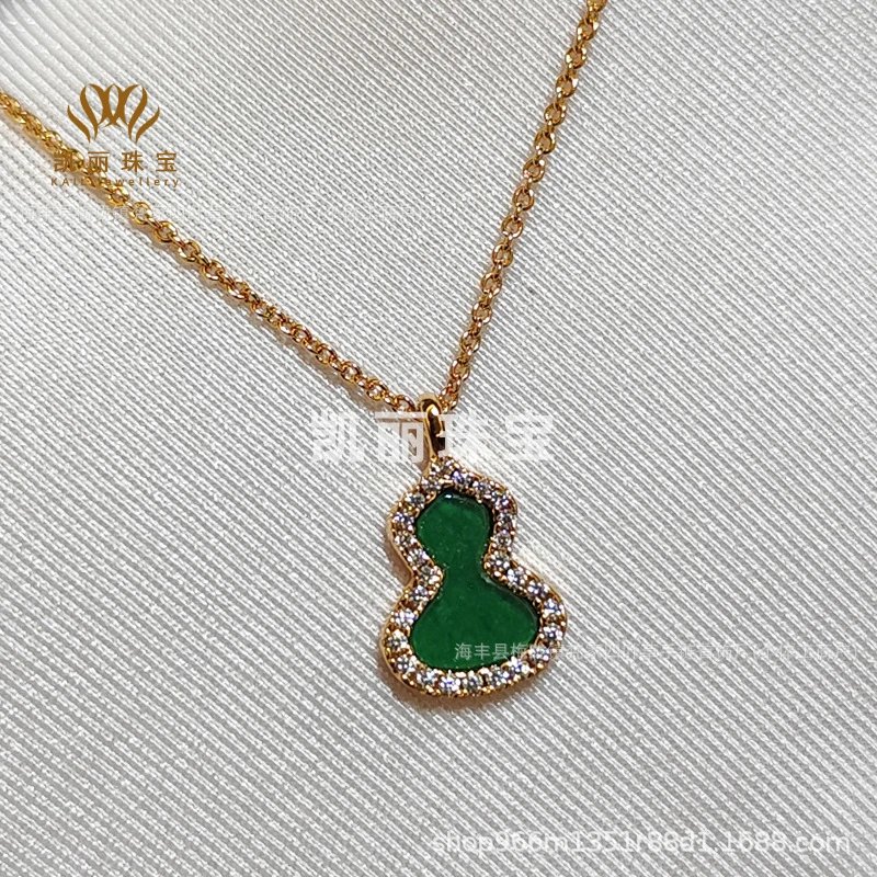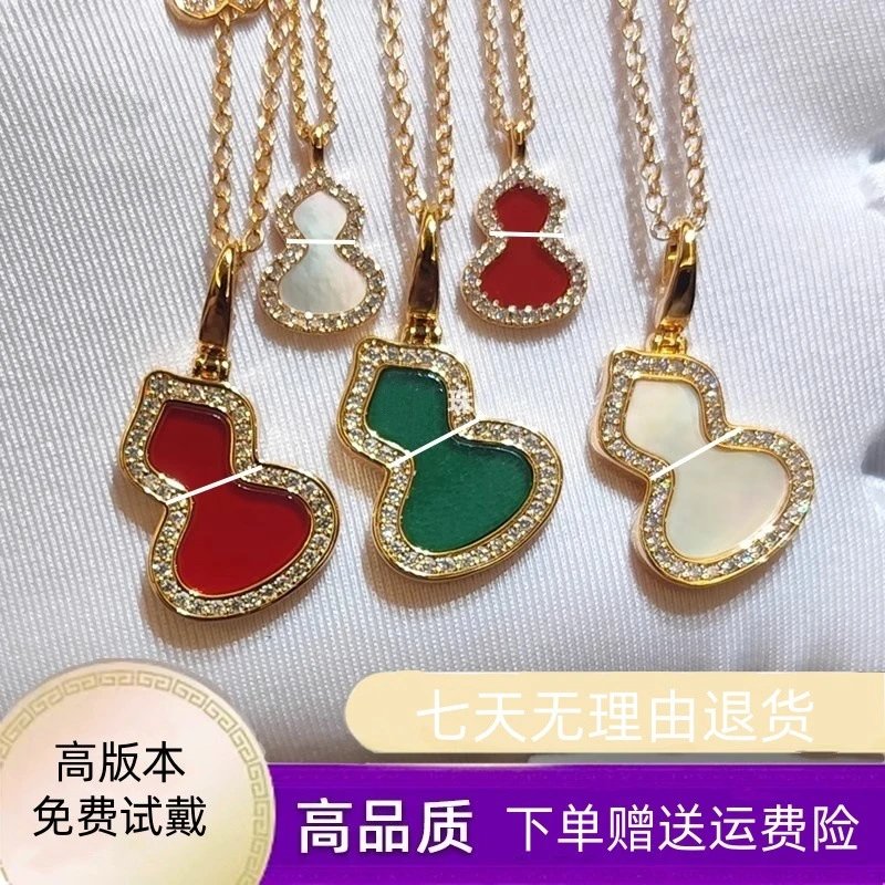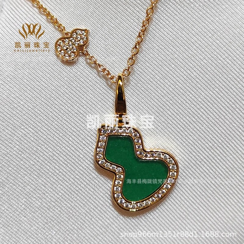 麒麟葫芦项链女镀18k玫瑰金招财福禄红玛瑙白贝母绿玛瑙吊坠锁骨
