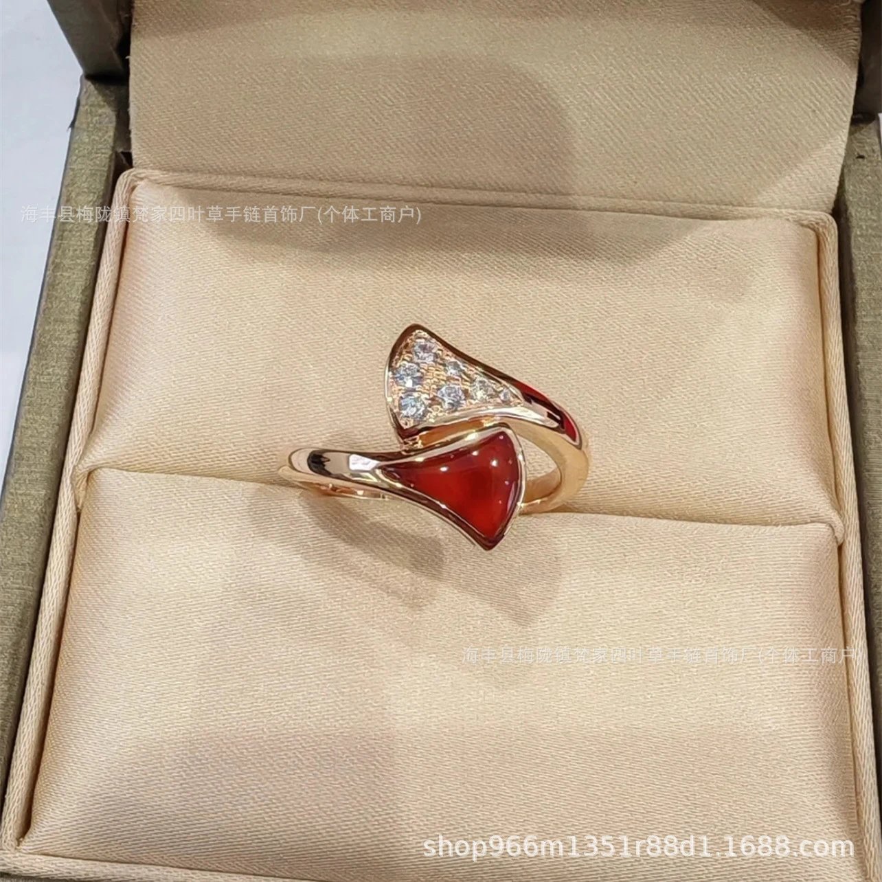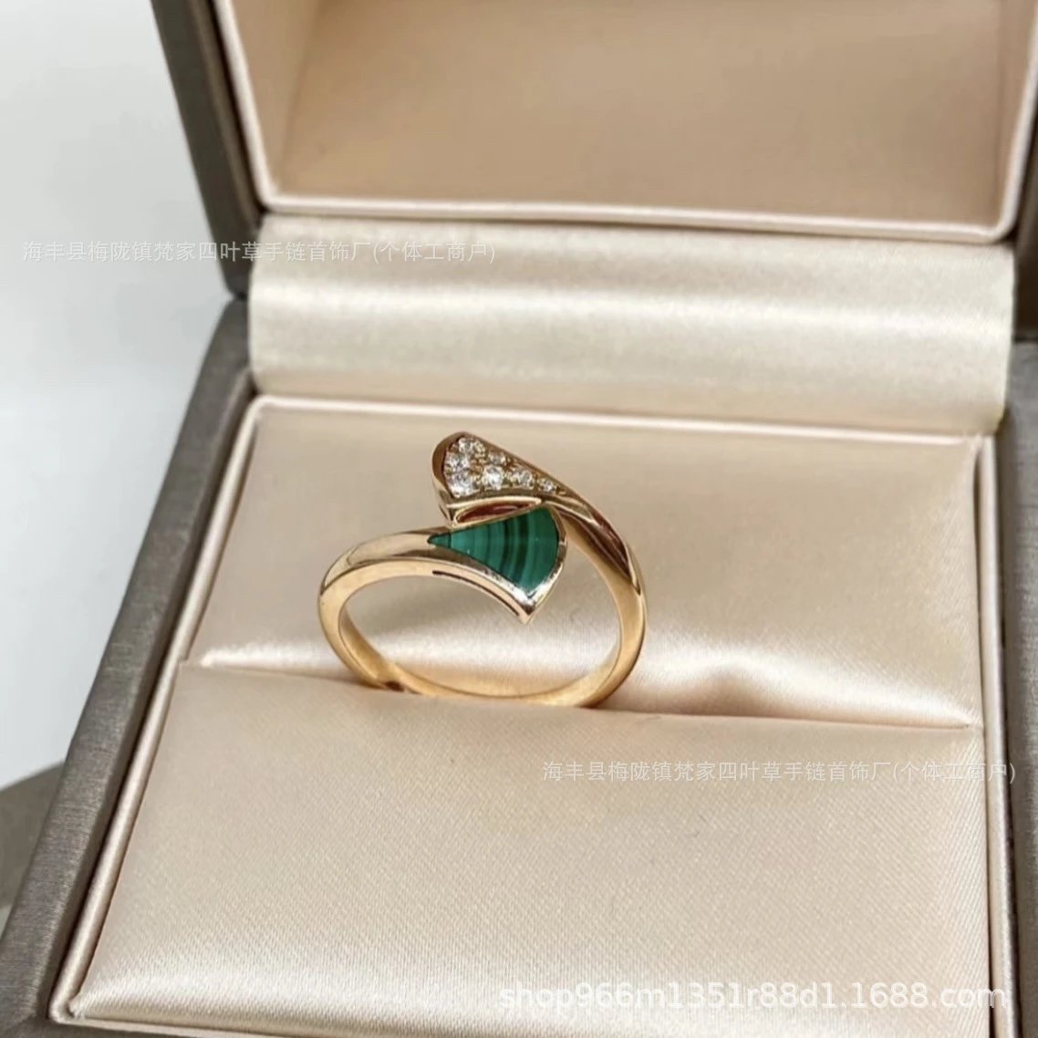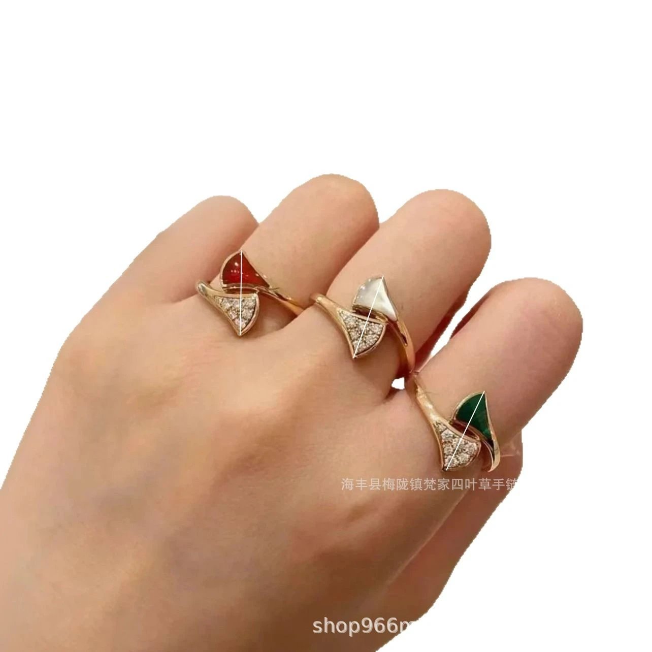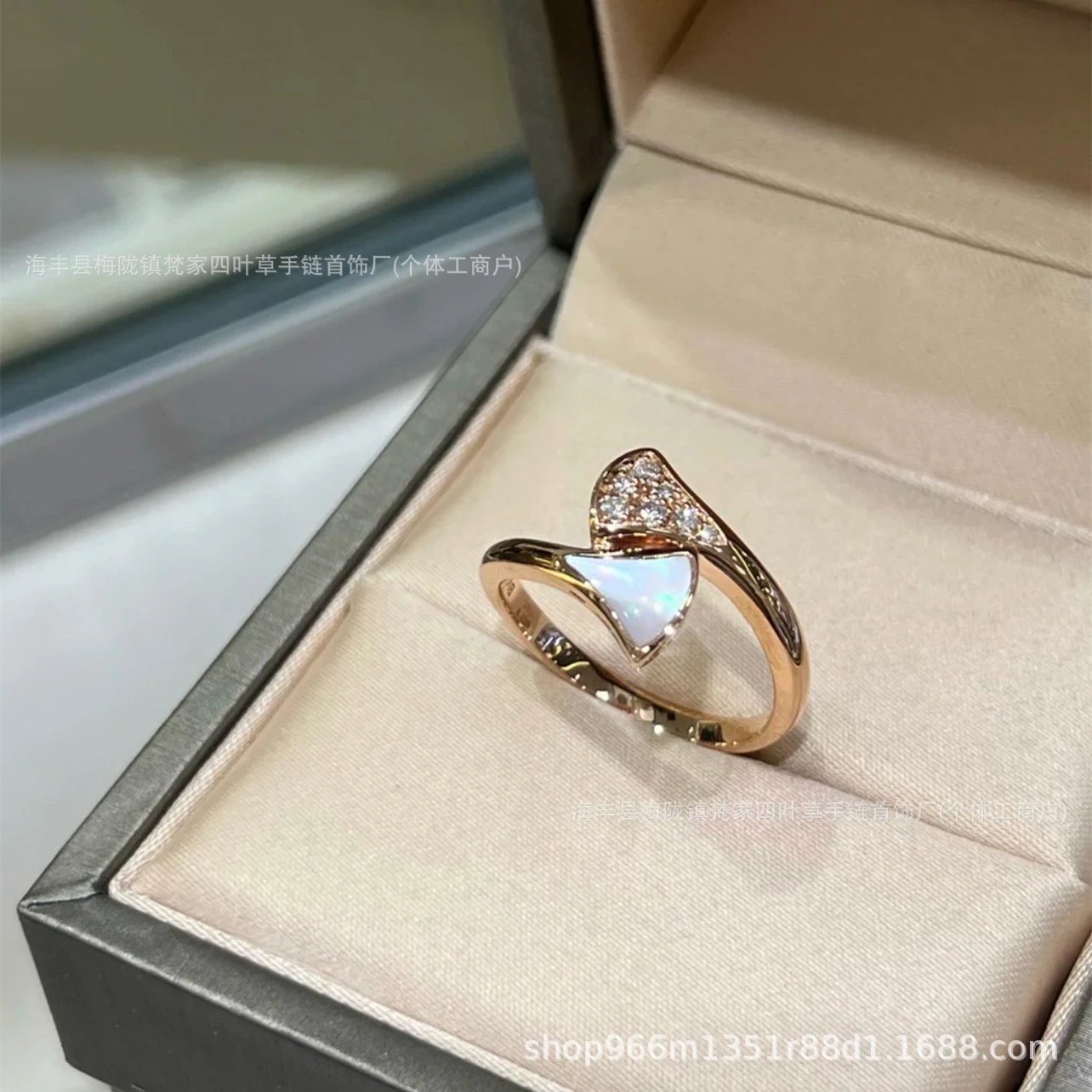 v金宝家蛇骨戒指女白贝母设计18K玫瑰金高级感镶钻轻奢