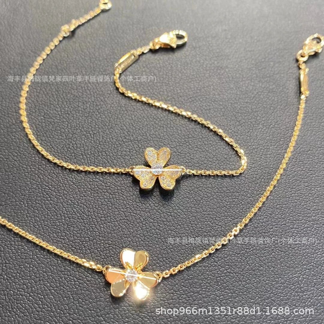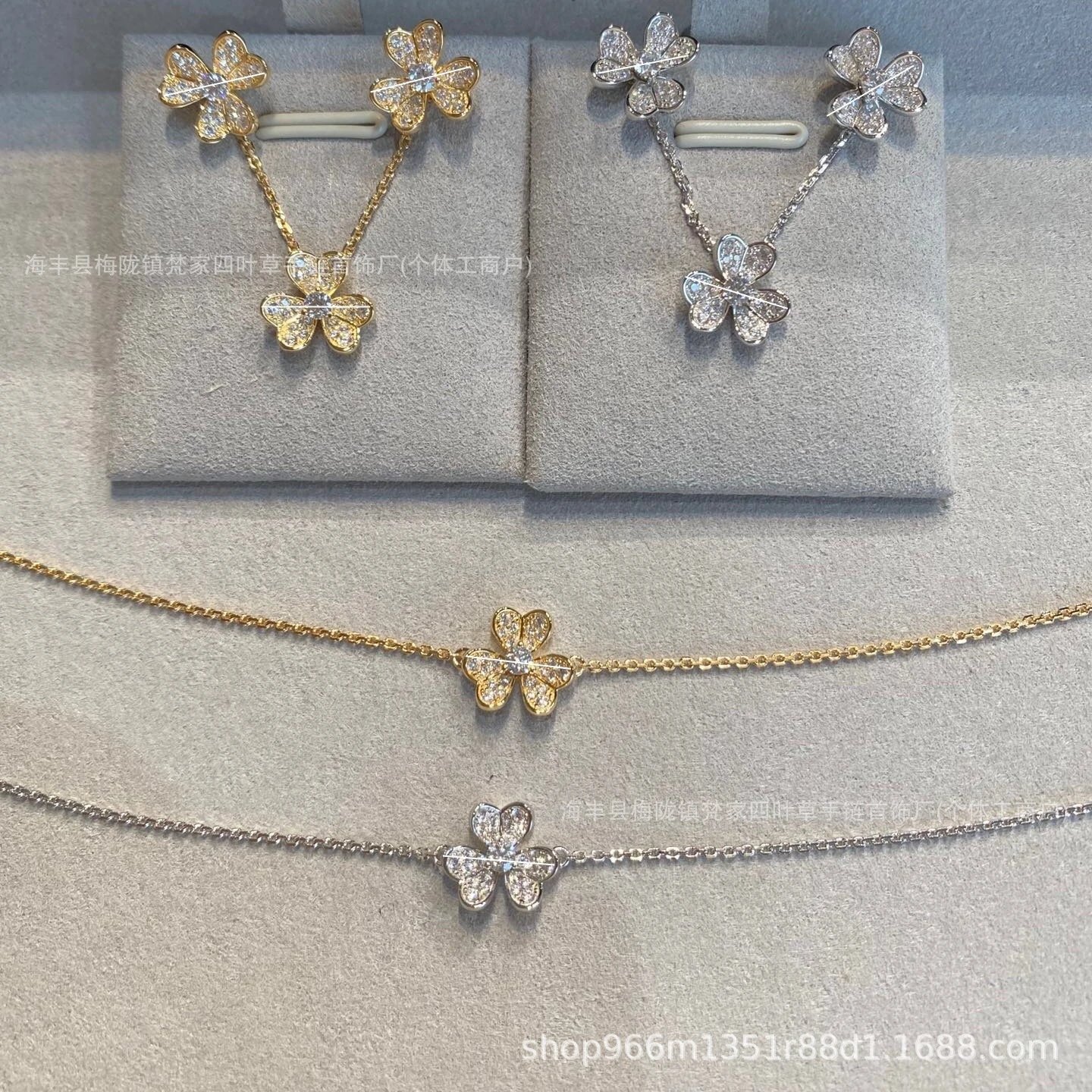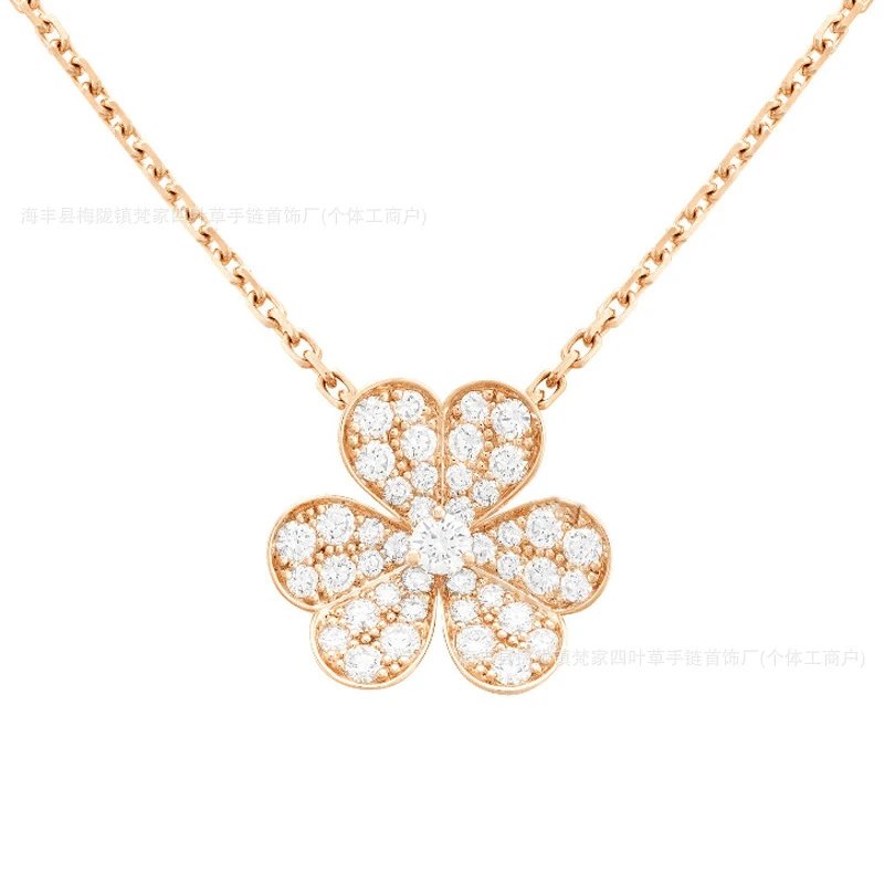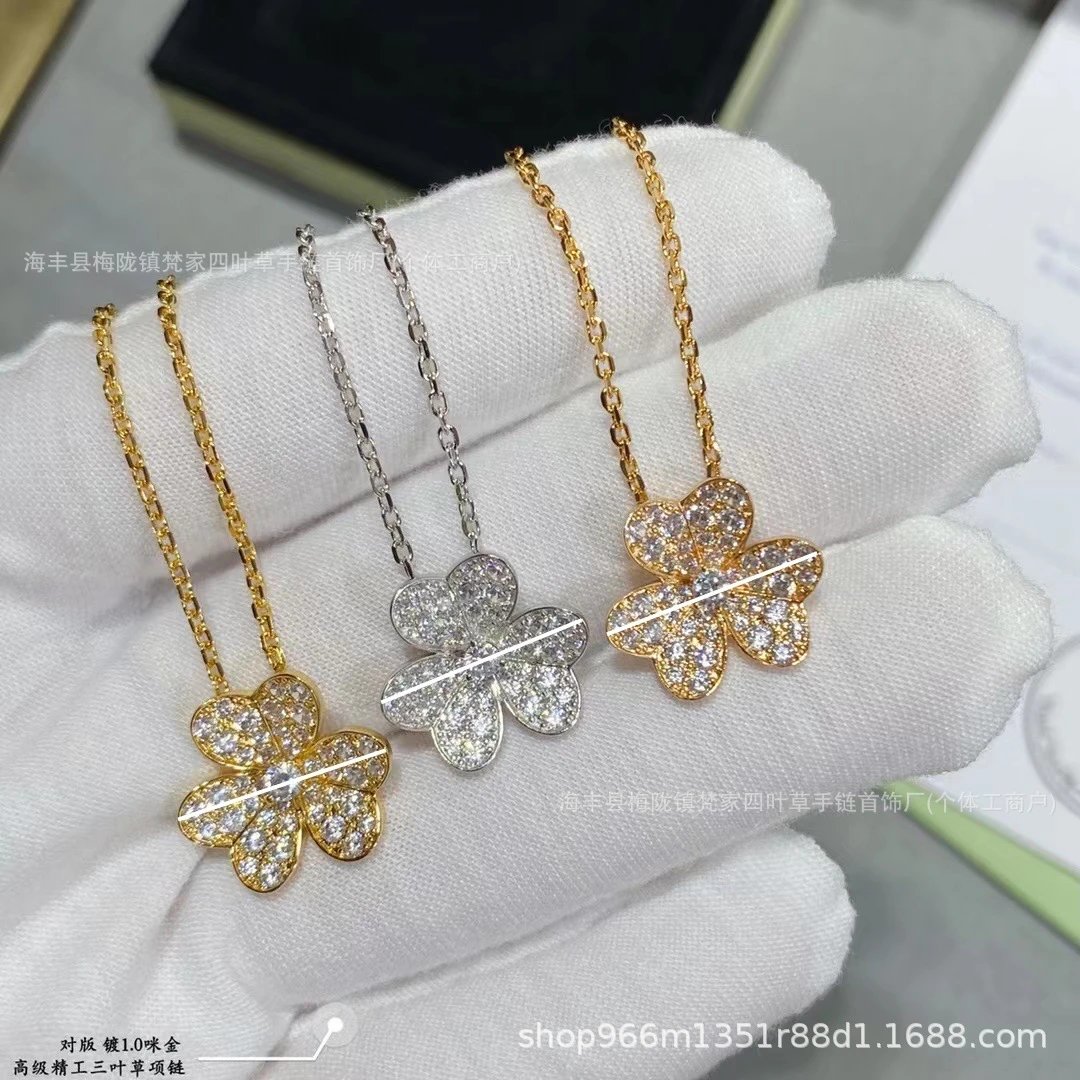 梵家三叶草项链女满钻花瓣幸运草镀18k玫瑰金锁骨链高级网红夏季