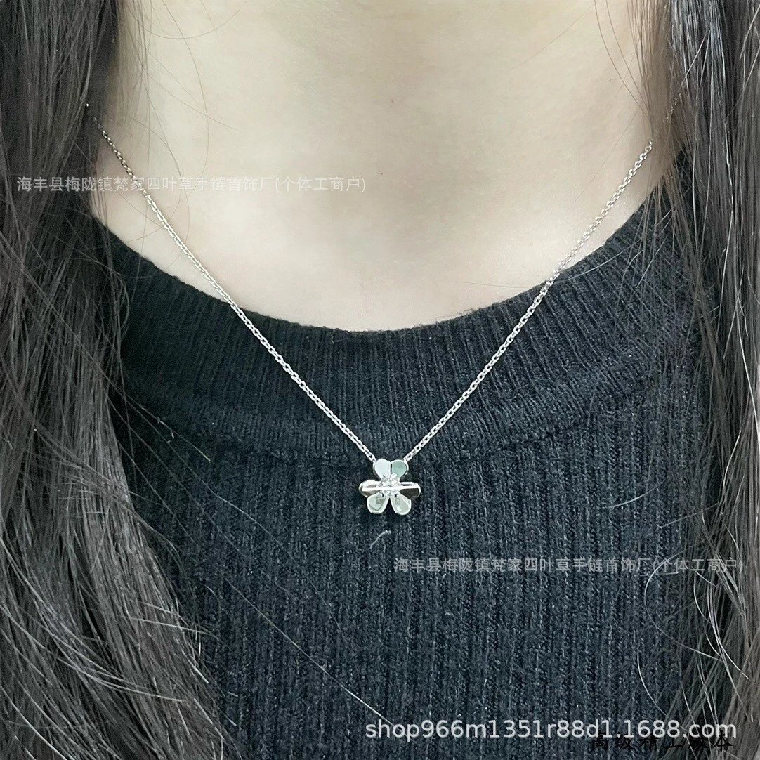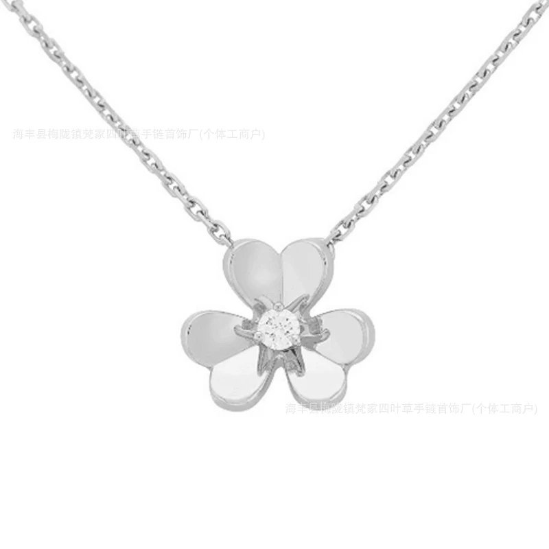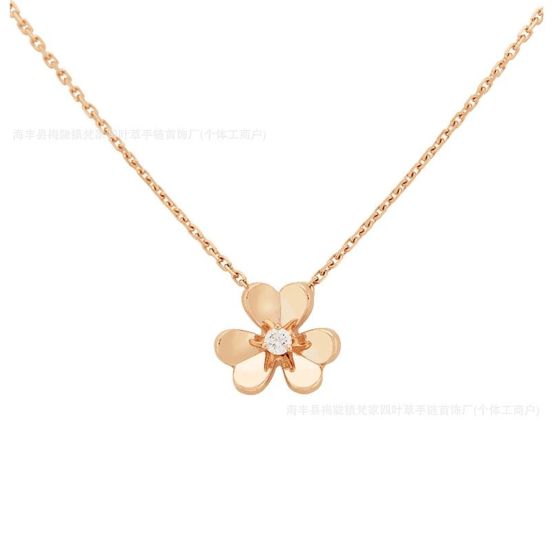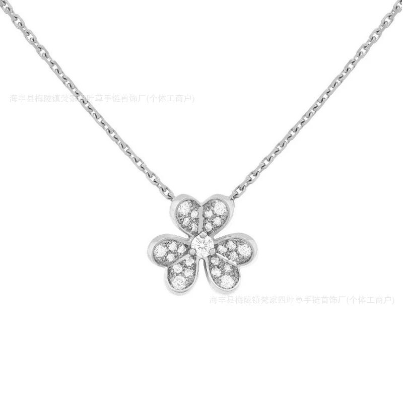 梵家三叶草项链女满钻花瓣幸运草镀18k玫瑰金锁骨链高级网红夏季