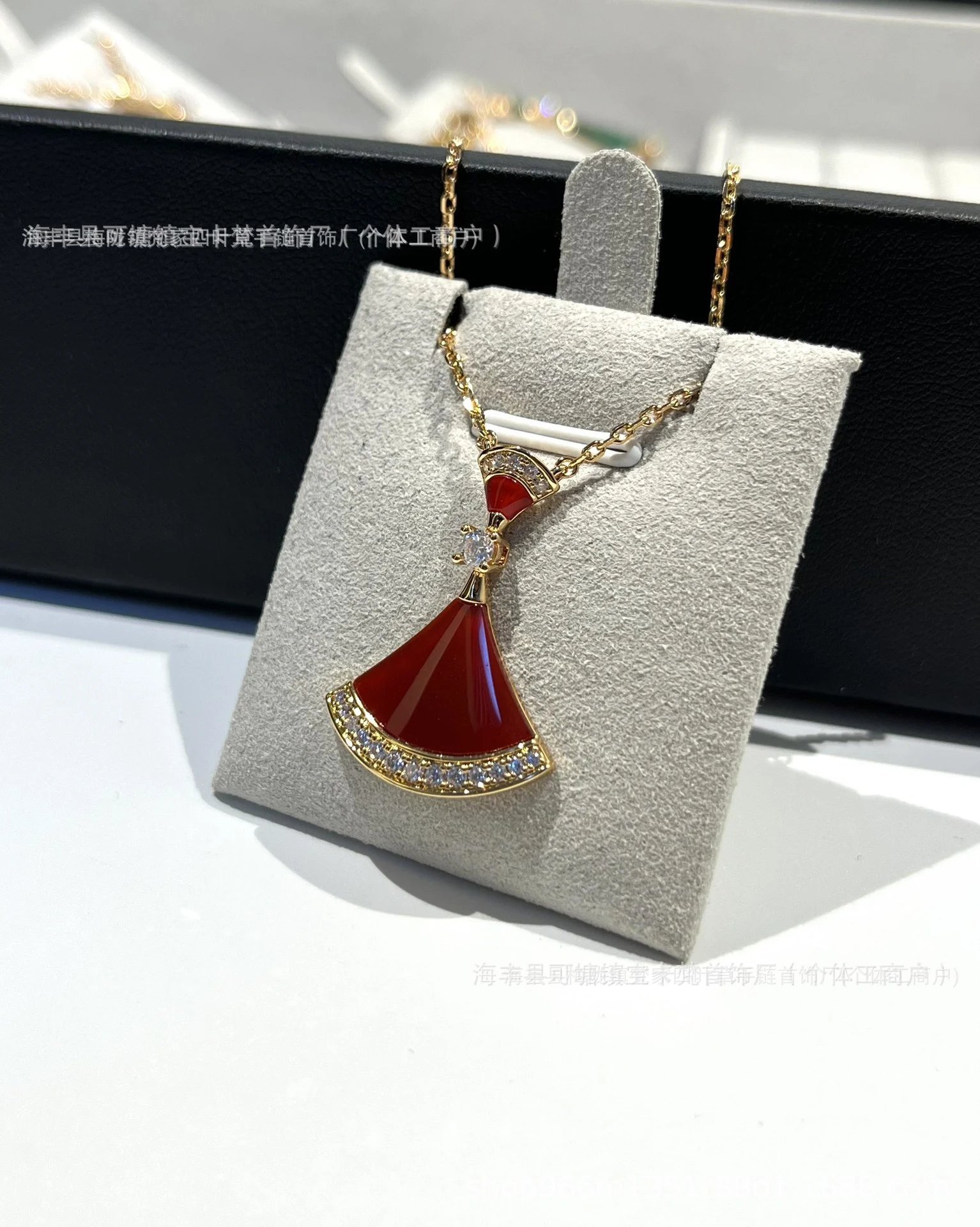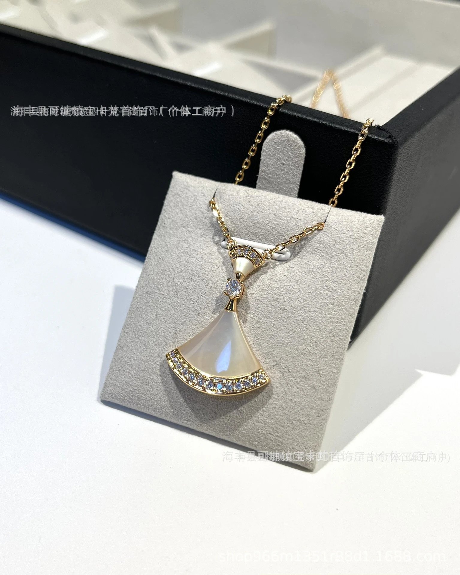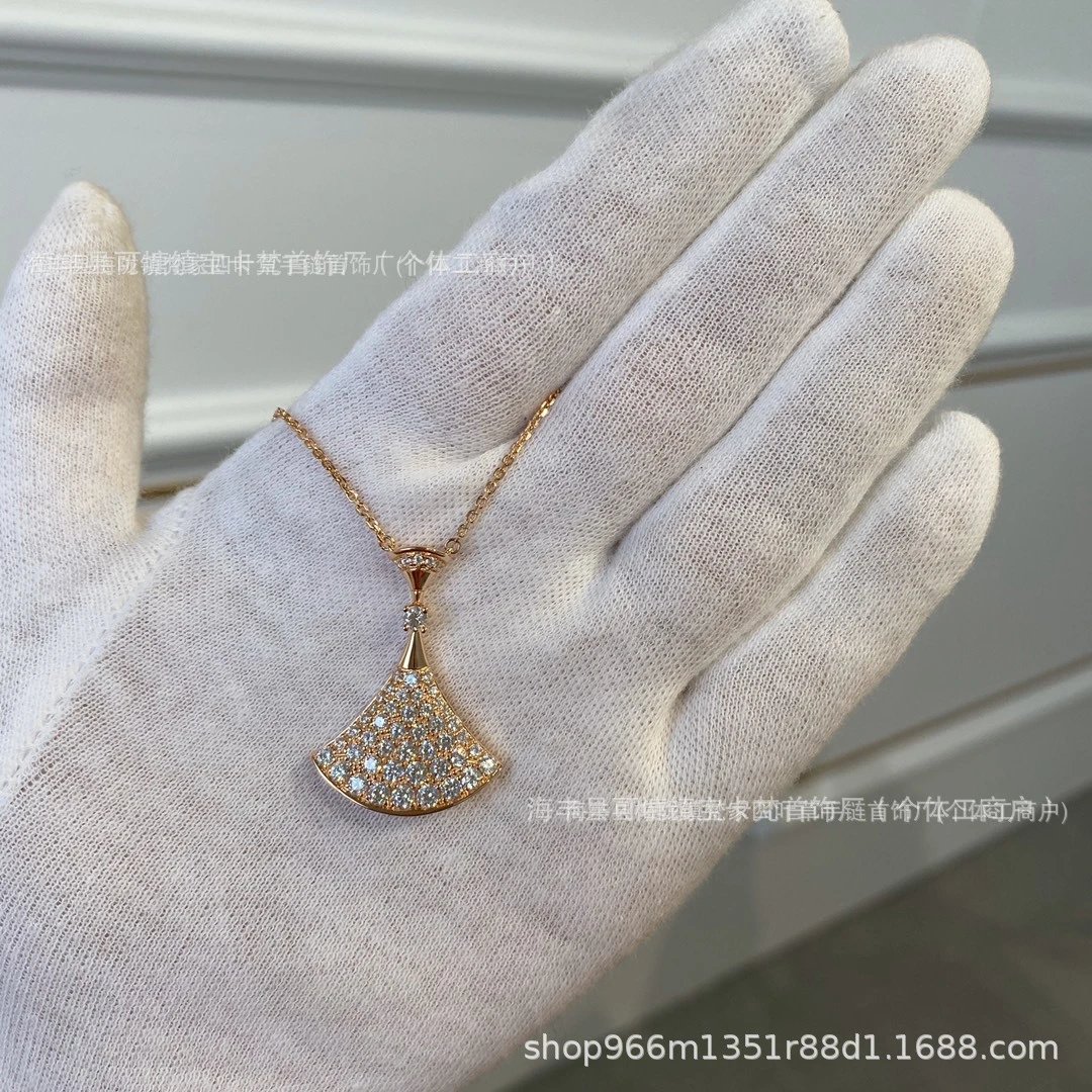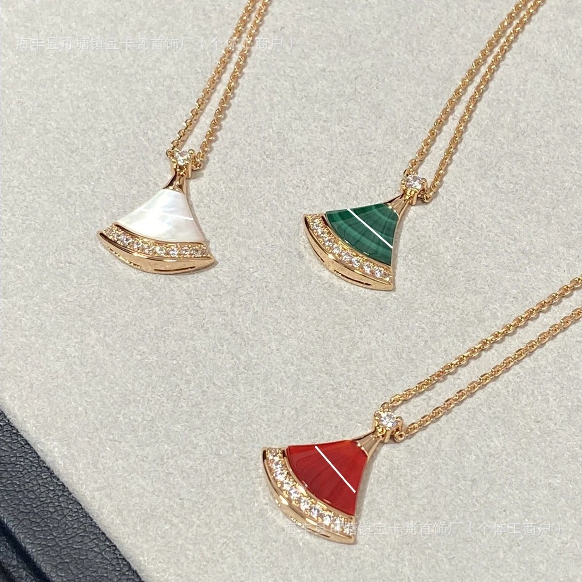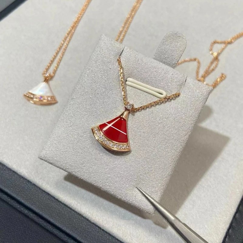 宝家镀18k金白贝母红玛瑙满钻扇形锁骨链礼物满钻扇形锁骨链裙子