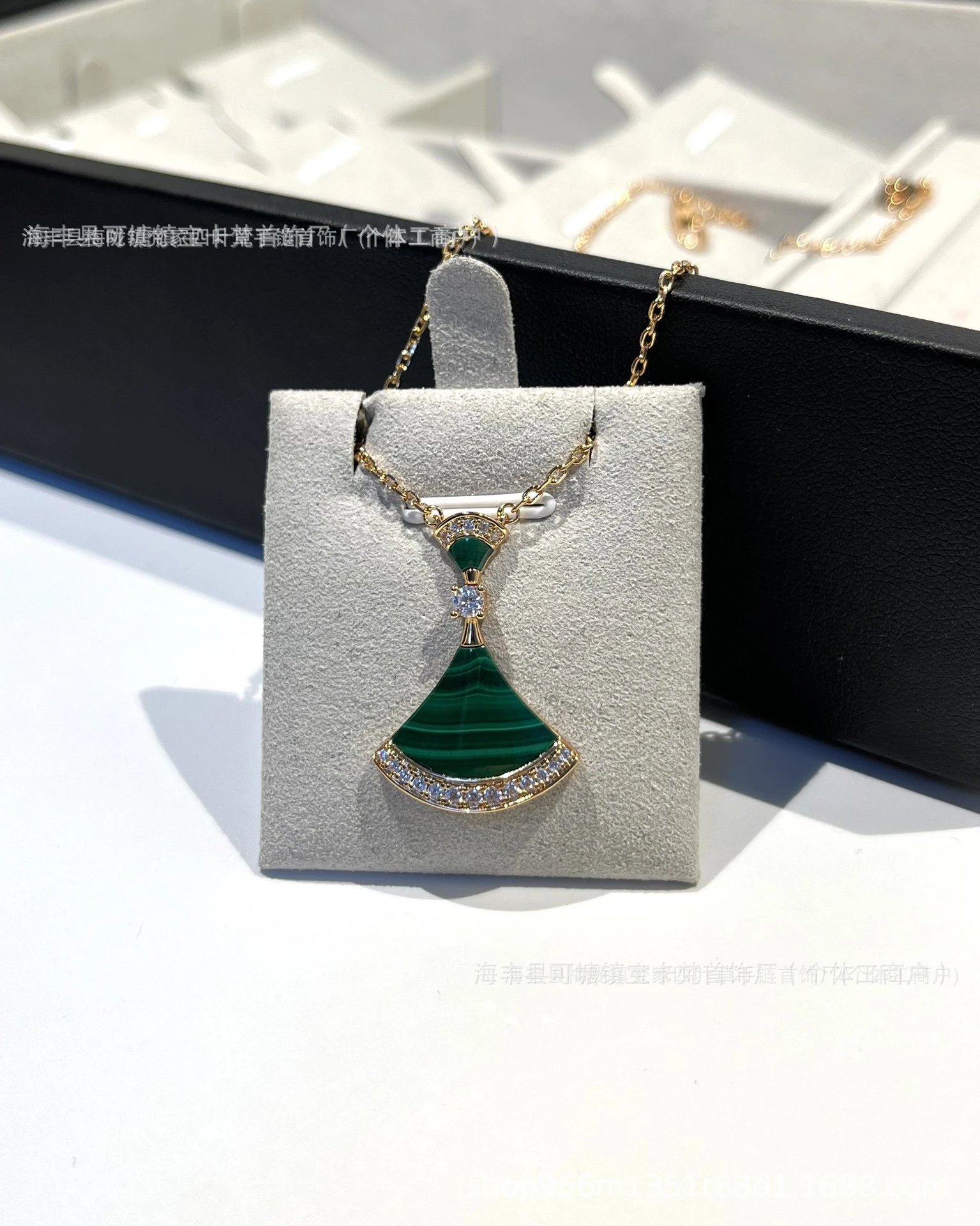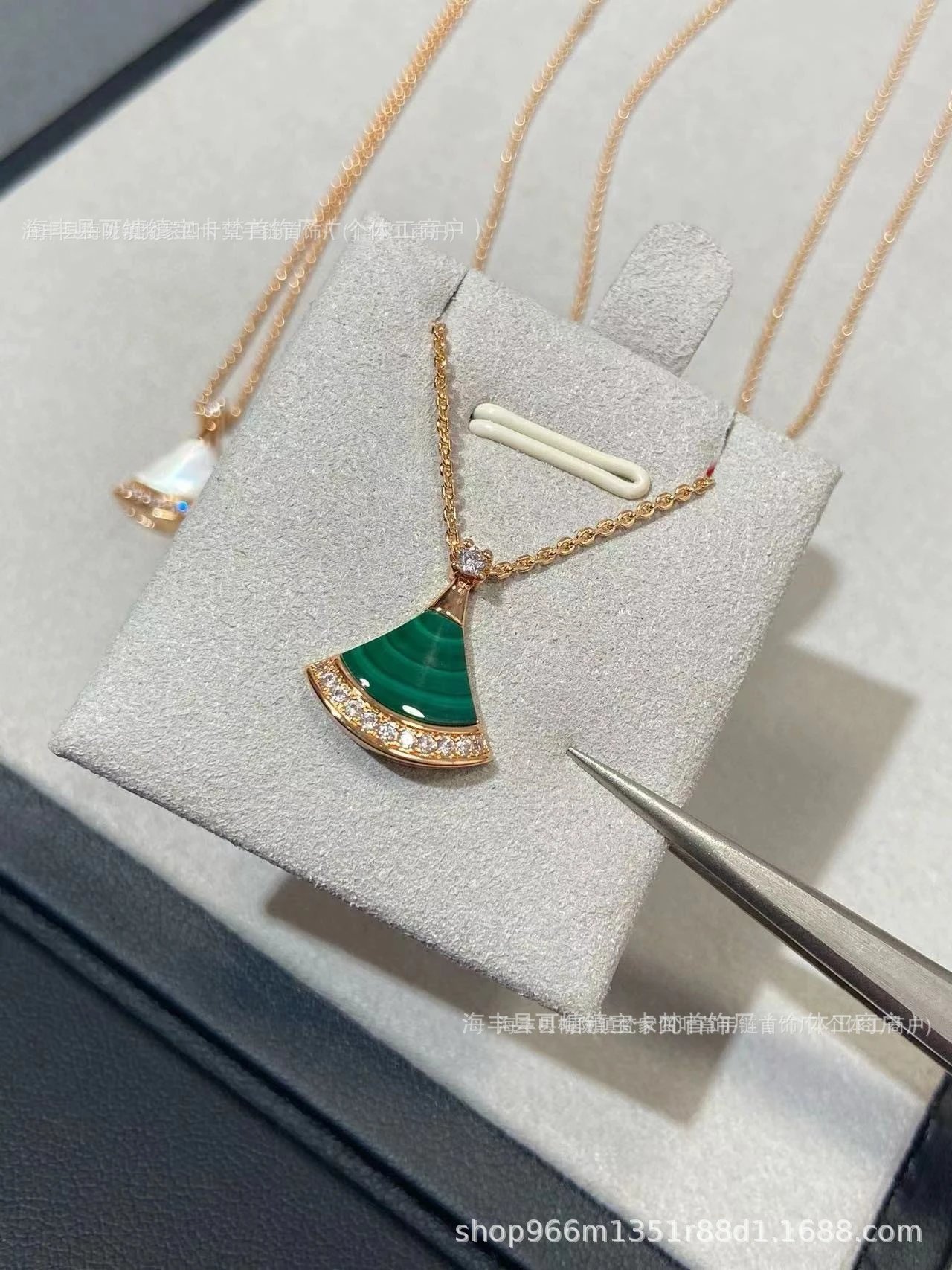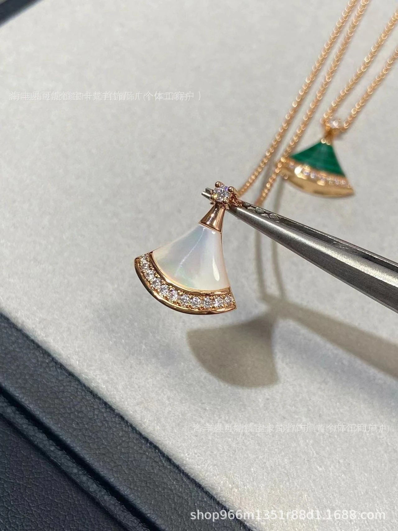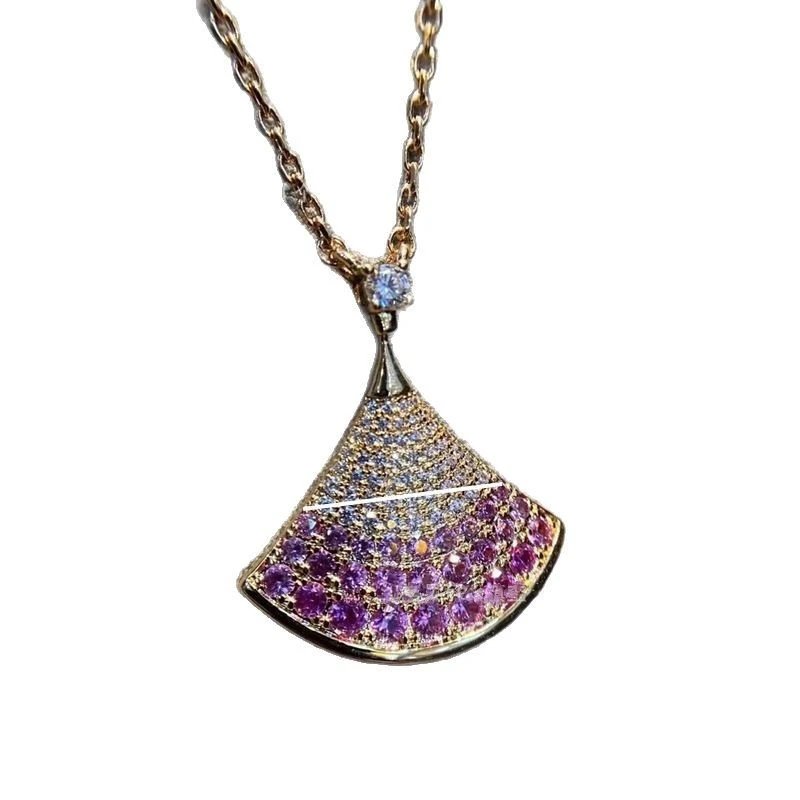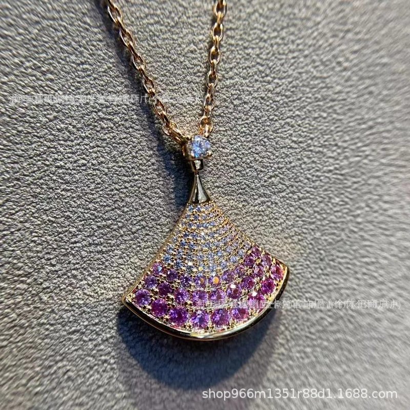 宝家镀18k金白贝母红玛瑙满钻扇形锁骨链礼物满钻扇形锁骨链裙子