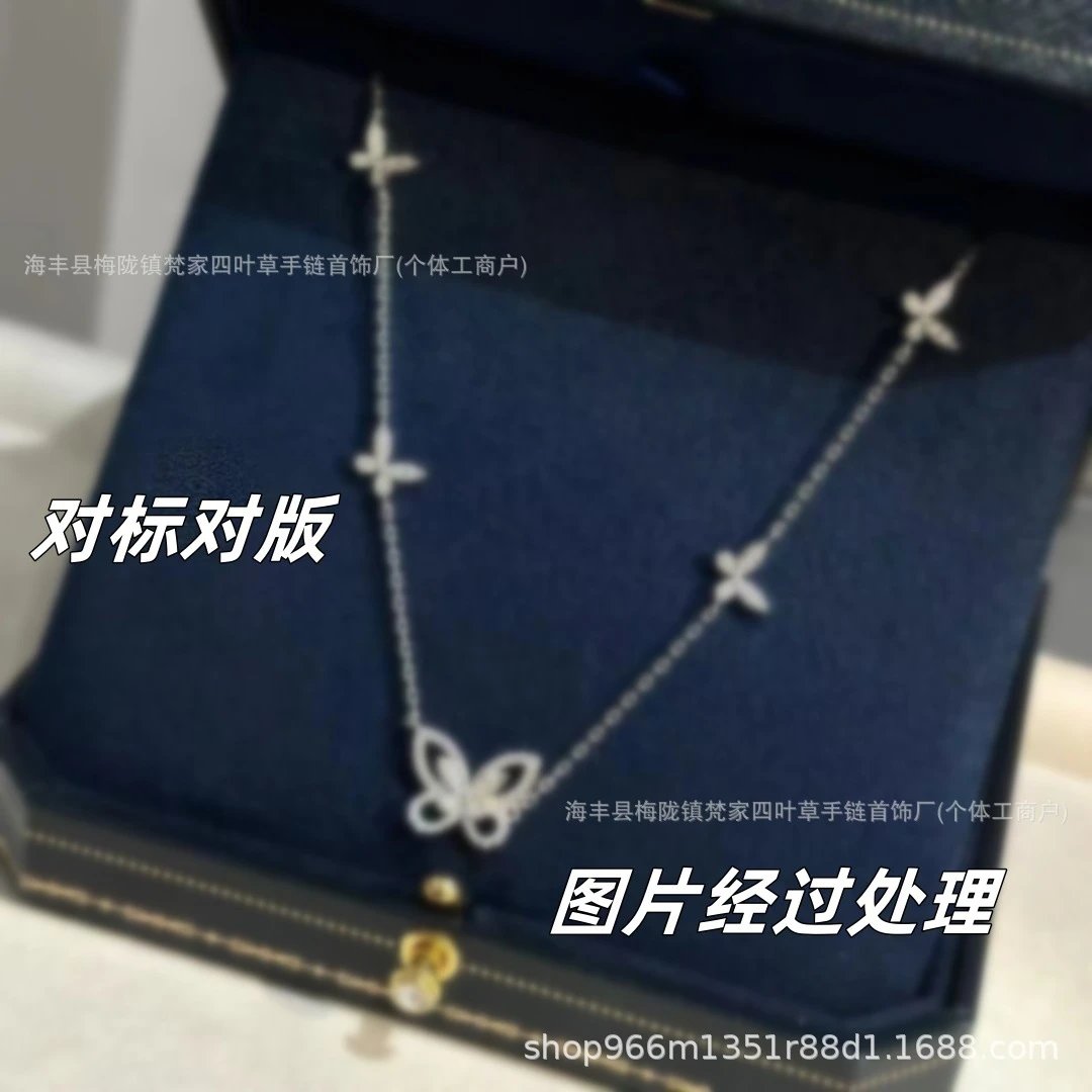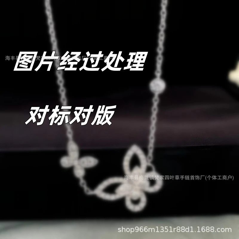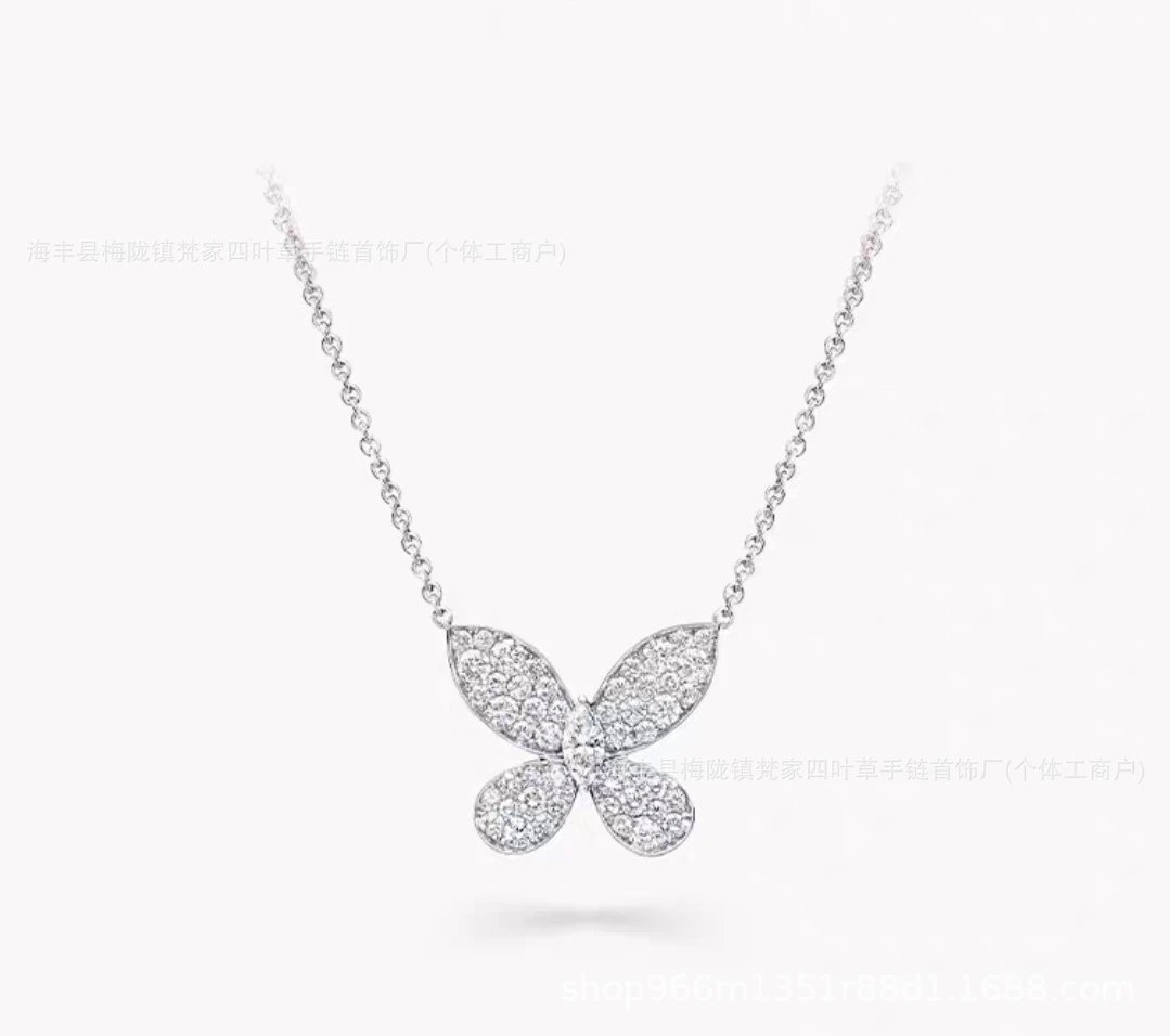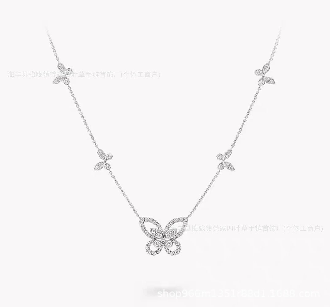 格家轻奢幻影蝴蝶满钻项链网红同款高级镀18k玫瑰金白贝母锁骨链