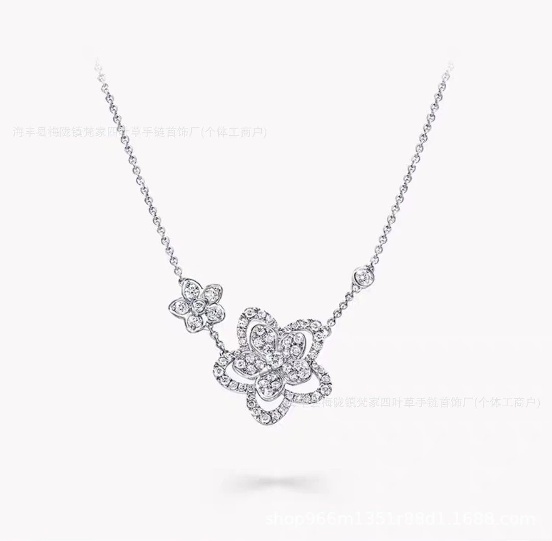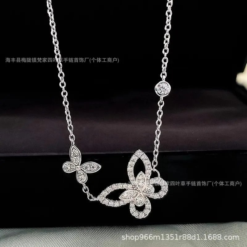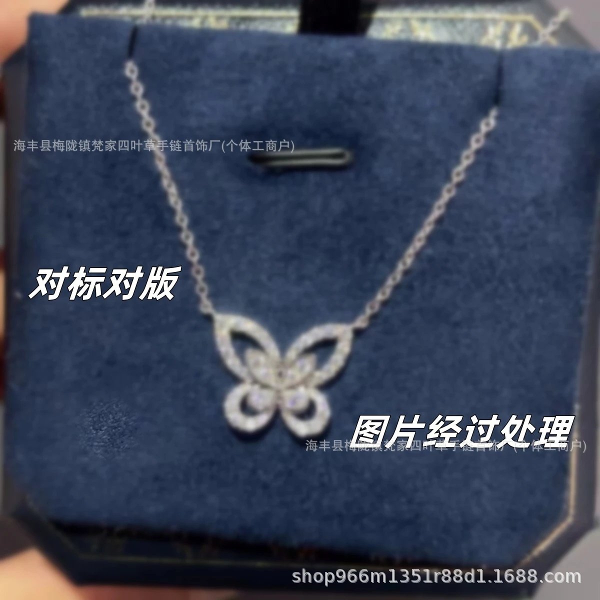 格家轻奢幻影蝴蝶满钻项链网红同款高级镀18k玫瑰金白贝母锁骨链