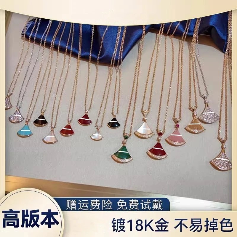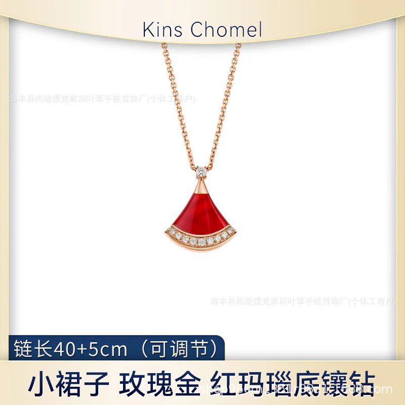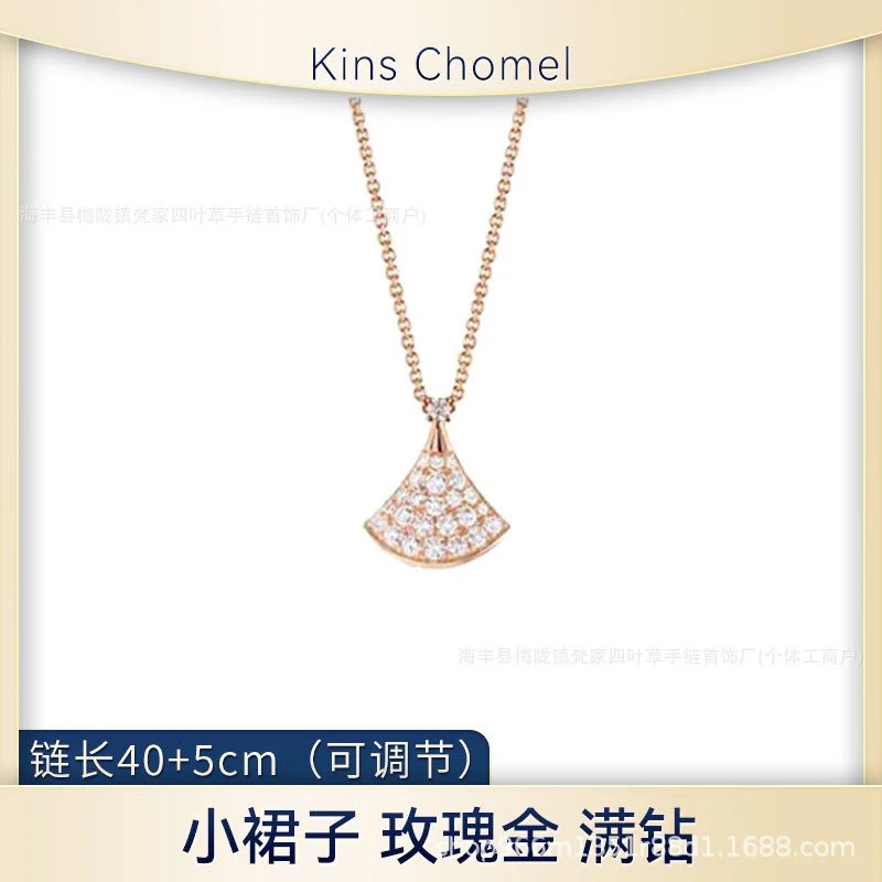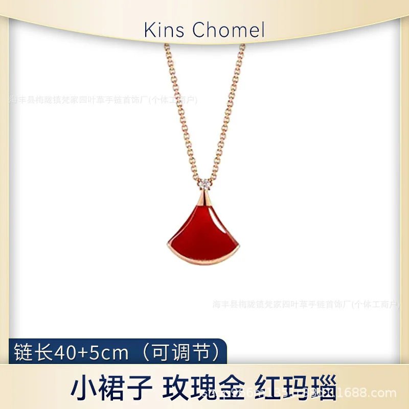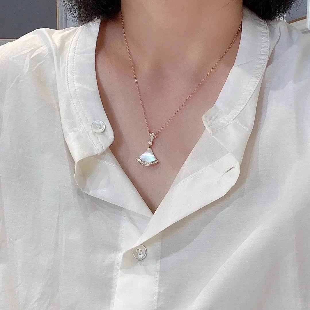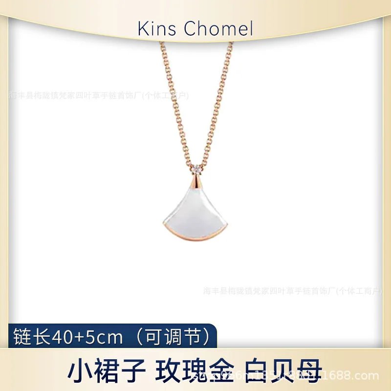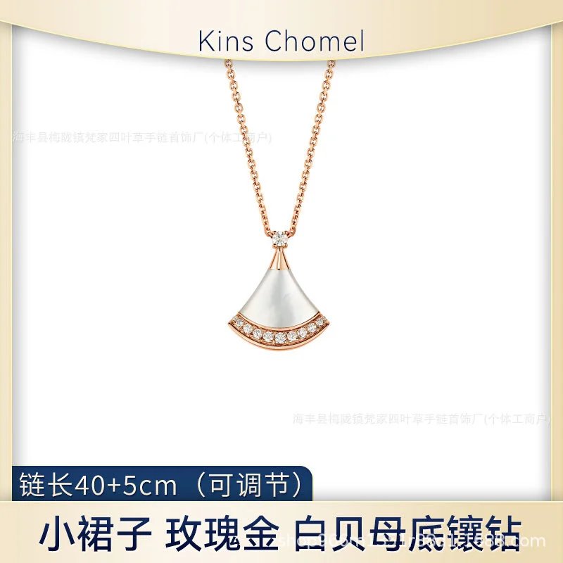 宝家小裙子项链女镀18k玫瑰金白贝母大扇形高级感锁骨链裙子项链
