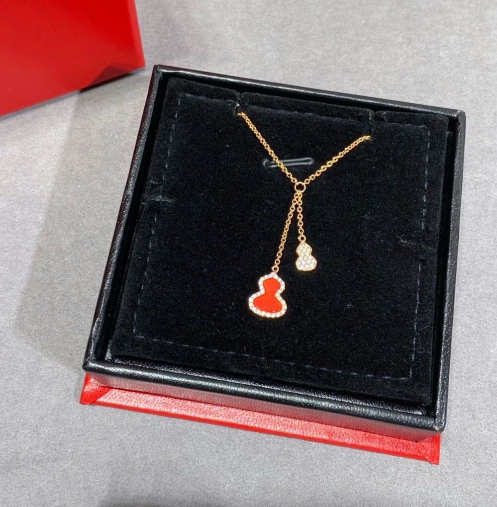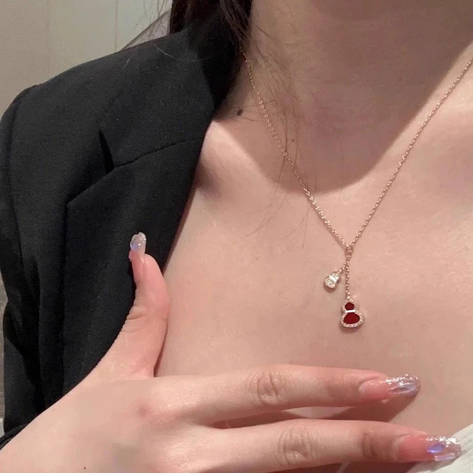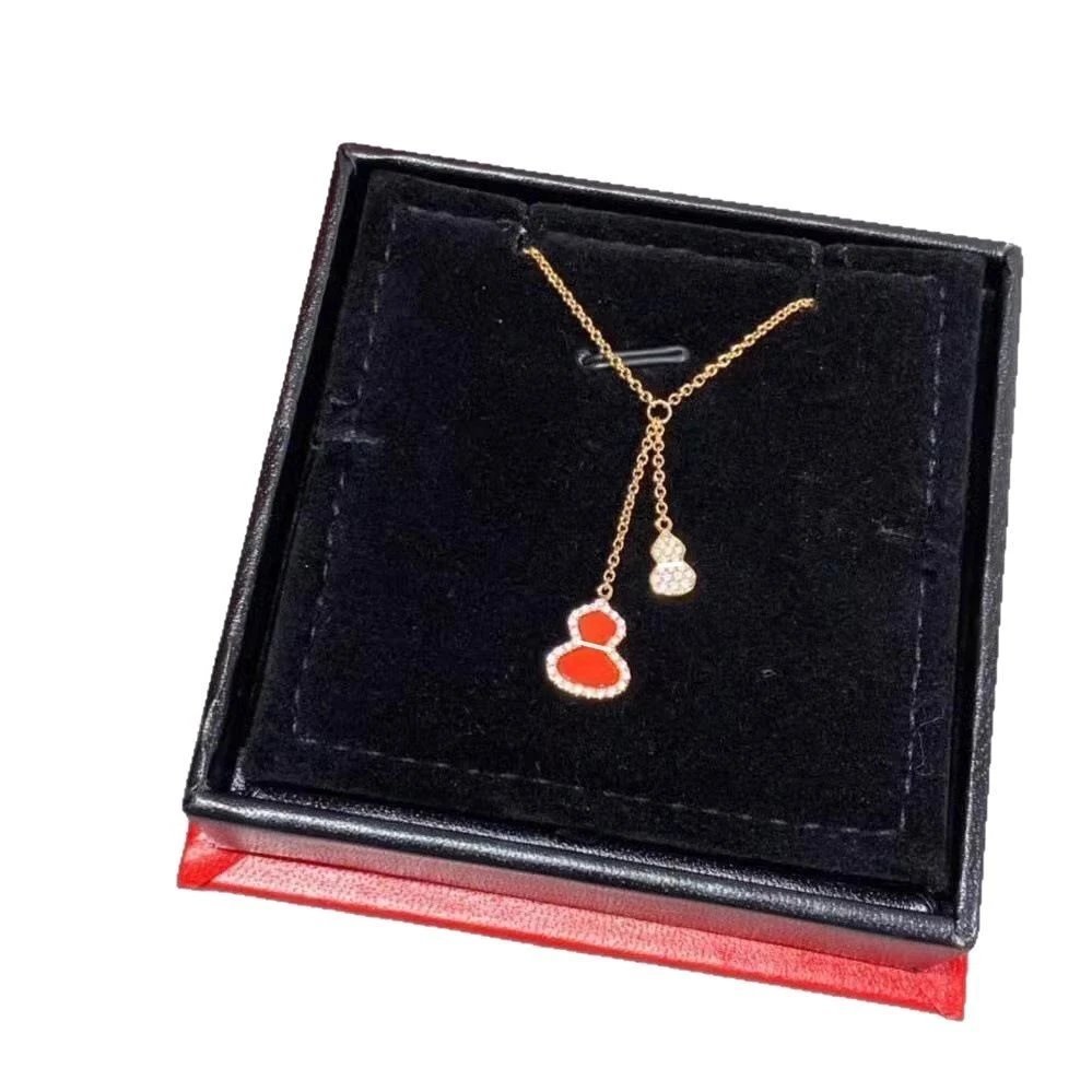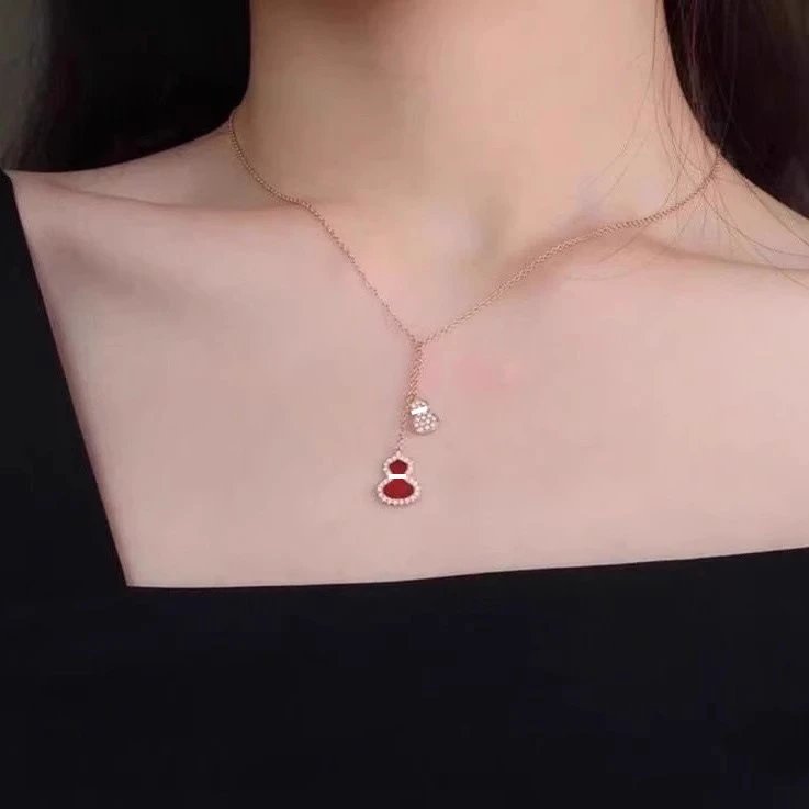 麒麟双葫芦项链女镀18k玫瑰金招财福禄红玛瑙白贝母绿玛瑙锁骨链