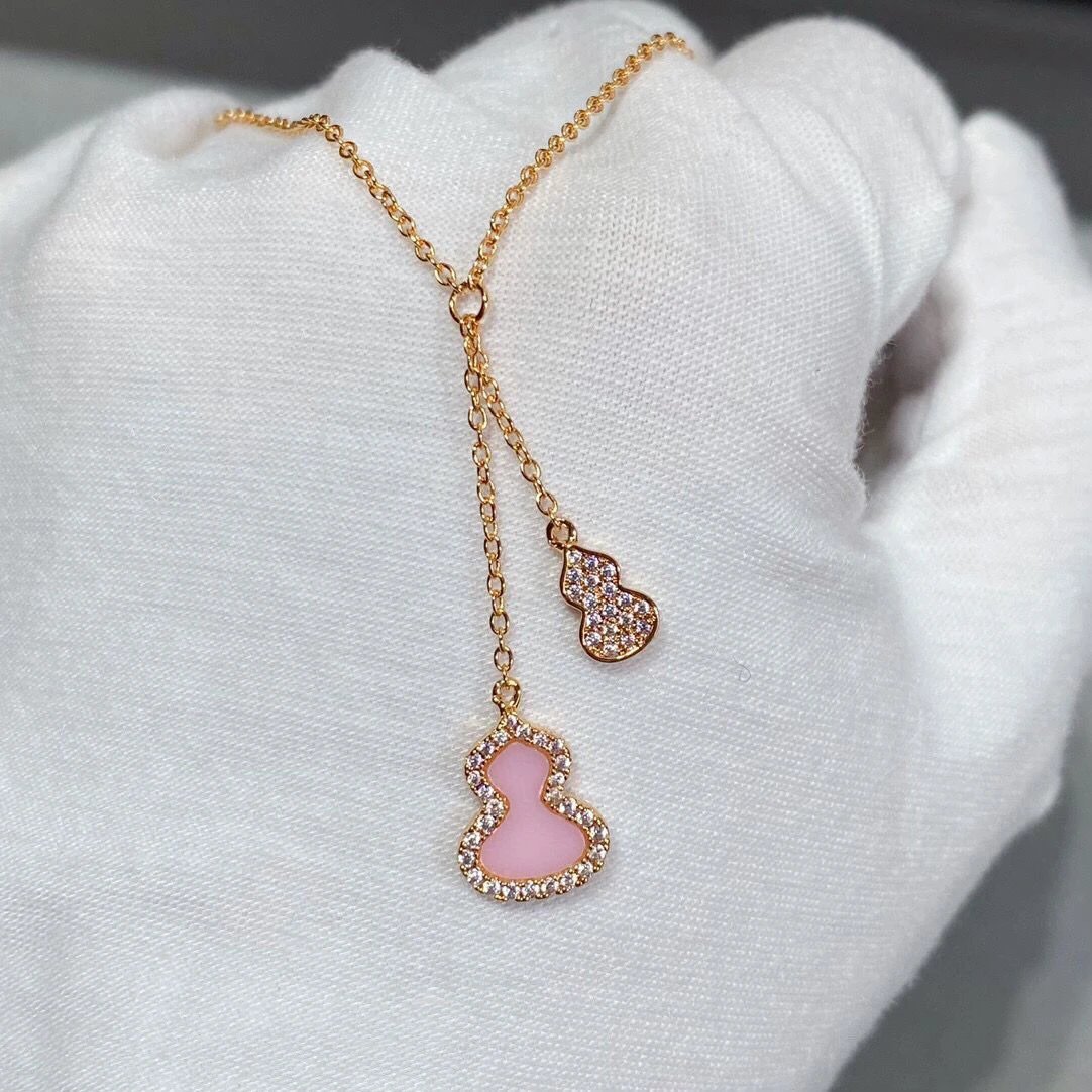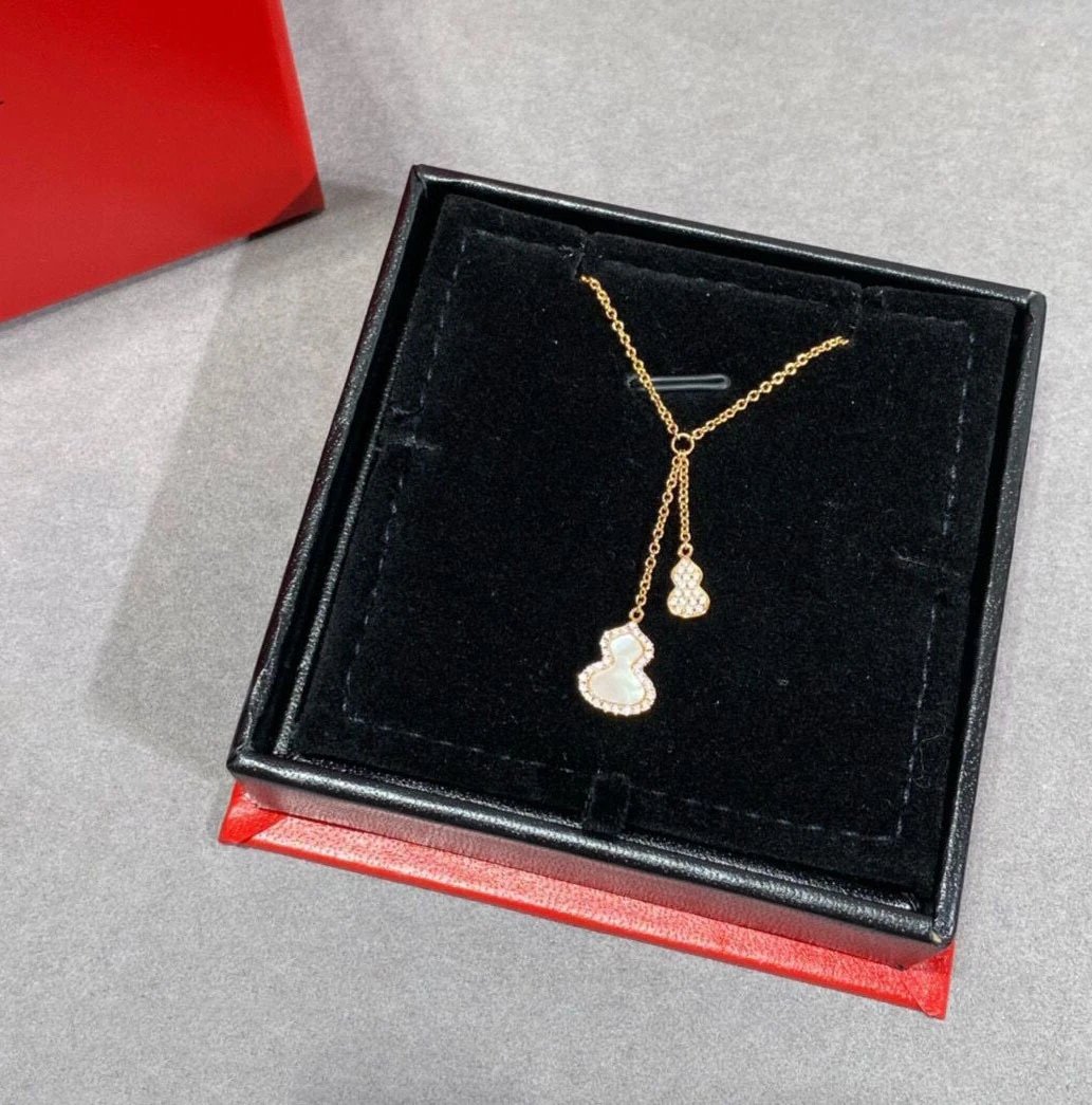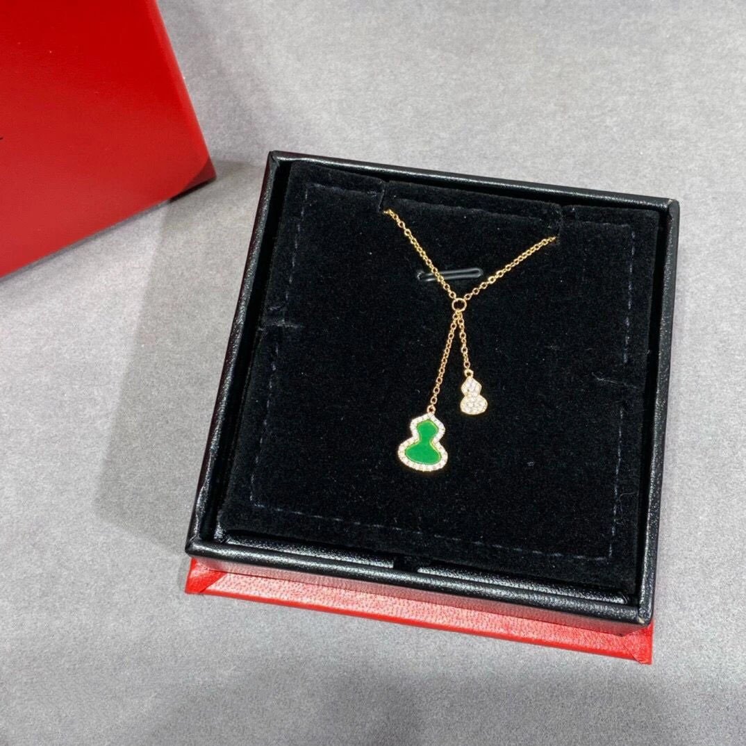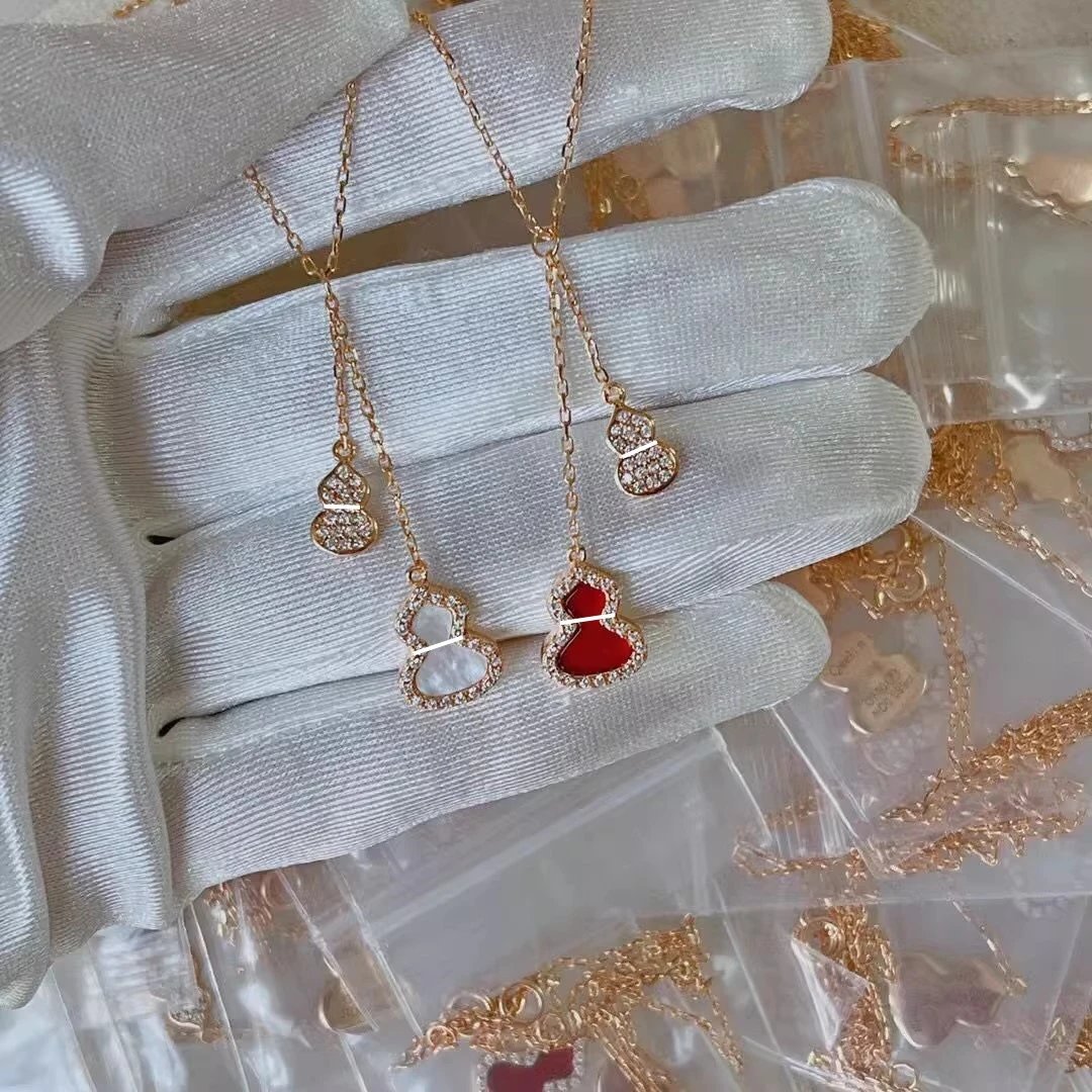麒麟双葫芦项链女镀18k玫瑰金招财福禄红玛瑙白贝母绿玛瑙锁骨链