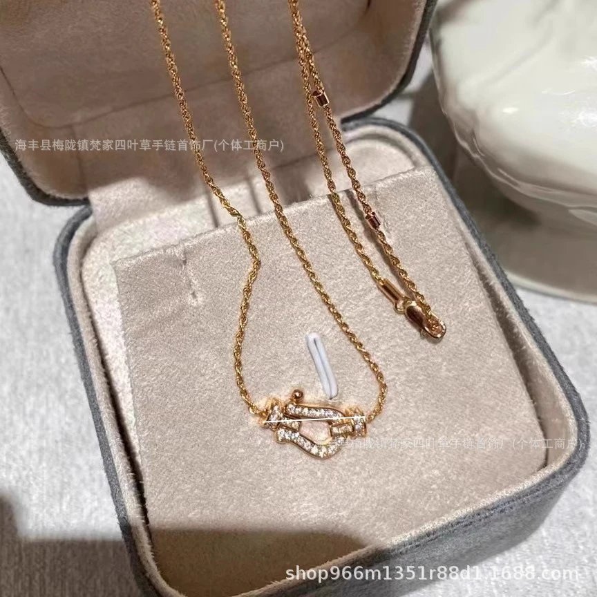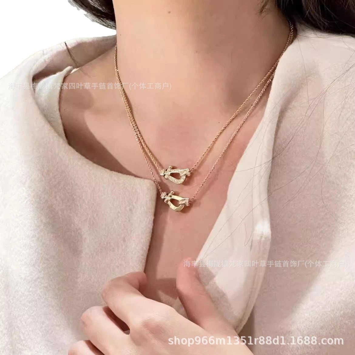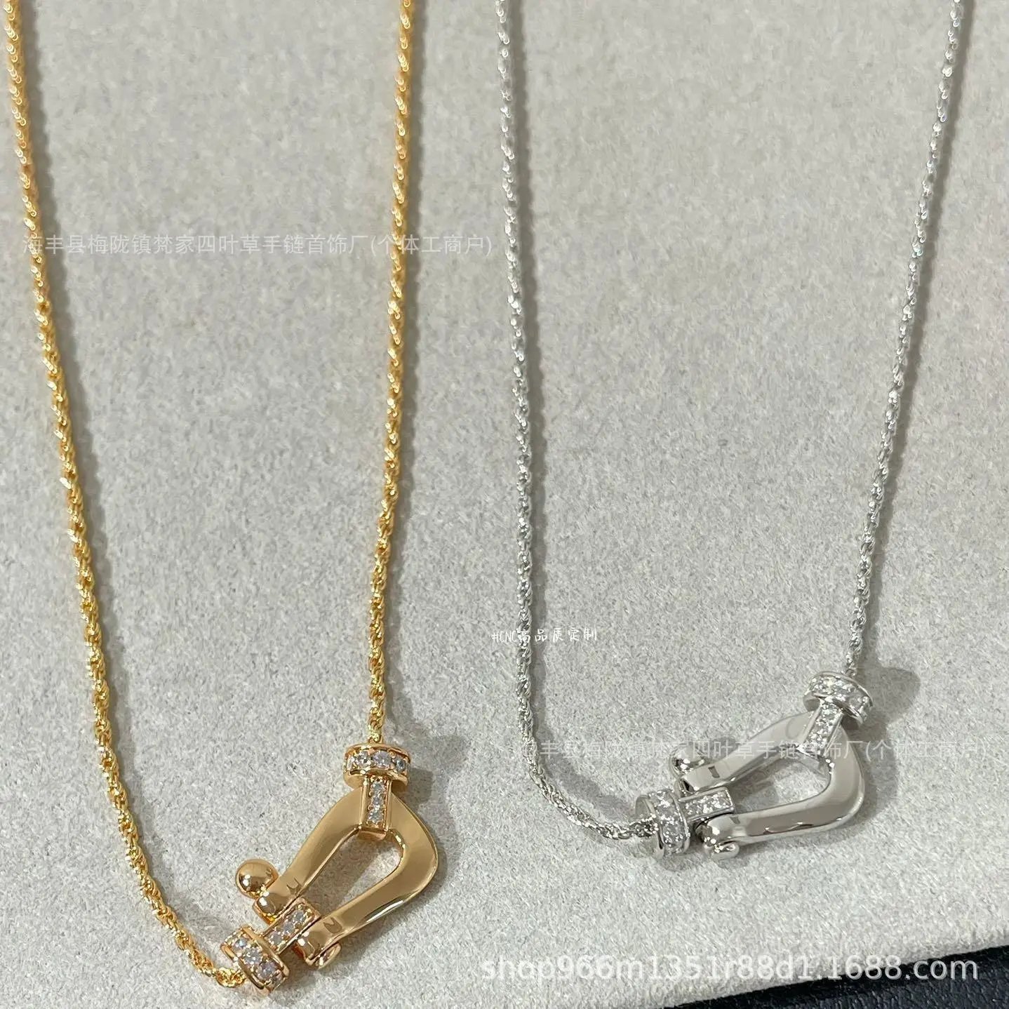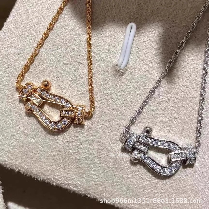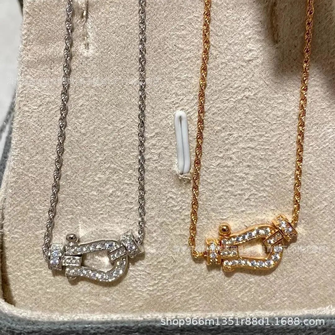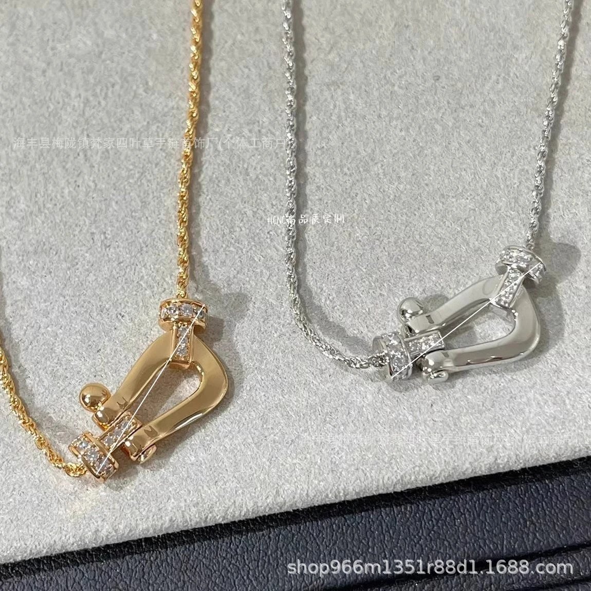 费家镀18k玫瑰金满钻马蹄扣项链轻奢高级时尚U型精工麻花锁骨链女