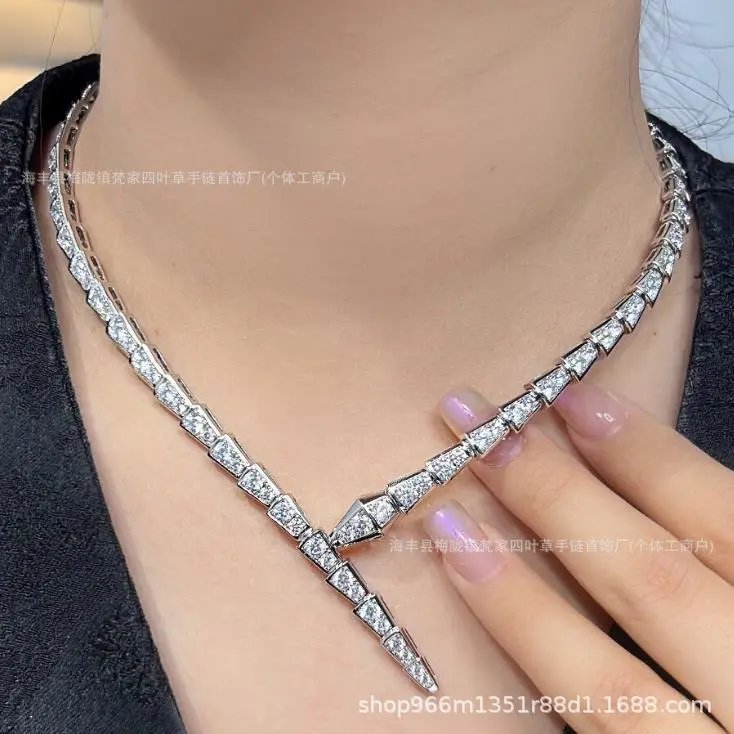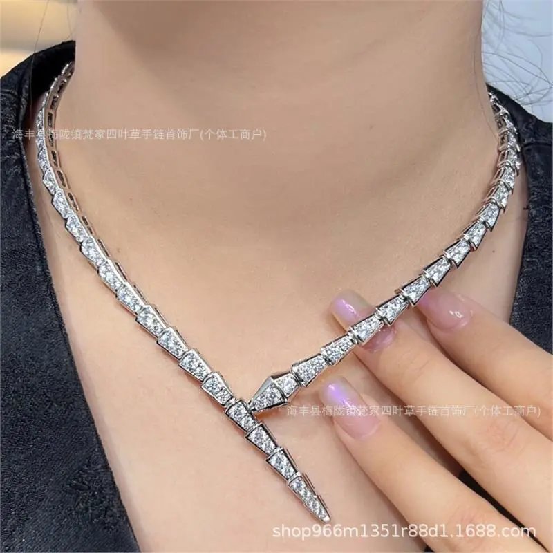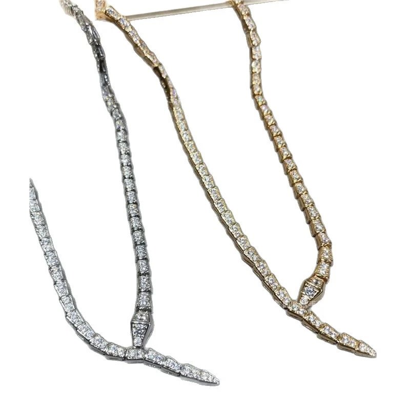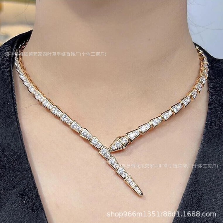 宝家满钻蛇骨项链女镀18k金颈链项圈名媛配饰ins蛇形头锁骨链