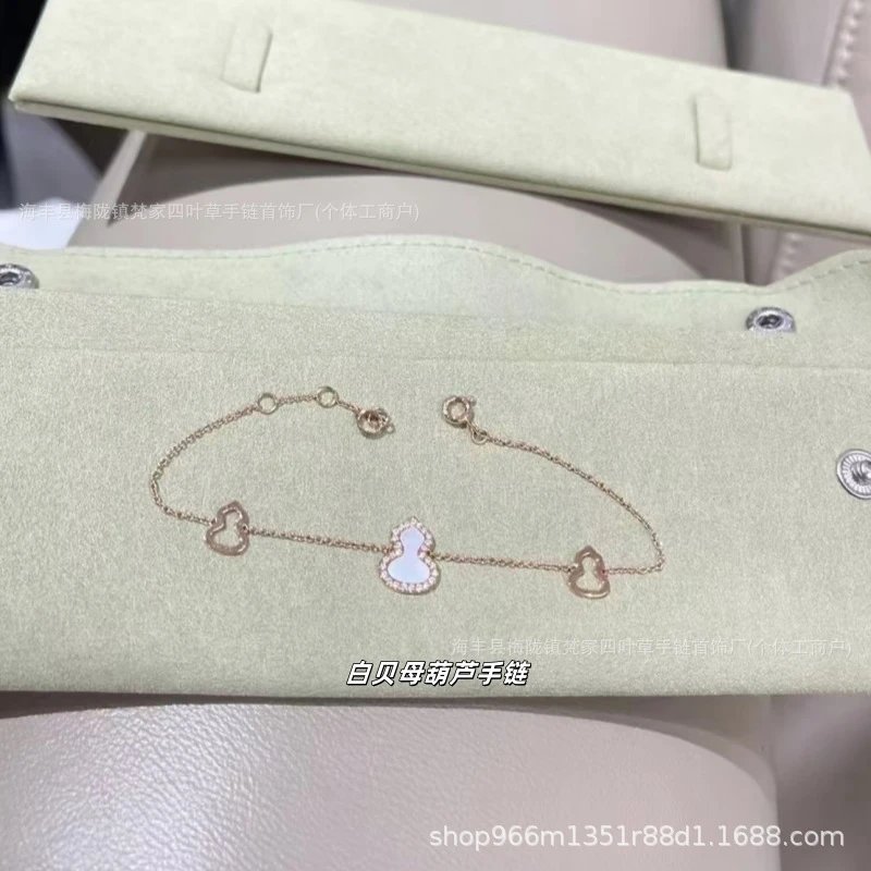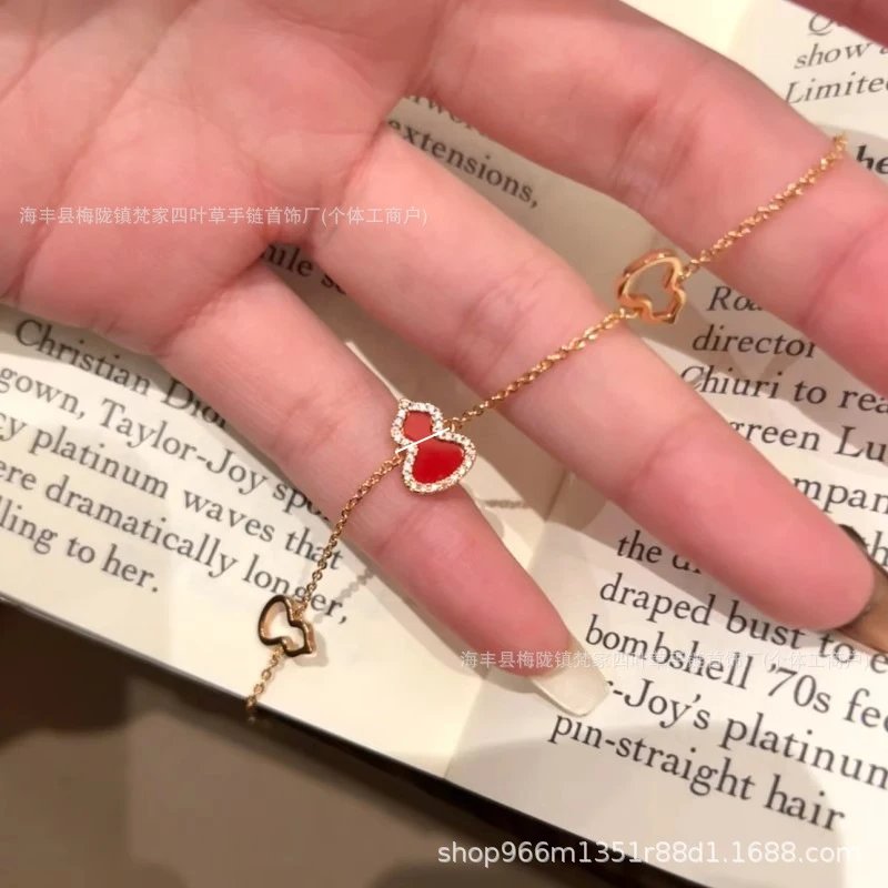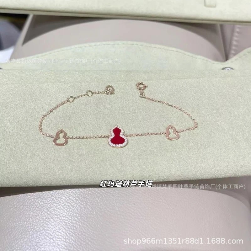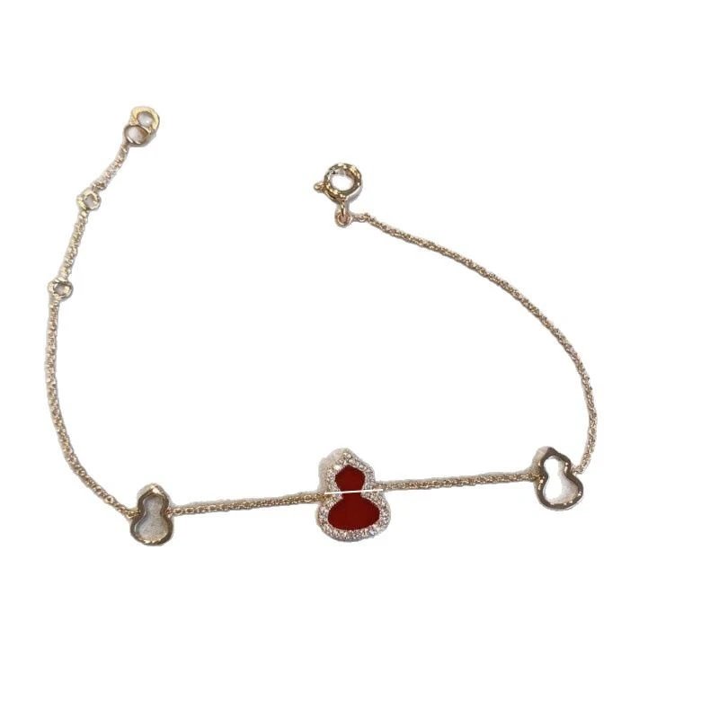 麒麟新款红玛瑙葫芦手链18k玫瑰金女白贝母镶钻福禄本命年手环ins