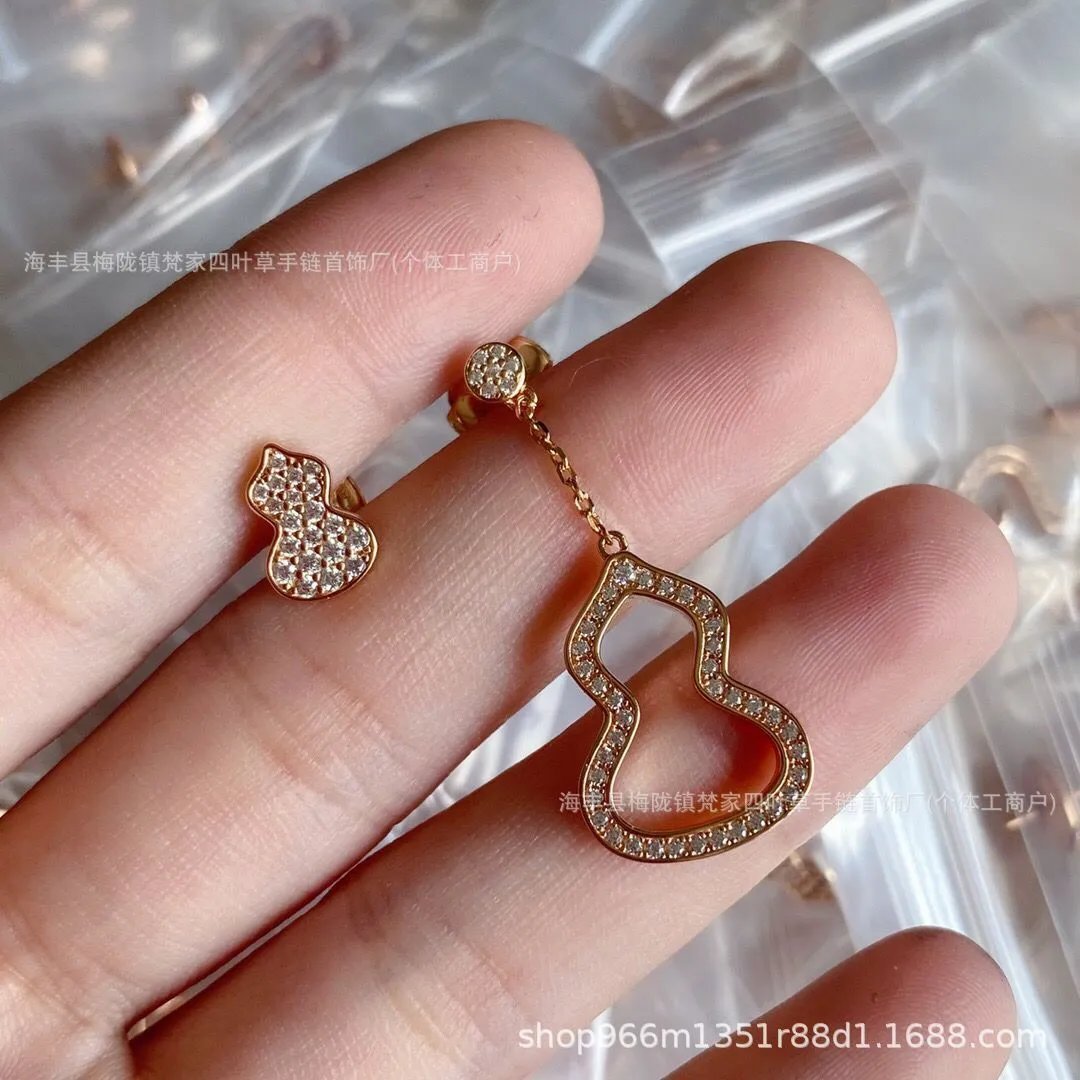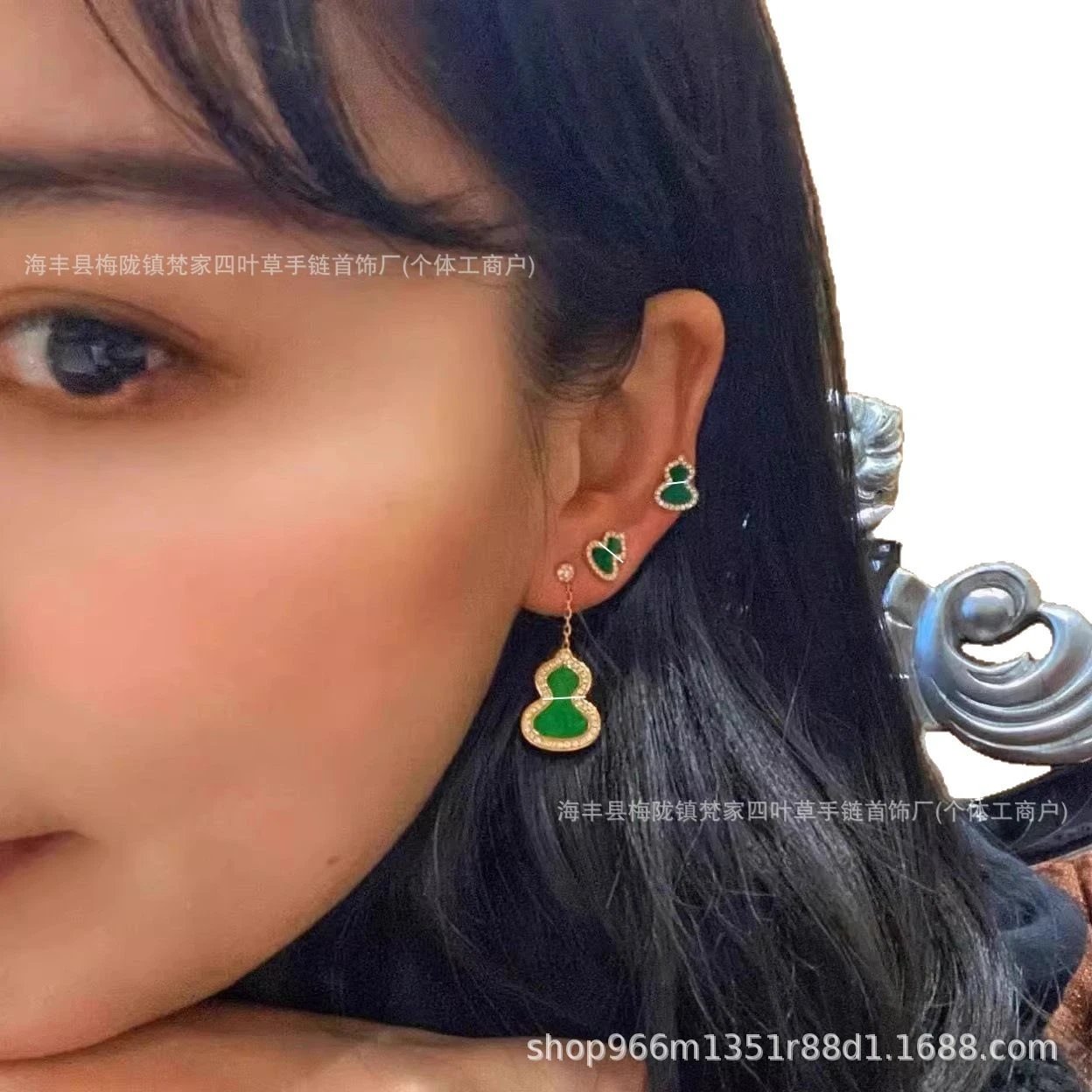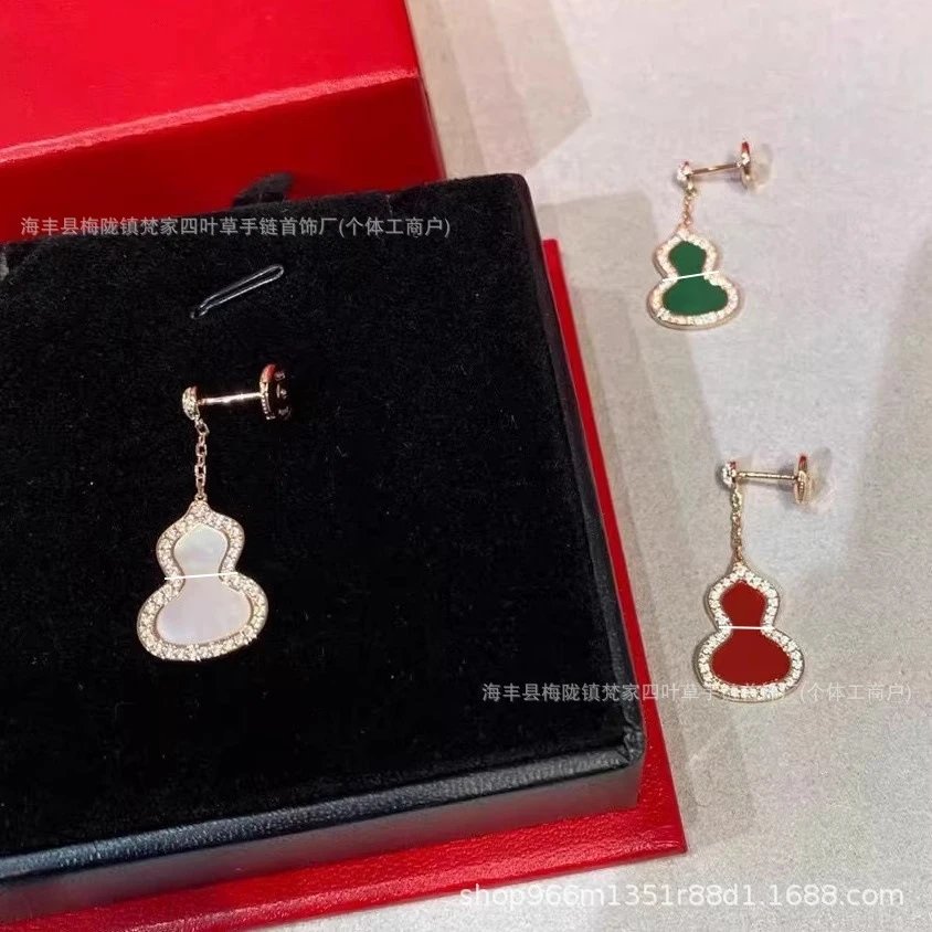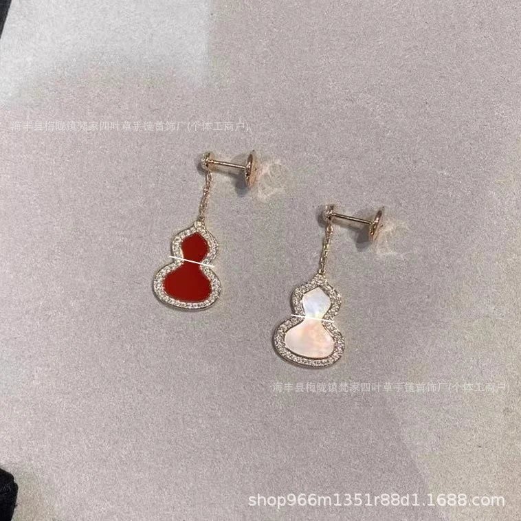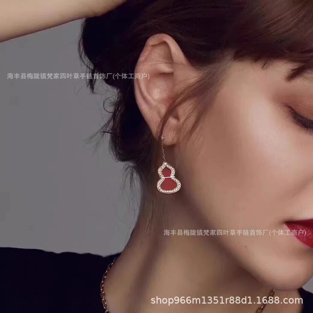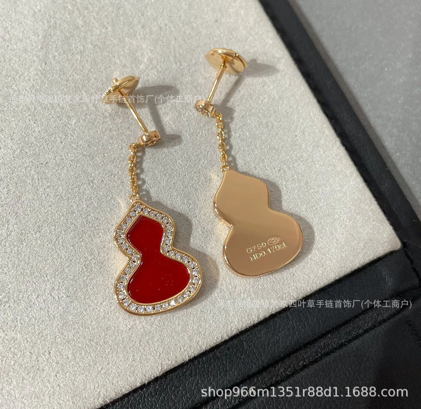 麒麟葫芦耳钉镀18k玫瑰金耳环长款耳坠红玛瑙耳饰中号轻奢ins